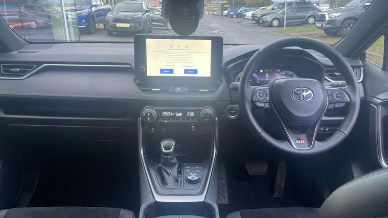 12.3" Digital Combimeter, 360 degree panoramic view monitor, Analog tachometer, Android Auto, Blind spot monitoring with rear cross traffic alert with brake assist, Bluetooth system, Cyclist Detection, Digital speedometer, Drive mode selector, Driver attention alert system, eCall emergency call system, ECO-driving indicator, Electric power steering, EV audible alert, Full range intelligent adaptive cruise control, Head up Display, Hybrid system indicator, Intelligent front and rear parking sensors and intelligent clearance sonar with automatic braking, Lane departure alert with steering control, Lane trace assist, Lights on warning, Memory on adjustable speed limiter, MirrorLink, My T Connected services, Night Time Pedestrian Detection, Power boot opening and closing, Remote boot door release in cabin, Remote boot door release in key, Road sign assist - RSA, Smartphone hazard lights notification, Tailgate, Toyota safety sense 2.5, Toyota smart connect navigation, Traffic sign recognition, Trip computer, Voice control system, Wireless Mobile Phone Charger, 6.6 kw fast charger, 7.5m cable with home charging plug, AWD - i, Vehicle Stability Control (VSC), 10.5" Toyota smart connect multimedia with wireless smartphone integration incl apple car play, 6 speakers, Auxiliary socket for external MP3 player, Digital audio broadcast (DAB)+, Gloss black surround on multimedia display, Multimedia Road Events, Rear USB connection, Toyota touch media system, USB in front armrest, Adaptive automatic high beam, Anti-jam protection on power windows, Auto dimming interior rear view mirror, Auto up and down function on power windows, Automatic headlights, Automatic wipers, Automatically retractable door mirrors, Black painted upper front grille, Black roof rails, Body colour door handles, Body colour rear roof spoiler, Body coloured door mirrors, Body coloured Shark-fin antenna, Door mirror puddle lights, Dual exhaust pipes, Electric adjustable door mirrors, Electric heated door mirrors, Emergency brake-light signal (EBS), Follow me home headlights, Front wipers with variable intermittent facility, Glass black protection moulding on side doors, GR sport badge on upper front grille, GR SPORT Badging on tailgate, GR Sport black front and rear bumper, GR Sport LED front fog lights, GR sport upper front grille, Gunmetal front and rear under-run, LED daytime running lights, LED dual beam projector headlights, LED front light guide, LED High mounted stop lamp, LED Indicators, LED rear brake lights, LED rear combination lights, PHEV badge in rear, Power front windows, Power rear windows, Privacy glass, Rear screen wiper - intermittent, Rear side wing doors, Rear windscreen defogger, Smartphone remote power window operation, Trailer sway control, Turning signal integrated indicators in door mirrors, 1.5L front and rear bottle holder, 12 volt front socket, 12V power outlet - Boot, 220v power socket in boot, 2x Rear coat hooks, 3 rear headrests, 3 seat bench in 2nd row, 60/40 split fold rear seat back, Adjustable speed limiter switch on steering wheel, Array microphone, Black roof lining, Clean air filter, Driver and front passenger personal light, Driver and front passenger Whiplash Injury Lessening seats, Driver and passenger seatback pockets, Driver and passenger sunvisors with illuminated vanity mirrors, Driver seat memory function, Dual sided deck board in boot, Dual zone automatic air conditioning, Energy saving heat pump, Folding rear centre armrest, Front and rear cup holders, Front centre armrest, Front headrests, Front leather armrest, Front/rear roof mounted assist grips, GR sport floor mats, Heated driver and front passenger seats, Heated rear seats, Heated steering wheel, Illuminated entry system, Isofix child seat preparation, Leather gear shift with chrome surround, LED boot light, LED centre room light, Lockable glovebox, Luggage area tonneau cover, Manual telescopic and tilt 3-spoke leather steering wheel with Chrome insert, Multimedia switches on steering wheel, Paddle shifter, Pollen filter, Power height-adjustable sliding and reclining for front passenger seat, Power height-adjustable sliding reclining and lumbar support for driver seat, Rear console box, Rear door armrests, Rear passenger air vents, Rear view display in display audio screen with dynamic guide lines, Reclining rear seats, Remote air conditioning, Retractable tonneau cover, Satin chrome interior door handles, Single front passenger seat, Suede/synthetic leather upholstery with sport seats, Sunglasses holder, Telephone and voice recognition switches on steering wheel, White ambient lighting in footwell, White ambient lighting on front cup holders, White ambient lighting on open tray, 3x3 point rear seatbelts, ABS/EBD, Acoustic vehicle alerting system, Adjustable front driver and passenger seat belt extender, Brake hold function, Child proof door locks, Collision mitigation braking system, Driver/Front Passenger airbags, Driver/front passenger side airbags, Drivers knee airbag, Electronic parking brake, Electronic Stability Programme (ESP), Front and rear curtain airbags, Front and rear seatbelt reminder, Front passenger airbag detector, Hill start assist, Passenger airbag cut-off device, Pedestrian detection, Pre collision system, Seatbelt pretensioners with load limiters, Supplemental restraint system (SRS) airbags, Traction control, Tyre pressure warning, Glass-breaking alarm sensors, Immobiliser, Intrusion alarm, Light - on and Key in reminder, Motion sensor alarm, Power door locks, Remote central locking, Smart entry and GR push button start, Smartphone remote door lock, Speed sensitive auto door locking, Tilt detection sensors, Black centre air vent surround, Gloss black centre console, Open tray on passenger dashboard, Soft-touch black upper dashboard with silver insert, Soft-touch texture on lower dashboard, 19" 5-double spoke GR Sport black alloy wheels, Tyre repair kit,