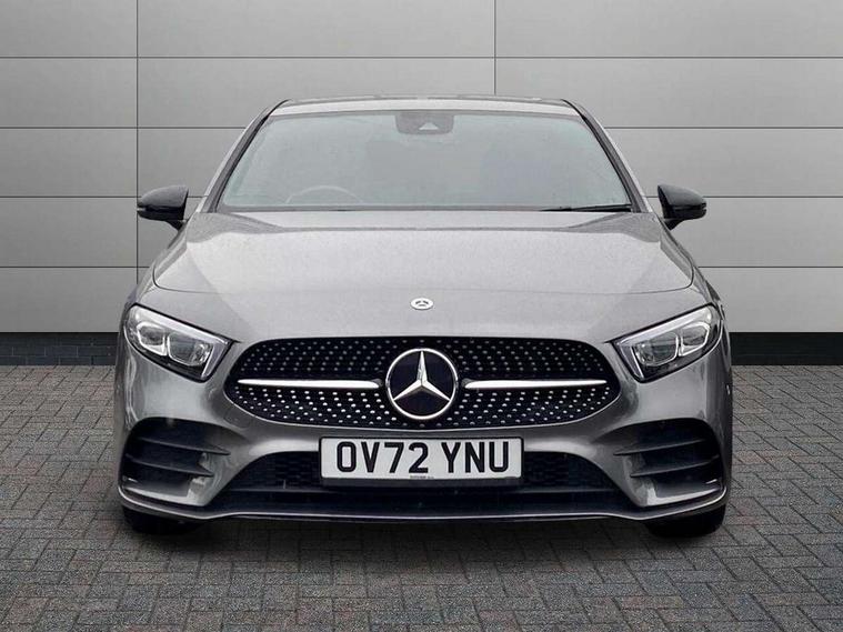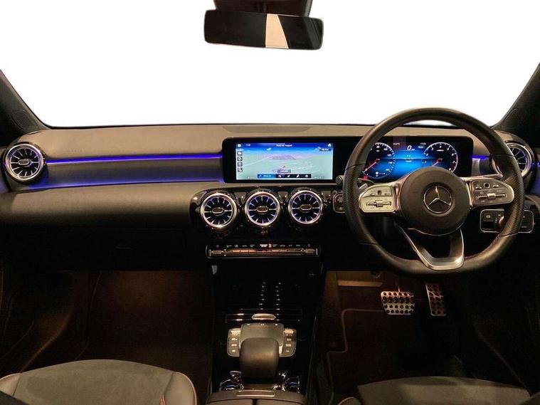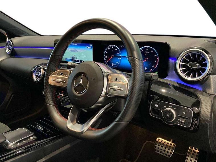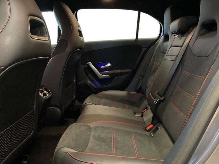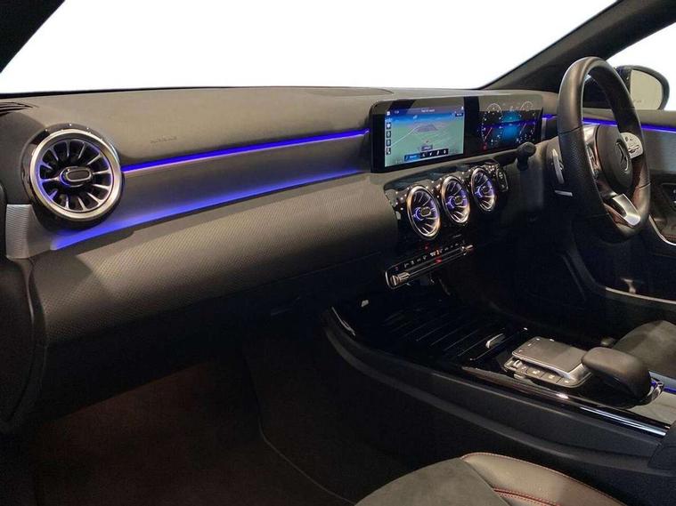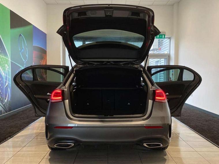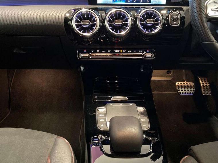 10.25" Digital instrument cluster display screen, 10.25" media display, 180 degree rear view camera with parking guidelines, Active parking assist with visual and audible warning of detected obstacles, Attention assist, Brake pad wear indicator warning light, Car wash mode, Cruise control + speed limiter, Direct steering, Dual bluetooth interfaces, DYNAMIC SELECT with a choice of driving modes (ECO, Comfort, Sport and Individual), ECO start/stop function, Fluid level warning indicator for fuel, oil, coolant and washer fluid, Hard-disk navigation, Hey Mercedes Voice activation, Lamp failure indicator, Lane keeping system, Mercedes me connect including emergency call system, accident recovery, breakdown and maintenance management, Mercedes me remote services, Outside temperature gauge, Owners manual in English, Pre-installation for private car sharing, Preinstallation for Mercedes Benz link, Service indicator (ASSYST), Smartphone integration with Apple CarPlay and Android auto, Speed limit assist, Speed sensitive power steering, Trip computer, Ultrasonic sensors positioned in the front and rear bumpers, Lowered comfort suspension, Rear axle torsion beam, 2 USB ports (type C) in rear stowage compartment and one in front of center console, 6 speakers, DAB Digital radio, MBUX multimedia system with DAB digital radio and touchpad including satellite navigation, Mercedes-Benz sound system - 100W, 4 Electric Front and Rear windows, Adaptive brake lights, AMG bodystyling - Front apron with splitter in chrome, rear apron with chrome trim and chrome visible trim elements in tailpipe, Automatic headlights, Black weather strip, Body colour bumpers, Body colour door handles with chrome inserts, Body colour side skirt, Electric adjustable and heated door mirrors with integrated LED side indicators, Exclusive diamond radiator grille, Exhaust system - Twin visible tailpipes in polished stainless steel, Headlamp assist automatic headlamp activation, Heated glass rear windscreen + timer control, LED High level third brake light, LED high performance headlamps with integrated LED daytime running lights, LED tail lamp, Privacy glass, Radio aerial, Rain sensing windscreen wipers with two sensitivity settings, Rear fog lights, Rear side wing doors, Rear wiper, 3 seat bench in 2nd row, 3 Spoke flat bottom leather multi function steering wheel with perforated leather in grip area, 40:20:40 split folding rear seats, Artico man-made leather/Microfibre Dinamica upholstery with red contrast stitching, Auto Mercedes-Benz child seat recognition sensor, Black air vents with surround in silver chrome, Black roof lining, Brushed stainless steel sports pedals with rubber studs, Controller on centre console with chrome surround, Floor mats with AMG lettering, Front centre armrest with storage compartment, Front seat backs luggage nets, Galvanished gear shift paddles on steering wheel, Heated front seats, Height/reach adjustable steering column, Illuminated Mercedes Benz lettering front door sills with changeable cover, Interior lighting - 64 colour Ambient lighting, Interior mirror with reading lamps in black and frameless, Manual height adjustable front seats, Rear armrest with 2 cupholders, Rear head restraints, Seat occupancy sensor for front passenger seat, Single front passenger seat, Sports seats with integrated headrests, Stowage compartment in centre console with retractable cover, Sunvisors with illuminated vanity mirrors, Touchpad on center console, Twin front cupholders, Two zone thermotronic luxury automatic climate control, Light and sight pack - A Class, Mirror package - A Class, Night pack - A Class Saloon/Hatchback, Seat comfort pack - A Class, 3 rear 3 point seatbelts, ABS with Brake Assist, Active bonnet, Active brake assist includes forward collision warning system with autonomous braking, Adaptive brake assist with hold function and hill start assist, Black seatbelts, Childproof locks manually operated for rear doors and electrically operated for rear power windows, Crash responsive emergency lighting, Driver and passenger head and side airbags, Drivers knee airbag, Dual stage driver/passenger airbags, Electronic parking brake, ESP curve dynamic assist, ESP with ASR, Front and rear seatbelt reminder, Front brake callipers with Mercedes Benz lettering, ISOFIX and top tether child seat fixing points in two outer rear seats, Tyre pressure monitoring system, Warning triangle and first aid kit, Window airbags, Alarm system/interior protection/immobiliser, Keyless entry lock/unlock, Keyless Go, Remote central locking and crash sensor with emergency opening function, Urban guard vehicle protection system with immobiliser and interior protection, Matrix look light longitudinal grain aluminium trim element, 18" AMG 5 twin spoke light alloy wheels aerodynamically optimised painted in black with highsheen finish, Summer tyres, Tirefit sealant kit,