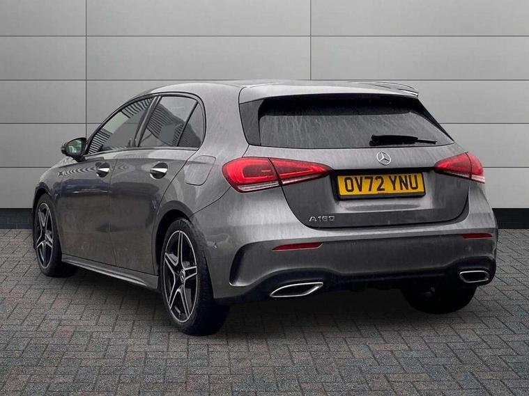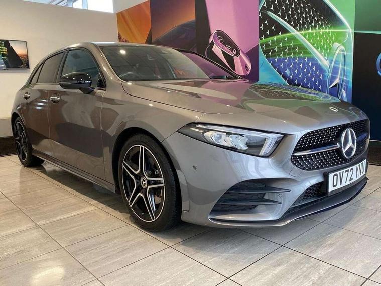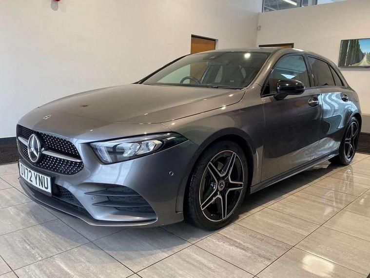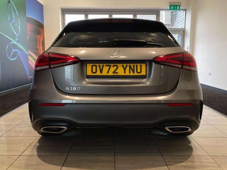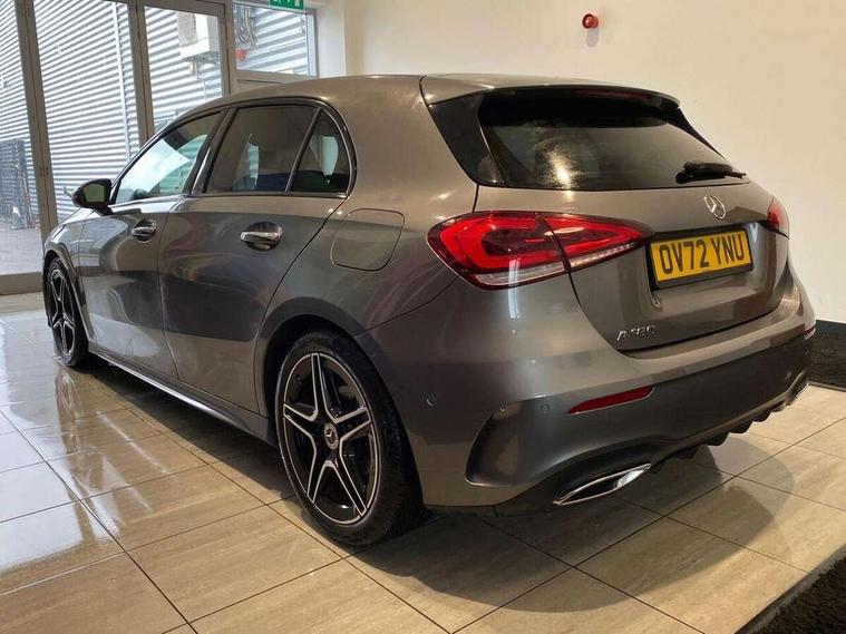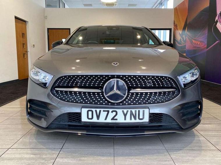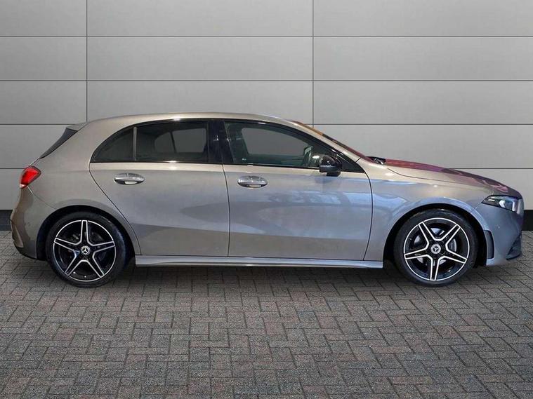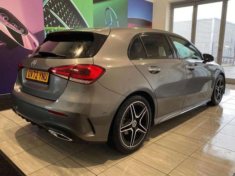 10.25" Digital instrument cluster display screen, 10.25" media display, 180 degree rear view camera with parking guidelines, Active parking assist with visual and audible warning of detected obstacles, Attention assist, Brake pad wear indicator warning light, Car wash mode, Cruise control + speed limiter, Direct steering, Dual bluetooth interfaces, DYNAMIC SELECT with a choice of driving modes (ECO, Comfort, Sport and Individual), ECO start/stop function, Fluid level warning indicator for fuel, oil, coolant and washer fluid, Hard-disk navigation, Hey Mercedes Voice activation, Lamp failure indicator, Lane keeping system, Mercedes me connect including emergency call system, accident recovery, breakdown and maintenance management, Mercedes me remote services, Outside temperature gauge, Owners manual in English, Pre-installation for private car sharing, Preinstallation for Mercedes Benz link, Service indicator (ASSYST), Smartphone integration with Apple CarPlay and Android auto, Speed limit assist, Speed sensitive power steering, Trip computer, Ultrasonic sensors positioned in the front and rear bumpers, Lowered comfort suspension, Rear axle torsion beam, 2 USB ports (type C) in rear stowage compartment and one in front of center console, 6 speakers, DAB Digital radio, MBUX multimedia system with DAB digital radio and touchpad including satellite navigation, Mercedes-Benz sound system - 100W, 4 Electric Front and Rear windows, Adaptive brake lights, AMG bodystyling - Front apron with splitter in chrome, rear apron with chrome trim and chrome visible trim elements in tailpipe, Automatic headlights, Black weather strip, Body colour bumpers, Body colour door handles with chrome inserts, Body colour side skirt, Electric adjustable and heated door mirrors with integrated LED side indicators, Exclusive diamond radiator grille, Exhaust system - Twin visible tailpipes in polished stainless steel, Headlamp assist automatic headlamp activation, Heated glass rear windscreen + timer control, LED High level third brake light, LED high performance headlamps with integrated LED daytime running lights, LED tail lamp, Privacy glass, Radio aerial, Rain sensing windscreen wipers with two sensitivity settings, Rear fog lights, Rear side wing doors, Rear wiper, 3 seat bench in 2nd row, 3 Spoke flat bottom leather multi function steering wheel with perforated leather in grip area, 40:20:40 split folding rear seats, Artico man-made leather/Microfibre Dinamica upholstery with red contrast stitching, Auto Mercedes-Benz child seat recognition sensor, Black air vents with surround in silver chrome, Black roof lining, Brushed stainless steel sports pedals with rubber studs, Controller on centre console with chrome surround, Floor mats with AMG lettering, Front centre armrest with storage compartment, Front seat backs luggage nets, Galvanished gear shift paddles on steering wheel, Heated front seats, Height/reach adjustable steering column, Illuminated Mercedes Benz lettering front door sills with changeable cover, Interior lighting - 64 colour Ambient lighting, Interior mirror with reading lamps in black and frameless, Manual height adjustable front seats, Rear armrest with 2 cupholders, Rear head restraints, Seat occupancy sensor for front passenger seat, Single front passenger seat, Sports seats with integrated headrests, Stowage compartment in centre console with retractable cover, Sunvisors with illuminated vanity mirrors, Touchpad on center console, Twin front cupholders, Two zone thermotronic luxury automatic climate control, Light and sight pack - A Class, Mirror package - A Class, Night pack - A Class Saloon/Hatchback, Seat comfort pack - A Class, 3 rear 3 point seatbelts, ABS with Brake Assist, Active bonnet, Active brake assist includes forward collision warning system with autonomous braking, Adaptive brake assist with hold function and hill start assist, Black seatbelts, Childproof locks manually operated for rear doors and electrically operated for rear power windows, Crash responsive emergency lighting, Driver and passenger head and side airbags, Drivers knee airbag, Dual stage driver/passenger airbags, Electronic parking brake, ESP curve dynamic assist, ESP with ASR, Front and rear seatbelt reminder, Front brake callipers with Mercedes Benz lettering, ISOFIX and top tether child seat fixing points in two outer rear seats, Tyre pressure monitoring system, Warning triangle and first aid kit, Window airbags, Alarm system/interior protection/immobiliser, Keyless entry lock/unlock, Keyless Go, Remote central locking and crash sensor with emergency opening function, Urban guard vehicle protection system with immobiliser and interior protection, Matrix look light longitudinal grain aluminium trim element, 18" AMG 5 twin spoke light alloy wheels aerodynamically optimised painted in black with highsheen finish, Summer tyres, Tirefit sealant kit,