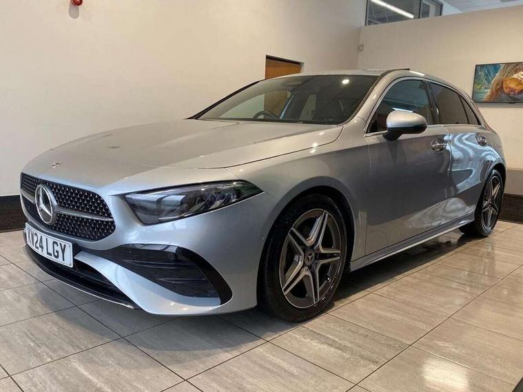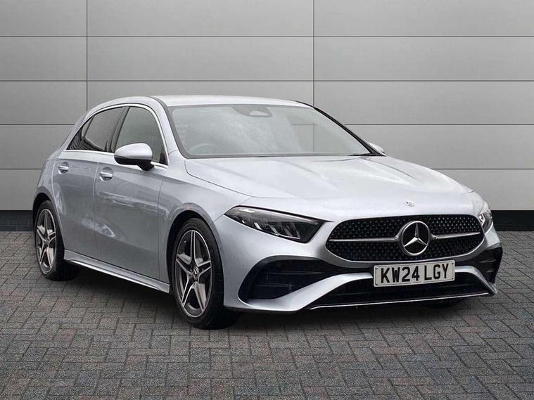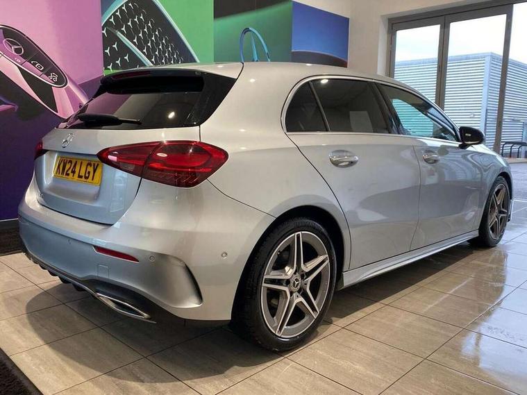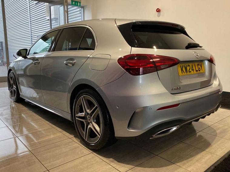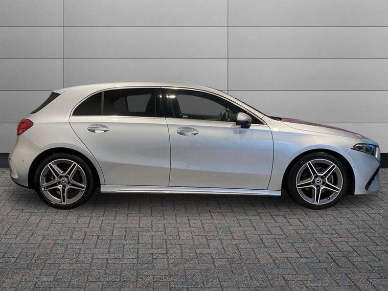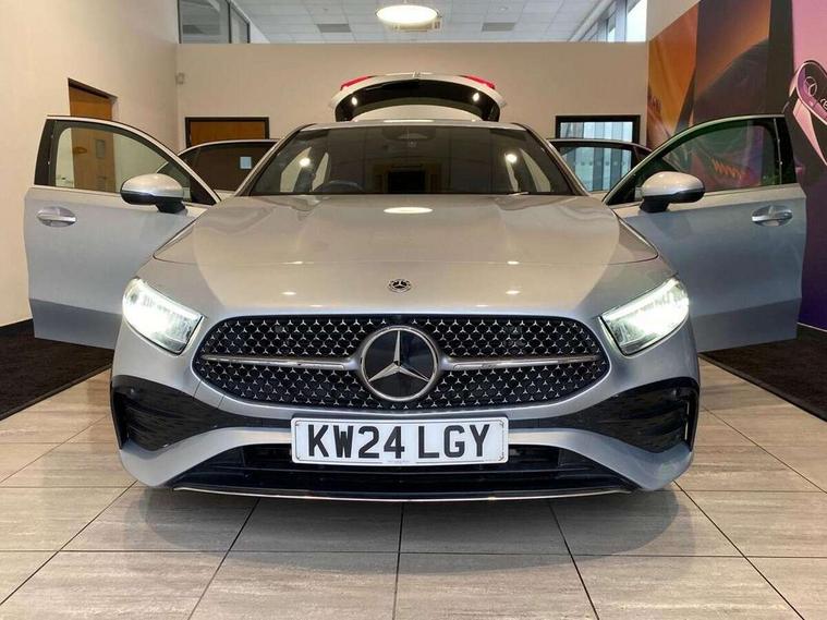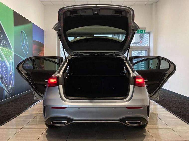 10.25 inch touchscreen central media display, 10.25" Digital instrument cluster display screen, Attention assist, Brake pad wear indicator warning light, Car wash mode, Cruise control + speed limiter, Direct steering, Direction indicators with lane change function, Dual bluetooth interfaces, DYNAMIC SELECT with a choice of driving modes (ECO, Comfort, Sport and Individual), Easy pack tailgate hands-free access, ECO start/stop function, Engine start/stop button, Fluid level warning indicator for fuel, oil, coolant and washer fluid, Fluorescent jacket for driver, Hard-disk navigation, Hey Mercedes Voice activation, Lamp failure indicator, Lane keeping system, Mercedes me connect including emergency call system, accident recovery, breakdown and maintenance management, Mercedes me remote services, Outside temperature gauge, Owners manual in English, Pre-installation of private car share, Preinstallation for Mercedes Benz link, Remote boot closing, Service indicator (ASSYST), Smartphone integration with Apple CarPlay and Android auto, Speed limit assist, Speed sensitive power steering, Tailgate, Trip computer in multifunction display with current consumption indicator, Wireless charging, Lowered comfort suspension, DAB Digital radio, MBUX multimedia system, Mercedes Benz sound system (100 W) with 6 speakers, 4 Electric Front and Rear windows, Adaptive brake lights, AMG body styling - AMG front apron with front splitter and AMG rear apron and visible exhaust tailpipe trim elements, Body colour bumpers, Body colour door handles with chrome inserts, Body colour side skirt, Body coloured door mirrors, Chrome beltline strips, Diamond radiator grille with pins in fine star pattern, Electric adjustable and heated door mirrors with integrated LED side indicators, Exhaust system with 2 visible tailpipe trim elements and rear apron, Headlamp assist automatic headlamp activation, Heat insulating dark tinted rear and rear side windows, Heated glass rear windscreen + timer control, LED High level third brake light, LED High Performance headlamps including integral LED daytime running lamps and adaptive highbeam assist, LED tail lamp, Privacy glass, Radio aerial, Rain sensing windscreen wipers with two sensitivity settings, Rear fog lights, Rear side wing doors, Rear windscreen wiper, Window line trim strip in chrome, 3 seat bench in 2nd row, 3 Spoke flat bottom leather multi function steering wheel with perforated leather in grip area, 4 way lumbar support, 40:20:40 split folding rear seats, Air conditioning - One zone THERMATIC automatic climate control with automatically controlled air distribution, AMG floor mats, Automatic child seat recognition sensor, Black air vents with surround in silver chrome, Black roof lining, Brushed stainless steel sports pedals with rubber studs, Front centre armrest with stowage, Front door sills with Mercedes Benz lettering, Front seat backs luggage nets, Galvanished gear shift paddles on steering wheel, Heated front seats, Height/reach adjustable steering column, Interior lighting - 64 colour Ambient lighting, Interior mirror with reading lamps in black and frameless, Rear armrest with 2 cupholders, Seat occupancy sensor for front passenger seat, Single front passenger seat, Sports seats with integrated headrests, Stowage compartment in centre console with retractable cover, Sunvisors with illuminated vanity mirrors, Twin front cupholders, Light and sight pack - A Class, Mirror package - A Class, Parking pack - A Class, Seat comfort pack - A Class, USB pack plus - A Class, 3 rear 3 point seatbelts, ABS with Brake Assist, Active bonnet, Active brake assist includes forward collision warning system with autonomous braking, Adaptive brake assist with hold function and hill start assist, Black seatbelts, Bonnet with power domes, Childproof locks manually operated for rear doors and electrically operated for rear power windows, Crash responsive emergency lighting, Driver and passenger head and side airbags, Drivers knee airbag, Dual stage driver/passenger airbags, Electronic parking brake, ESP curve dynamic assist, ESP with ASR, Front and rear seatbelt reminder, ISOFIX and top tether child seat fixing points in two outer rear seats, Tyre pressure monitoring system, Warning triangle and first aid kit, Window airbags, Alarm system/interior protection/immobiliser, Guard 360 degree vehicle protection, Keyless entry lock/unlock, Keyless Go, Remote central locking and crash sensor with emergency opening function, Light longitudinal grain aluminium trim, 18" AMG 5 twin spoke light alloy wheels, aerodynamically optimised, painted in termolite grey with high sheen finish, Summer tyres, Tirefit sealant kit,