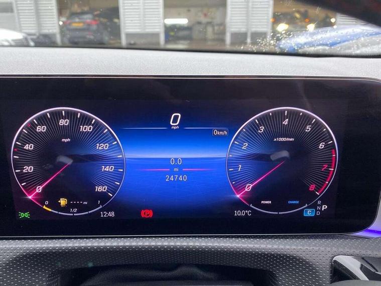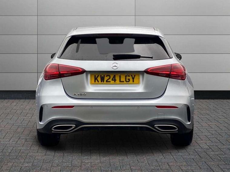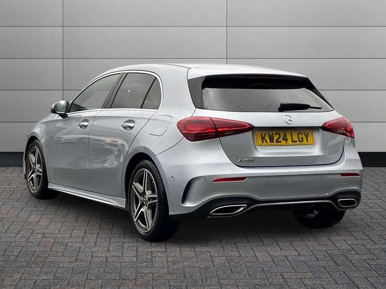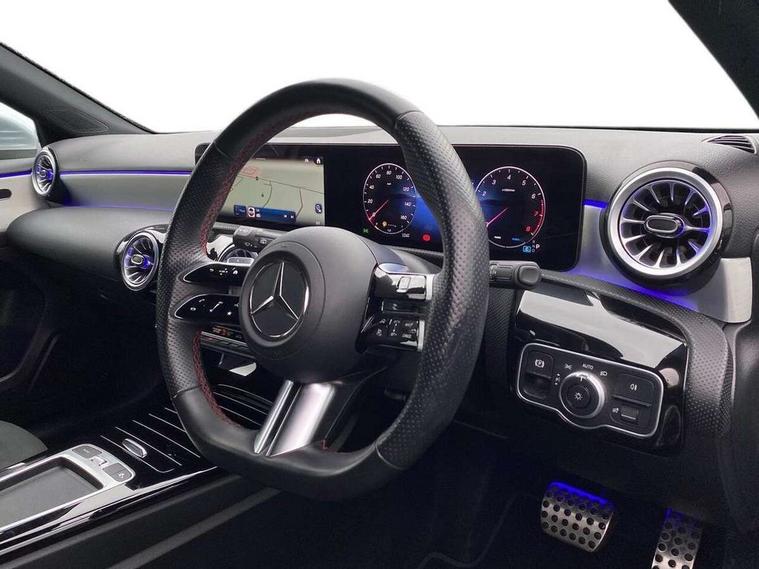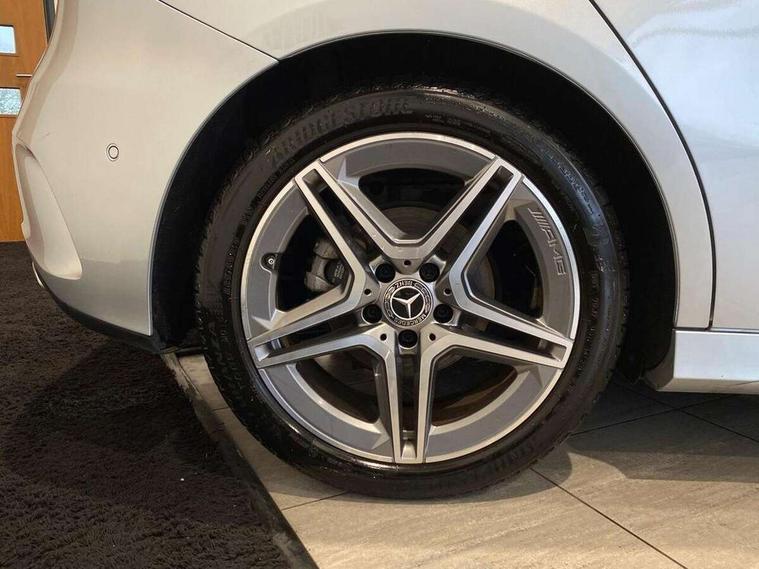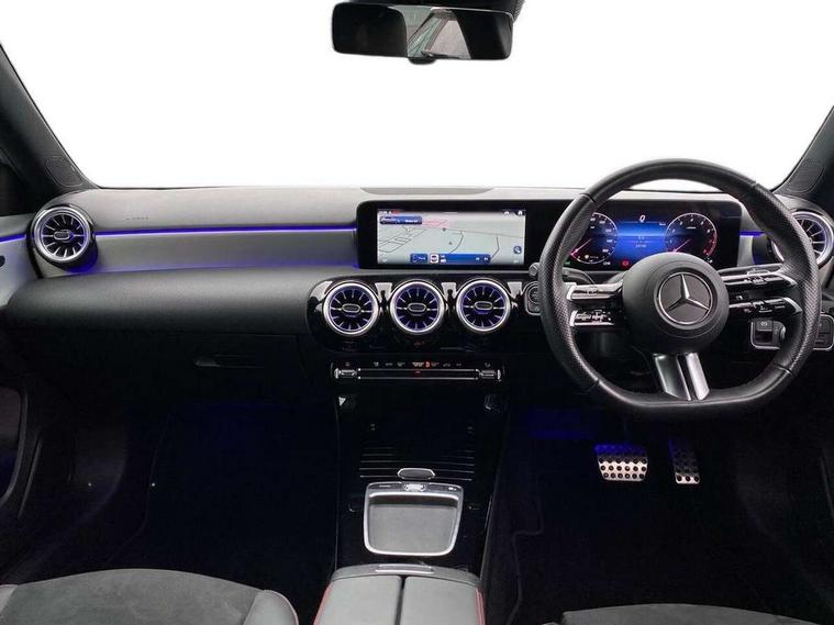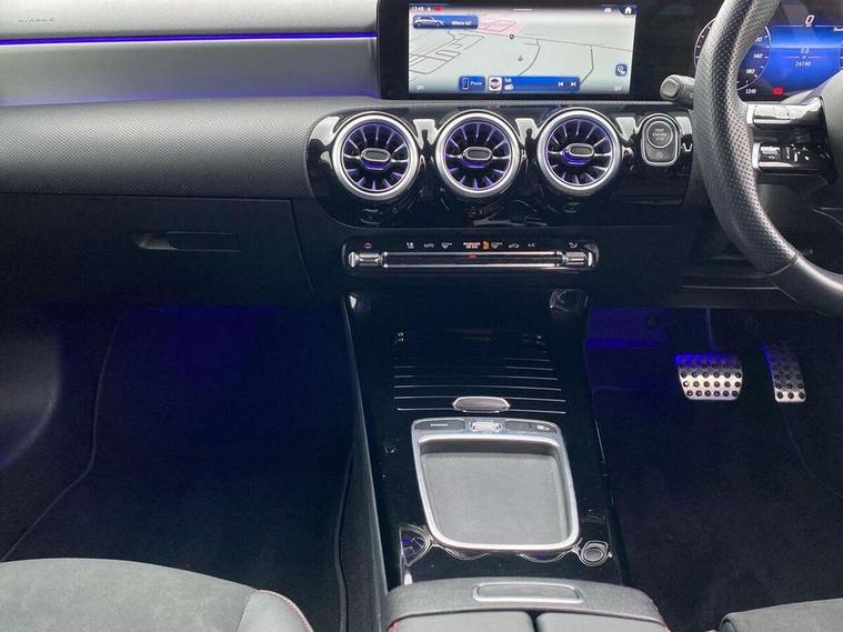 10.25 inch touchscreen central media display, 10.25" Digital instrument cluster display screen, Attention assist, Brake pad wear indicator warning light, Car wash mode, Cruise control + speed limiter, Direct steering, Direction indicators with lane change function, Dual bluetooth interfaces, DYNAMIC SELECT with a choice of driving modes (ECO, Comfort, Sport and Individual), Easy pack tailgate hands-free access, ECO start/stop function, Engine start/stop button, Fluid level warning indicator for fuel, oil, coolant and washer fluid, Fluorescent jacket for driver, Hard-disk navigation, Hey Mercedes Voice activation, Lamp failure indicator, Lane keeping system, Mercedes me connect including emergency call system, accident recovery, breakdown and maintenance management, Mercedes me remote services, Outside temperature gauge, Owners manual in English, Pre-installation of private car share, Preinstallation for Mercedes Benz link, Remote boot closing, Service indicator (ASSYST), Smartphone integration with Apple CarPlay and Android auto, Speed limit assist, Speed sensitive power steering, Tailgate, Trip computer in multifunction display with current consumption indicator, Wireless charging, Lowered comfort suspension, DAB Digital radio, MBUX multimedia system, Mercedes Benz sound system (100 W) with 6 speakers, 4 Electric Front and Rear windows, Adaptive brake lights, AMG body styling - AMG front apron with front splitter and AMG rear apron and visible exhaust tailpipe trim elements, Body colour bumpers, Body colour door handles with chrome inserts, Body colour side skirt, Body coloured door mirrors, Chrome beltline strips, Diamond radiator grille with pins in fine star pattern, Electric adjustable and heated door mirrors with integrated LED side indicators, Exhaust system with 2 visible tailpipe trim elements and rear apron, Headlamp assist automatic headlamp activation, Heat insulating dark tinted rear and rear side windows, Heated glass rear windscreen + timer control, LED High level third brake light, LED High Performance headlamps including integral LED daytime running lamps and adaptive highbeam assist, LED tail lamp, Privacy glass, Radio aerial, Rain sensing windscreen wipers with two sensitivity settings, Rear fog lights, Rear side wing doors, Rear windscreen wiper, Window line trim strip in chrome, 3 seat bench in 2nd row, 3 Spoke flat bottom leather multi function steering wheel with perforated leather in grip area, 4 way lumbar support, 40:20:40 split folding rear seats, Air conditioning - One zone THERMATIC automatic climate control with automatically controlled air distribution, AMG floor mats, Automatic child seat recognition sensor, Black air vents with surround in silver chrome, Black roof lining, Brushed stainless steel sports pedals with rubber studs, Front centre armrest with stowage, Front door sills with Mercedes Benz lettering, Front seat backs luggage nets, Galvanished gear shift paddles on steering wheel, Heated front seats, Height/reach adjustable steering column, Interior lighting - 64 colour Ambient lighting, Interior mirror with reading lamps in black and frameless, Rear armrest with 2 cupholders, Seat occupancy sensor for front passenger seat, Single front passenger seat, Sports seats with integrated headrests, Stowage compartment in centre console with retractable cover, Sunvisors with illuminated vanity mirrors, Twin front cupholders, Light and sight pack - A Class, Mirror package - A Class, Parking pack - A Class, Seat comfort pack - A Class, USB pack plus - A Class, 3 rear 3 point seatbelts, ABS with Brake Assist, Active bonnet, Active brake assist includes forward collision warning system with autonomous braking, Adaptive brake assist with hold function and hill start assist, Black seatbelts, Bonnet with power domes, Childproof locks manually operated for rear doors and electrically operated for rear power windows, Crash responsive emergency lighting, Driver and passenger head and side airbags, Drivers knee airbag, Dual stage driver/passenger airbags, Electronic parking brake, ESP curve dynamic assist, ESP with ASR, Front and rear seatbelt reminder, ISOFIX and top tether child seat fixing points in two outer rear seats, Tyre pressure monitoring system, Warning triangle and first aid kit, Window airbags, Alarm system/interior protection/immobiliser, Guard 360 degree vehicle protection, Keyless entry lock/unlock, Keyless Go, Remote central locking and crash sensor with emergency opening function, Light longitudinal grain aluminium trim, 18" AMG 5 twin spoke light alloy wheels, aerodynamically optimised, painted in termolite grey with high sheen finish, Summer tyres, Tirefit sealant kit,