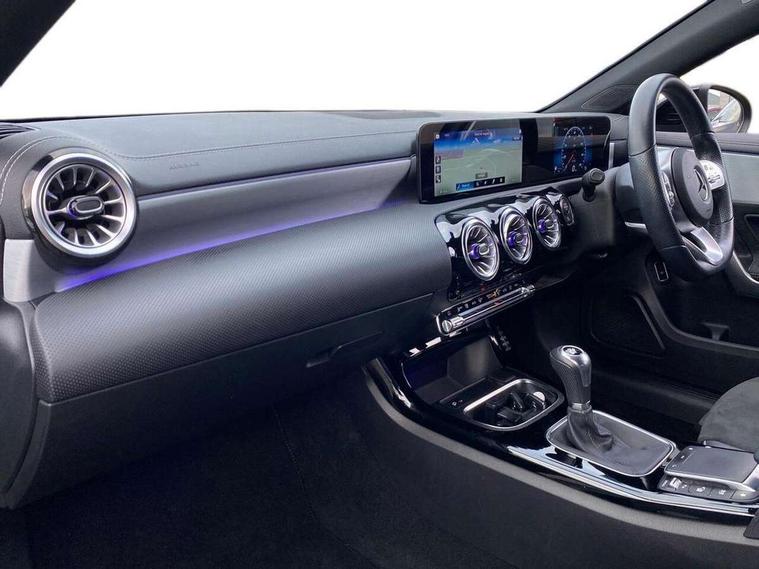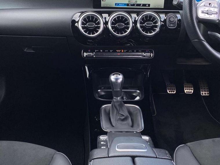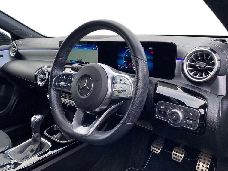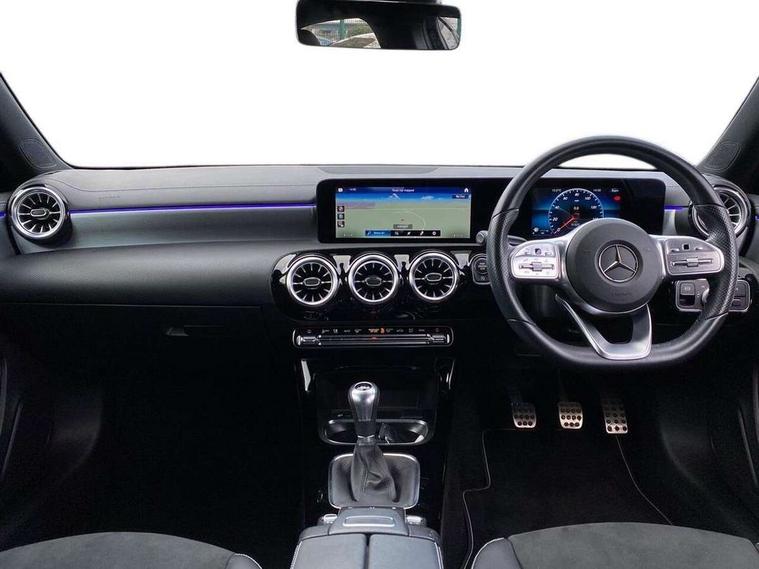 10.25" media display, 180 degree rear view camera with parking guidelines, 7" colour screen in instrument panel, Active parking assist with visual and audible warning of detected obstacles, Attention assist, Brake pad wear indicator warning light, Car wash mode, Cruise control + speed limiter, Direct steering, Dual bluetooth interfaces, DYNAMIC SELECT with a choice of driving modes (ECO, Comfort, Sport and Individual), ECO start/stop function, Fluid level warning indicator for fuel, oil, coolant and washer fluid, Hard-disk navigation, Hey Mercedes Voice activation, Lamp failure indicator, Lane keeping system, Mercedes me connect including emergency call system, accident recovery, breakdown and maintenance management, Mercedes me remote services, Outside temperature gauge, Owners manual in English, Pre-installation for private car sharing, Preinstallation for Mercedes Benz link, Service indicator (ASSYST), Smartphone integration with Apple CarPlay and Android auto, Speed sensitive power steering, Trip computer, Ultrasonic sensors positioned in the front and rear bumpers, Lowered comfort suspension, Rear axle torsion beam, 2 USB ports (type C) in rear stowage compartment and one in front of center console, 6 speakers, DAB Digital radio, MBUX multimedia system with DAB digital radio and touchpad including satellite navigation, Mercedes-Benz sound system - 100W, 4 Electric Front and Rear windows, Adaptive brake lights, AMG bodystyling - Front apron with splitter in chrome, rear apron with chrome trim and chrome visible trim elements in tailpipe, Automatic headlights, Black weather strip, Body colour bumpers, Body colour door handles, Body colour side skirt, Body coloured door mirrors, Electric adjustable and heated door mirrors with integrated LED side indicators, Exclusive diamond radiator grille, Exhaust system - Twin visible tailpipes in polished stainless steel, Headlamp assist automatic headlamp activation, Heated glass rear windscreen + timer control, High gloss black beltline, LED high performance headlamps with integrated LED daytime running lights, LED tail lamp, Privacy glass, Radio aerial, Rain sensing windscreen wipers with two sensitivity settings, Rear boot, Rear fog lights, Rear side wing doors, Third brake light featuring LED technology, Window line trim strip in high gloss black, 3 seat bench in 2nd row, 3 Spoke flat bottom leather multi function steering wheel with perforated leather in grip area, 40:20:40 split folding rear seats, Artico man-made leather/Microfibre Dinamica upholstery with contrast stitching in light grey, Auto Mercedes-Benz child seat recognition sensor, Black air vents with surround in silver chrome, Black roof lining, Brushed stainless steel sports pedals with rubber studs, Controller on centre console with chrome surround, Floor mats with black top stitching and embroidered edition logo and piping in light grey, Front centre armrest with storage compartment, Front door sills with Mercedes Benz lettering, Front seat backs luggage nets, Front seat cushion length adjustment, Front sports seats with adjustable head restraints, Heated front seats, Height/reach adjustable steering column, Interior lighting - 64 colour Ambient lighting, Interior mirror with reading lamps in black and frameless, Manual height adjustable front seats, Rear head restraints, Seat occupancy sensor for front passenger seat, Single front passenger seat, Sunvisors with illuminated vanity mirrors, Touchpad on center console, Twin front cupholders, Two zone thermotronic luxury automatic climate control, Light and sight pack - A Class, Mirror package - A Class, Night pack - A Class Saloon/Hatchback, Seat comfort pack - A Class, 3 rear 3 point seatbelts, ABS with Brake Assist, Active bonnet, Active brake assist includes forward collision warning system with autonomous braking, Adaptive brake assist with hold function and hill start assist, Black seatbelts, Childproof locks manually operated for rear doors and electrically operated for rear power windows, Crash responsive emergency lighting, Driver and passenger head and side airbags, Drivers knee airbag, Dual stage driver/passenger airbags, Electronic parking brake, ESP curve dynamic assist, ESP with ASR, Front and rear seatbelt reminder, Front brake callipers with Mercedes Benz lettering, ISOFIX and top tether child seat fixing points in two outer rear seats, Tyre pressure monitoring system, Warning triangle and first aid kit, Window airbags, Alarm system/interior protection/immobiliser, Keyless Go, Remote central locking and crash sensor with emergency opening function, Urban guard vehicle protection system with immobiliser and interior protection, Matrix look light longitudinal grain aluminium trim element, 18" AMG 5 twin spoke light alloy wheels aerodynamically optimised painted in black with highsheen finish, Summer tyres, Tirefit sealant kit,