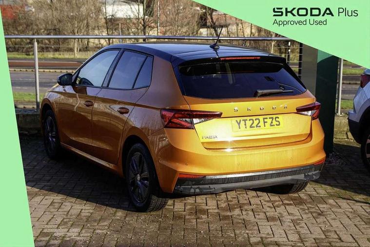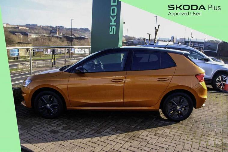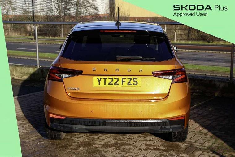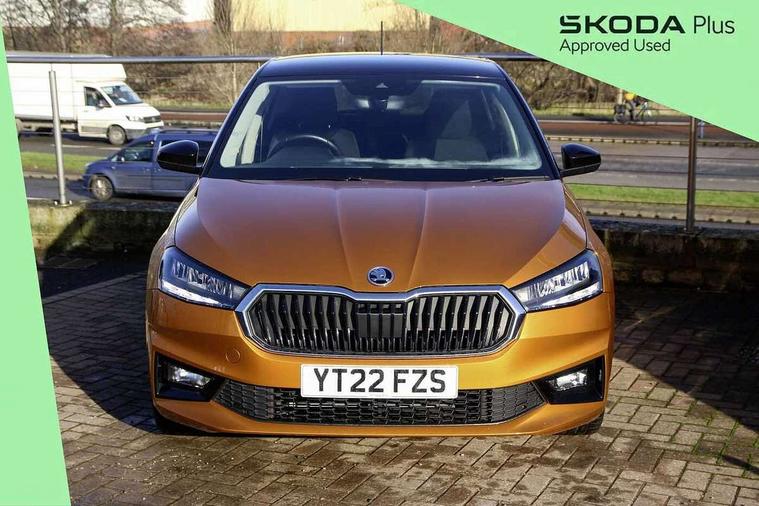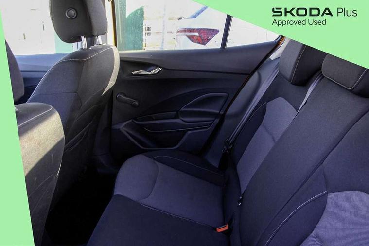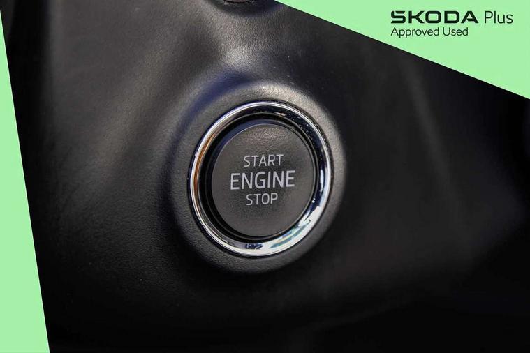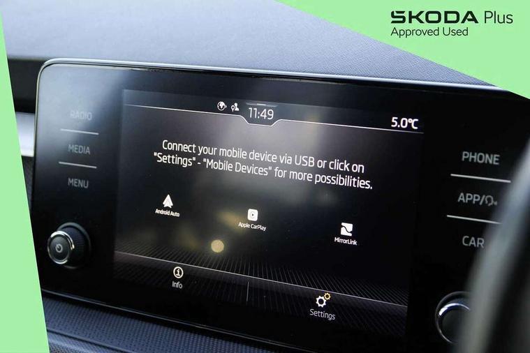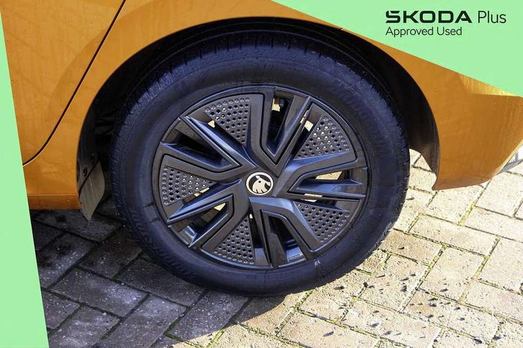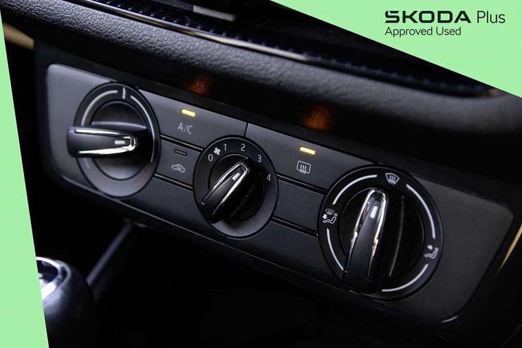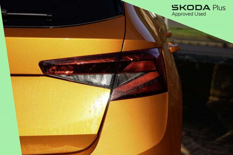 Bluetooth connection, Driver alert system - DAS, Electromechanical power steering, Exterior temperature gauge, Lane assist including road edge detection, Service interval indicator, Virtual cockpit with 10.25" colour display, 2x USB-C in the front (for data transmission and charging), 6 Speakers (4 in front and 2 in rear), Auxiliary socket for external MP3 player, Bolero radio with 8" colour display, DAB digital radio reception, Basic rear lights, Body coloured bumpers, Dimming rear view mirror with black frame, Door mirror integrated indicators, Electrically adjustable and heated door mirrors, Electrically adjustable front windows with function auto up/down, Front window wiper intermittent control, Headlight range control - Automatic, Ice scraper in fuel cap, LED daytime running lights with coming and leaving home feature, Mechanical adjustable rear windows, Privacy glass, Rear LED fog light, Rear side wing doors, Rear window wiper with washing nozzles, Roof mounted spoiler, SKODA tailgate lettering in chrome, Third brake light, 3 rear headrests, Backrest split and folding, Central console with fixed cup holder and storage box, Chrome handbrake release button, Fabric upholstery, Gearshift knob/handle in leather, Grain satin black interior door handles, Hand brake lever handle in leather, Height adjustable front headrests, Height adjustable steering wheel, ISOFIX and TopTether anchorage points to the outer rear seats, ISOFIX and TopTether on the front passenger seat, Luggage compartment lighting, Pollen filter, Rear seat bench unsplit, Single front passenger seat, Storm grey headlining, Sun visors with mirror and airbag label on passenger side, Ticket holder, Umbrella in drivers door, 3-point height adjustable front seats belts with pretensioner and force limiter, Automatic warning lights in case of crash, Driver and passengers airbag with switch off function, e-Call+, ESC including ABS, MSR, ASR, EDS, HBA and XDS, Front and rear seat belt warning, FRONT ASSIST (AEB City and AEB Inter Urban), Front side airbags, Head airbags, One tone horn, Pedestrian protection, Three rear 3-points safety seat belts with pretensioner and force limiter including stop function for outer rear seat belts, Tyre pressure monitoring system, Anti-theft alarm system including immobiliser, interior monitoring, backup horn, and towing protection, Anodized cross line upper decorative trim, Colour Edition air vents, Grain satin black central console cover, Grain satin black lower decorative trim, Satin black door and side trim panel in front, Anti-theft wheel bolts protection, Super-low rolling resistance tyres,