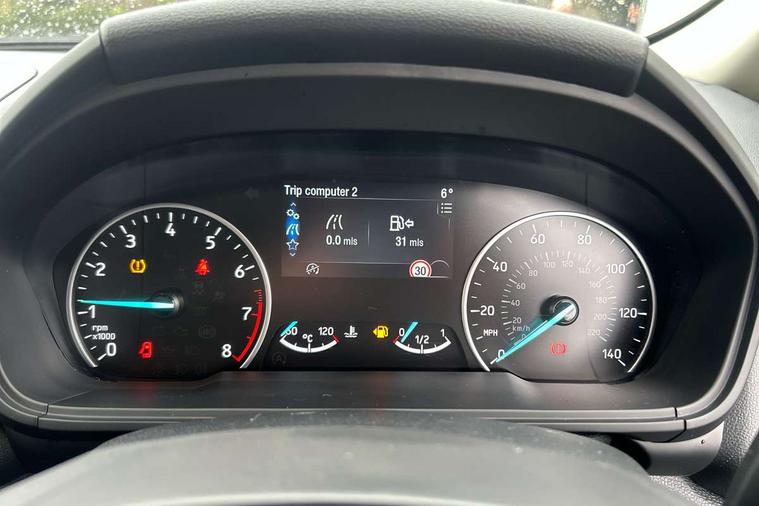 Cruise control, e-Call (emergency call), Easy fuel capless refuelling system, Ford SYNC 3 nav system with DAB radio, 8" screen, emergency assistance, Apple car play/Android auto, 2x USB, 6 speakers, Ford pass connect, Intelligent speed limiter, PAS, Rear parking sensors, Rear view camera, Traffic sign recognition, Trip computer, Auto dimming rear view mirror, Automatic front wipers, Automatic headlights, Black roof rails, Body colour door handles, Body colour roof, Body coloured bumpers, Body coloured door mirrors, Chrome front grille, Chrome lower window surround, Electrically adjustable and heated door mirrors, Front fog lights, Headlight levelling control, LED day running lights, LED third brake light, Power front and rear windows, Puddle lights, Quickclear' heated windscreen, Rear side wing doors, Rear wiper, 12V socket in front and rear, 3 seat bench in 2nd row, 60/40 split rear seats, Ambient lighting, Centre console with sliding front armrest, Cooled glovebox, Courtesy lights with map reading light, Driver seat height/lumbar adjust, Driver's side glovebox, Driver/passenger sunvisors and lidded vanity mirrors, EATC - Electronic Auto Temperature control, Folding grab handles, Front floor mats, Front head restraints, Front seat back map pockets, Groove cloth/partial sensico upholstery, Illuminated glovebox, Illuminated luggage compartment, Isofix system on outer rear seats, Leather trimmed steering wheel with remote audio control, Luggage compartment carpet, Overhead console with sunglasses holder, Rake adjustable rear seats, Reach + rake adjustable steering column, Rear headrests, Sensico gear shift gaiter, Sensico handbrake, Single front passenger seat, Storage drawers under front seats, Tie down hooks, Variable boot floor, 3x3 point rear seatbelts, ABS, Autonomous emergency braking, Child locks on rear doors, Curtain airbags, Driver airbag, Drivers knee airbag, Electronic Stability Programme with hill launch assist, Front passenger airbag deactivation, Front side airbags, Passenger airbag, Pre collision assist system with AEB, Seatbelt reminder for driver and front passenger, Traction control, Tyre pressure monitoring system, Immobiliser, MyKey system, Remote central locking, Thatcham 1 volume sensing alarm, 17" shadow silver finished alloy wheels, Low rolling resistance tyres, Tyre inflation kit,