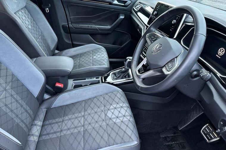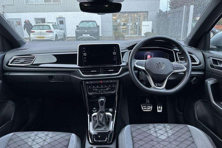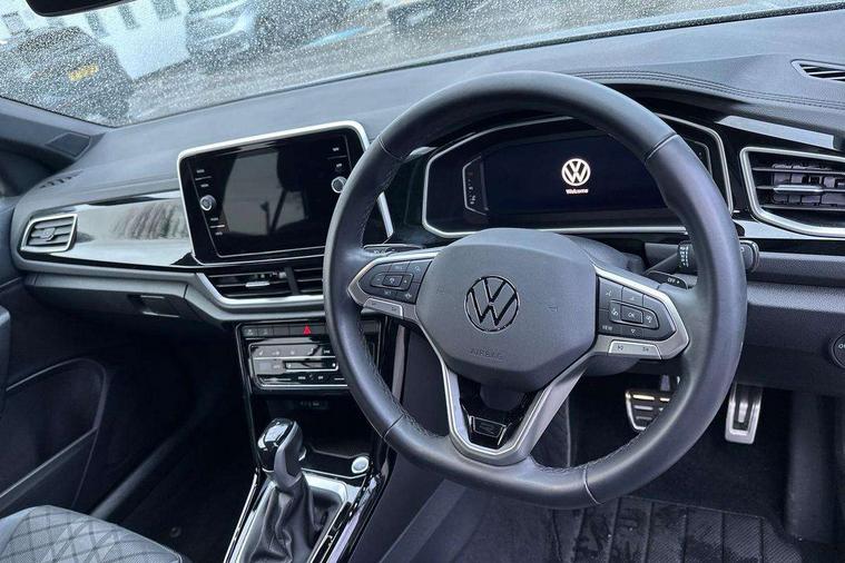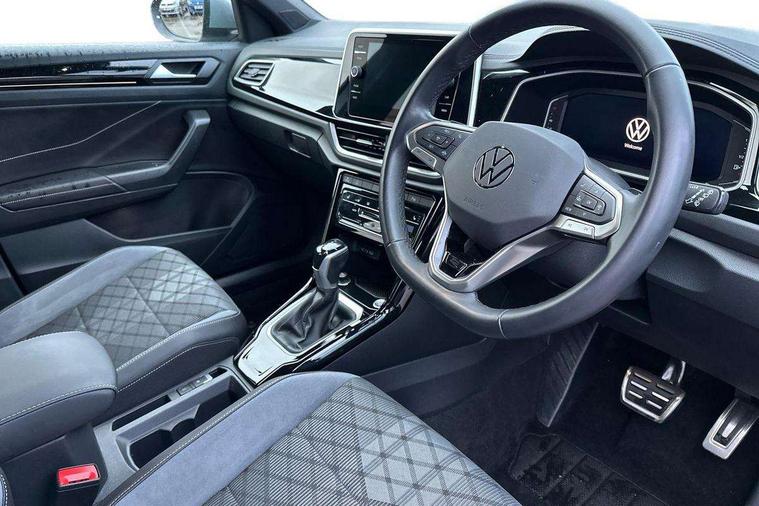 10.25" Digital cockpit pro, Advanced driver attention and drowsiness monitor, Bluetooth mobile phone interface, Emergency call service, Lane keeping system Lane Assist, Modified key software - reduce switch off time for key status change to Long no motion, Online services, Park assist including front and rear parking sensors, Service interval indicator, Tailgate/trunk lid release from outside, Think blue trainer driver tips and journey analysis, Warning sound and light for front seatbelts unfastened, Wireless app connect, Battery regeneration during braking, Start/stop function with battery regeneration, Diversity antenna for FM reception, Music playback - MP3, WMA and AAC files, Premium USB cable in choice of either Apple or Android smartphone compatibility, SD card slot, Simultaneous pairing of 2 compatible mobile devices, Title and cover art display, We Connect and We Connect Plus functionality, 3rd brake light, Auto dimming interior rear view mirror, Automatic hazard lights activation under emergency braking, Automatic headlight control with LED separate daytime running lights with coming/leaving home function, Electrically adjustable and heated door mirrors, Extended roof spoiler, Exterior mirrors aspherical on driver side, convex on front passenger side, External USB type C socket and charging sockets, Front windscreen wiper with intermittent wipe and 4 position delay, Heated rear window, LED rear combination lamps, LED rear number plate lights, Power windows with comfort operation and circuit breaker, R-Line design body coloured bumpers, Rain sensor, Rear exhaust tailpipe, Rear fog light on one side and reversing lights on both sides, Rear side wing doors, Rear wash/wipe with intermittent wipe setting, Remote electrically foldable door mirrors, puddle lights and reverse activated passenger's door mirror, 12V power socket in centre console, 3 rear head restraints, 3 seat bench in 2nd row, 4 load lashing points in luggage compartment, Air care climatronic air conditoning system with active combination filter and 2-zone temperature control, Black roof lining, Chrome plated radiator grille inserts, air vent surrounds and light switch surrounds, Door and side trim panel with leatherette insert, Front + rear carpet mats, Front centre armrest, Front cupholders x 2, Front footwell illumination, Front reading light, Front scuff plates with R Line logo, Front seat back storage pockets, Glove compartment door with light, Instrument lighting, white adjustable panel illumination, Interior ambient lighting and surround lighting, Interior light delay, Isofix child seat preparation, Leather gearshift handle, Load-through provision with cup holder when folded down ('Unsplit rear seat bench, split folding backrest, with centre armrest), Luggage compartment lighting, Single front passenger seat, Stainless steel pedals, Storage compartment in left and right luggage area, Storage compartment in rear doors, Storage compartments in driver and front passenger doors, Sunvisors with illuminated vanity mirrors, Variable boot floor, height adjustable and removable, Driver assistance pack without proactive passenger protection - T-Roc, 3 point height adj front seatbelts + pretensioners, 3 point seatbelts in outer rear with ECE label, ABS, Child locks on rear doors, City emergency braking and pedestrian monitoring, Driver and front passenger airbag with front passenger airbag deactivation, Driver and front passenger safety-optimised head restraints, Drivers seatbelt reminder, Electronic parking brake, Electronic Stability Control (ESC) inc EDL (Electronic Differential Lock) and ASR (Traction Control), Front and rear passengers curtain airbag system including front side airbags, Hill start assist, Predictive pedestrian protection, Rear disc brakes, Two tone horn, Tyre pressure loss indicator, Volkswagen roadside assistance, Anti-theft alarm system with interior monitoring, backup horn, and towing protection, Remote central locking with SAFELOCK, radio remote control with 2 remote control folding keys, Trims for alloy wheels,