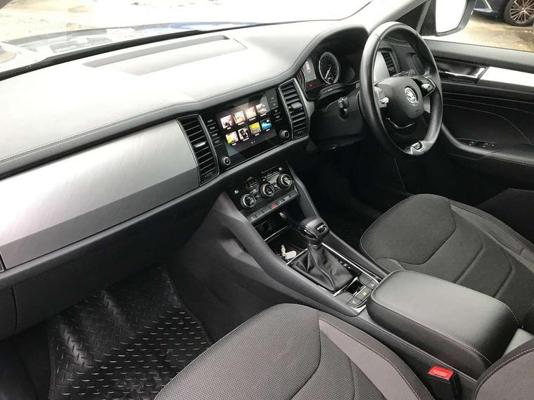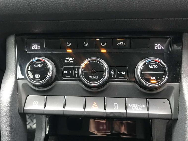 Bluetooth system, Colour multifunction trip computer, E-call, ECO Stop/start function, Exterior temperature indicator, Power assist steering, Smartlink wireless for apple carplay and wired for android auto, Speed limiter, Tailgate unlocking from outside, USB C Port x 2 in front centre console, 8 Speakers, DAB Digital radio, Aero front windscreen wipers with intermittent function, Aero rear window wiper, Auto dimming rear view mirror, Black wheel arch surrounds, Body colour bumpers, Body colour door mirrors and handles, Electric front and rear windows, Extended rear spoiler with finlets in gloss black, Front fog lights, Headlight washers, Heated rear window, Invisible tailpipe, LED rear fog light, LED third brake light in rear spoiler, Light assistant (coming/leaving home/tunnel light), Off-road style lower front bumper element, Privacy glass, Radiator grille frame in matt black with chrome strip, Rain and light sensors, Rear LED lights (high functionality) with welcome effect and dynamic indicators, Rear side wing doors, Safety reflectors on front and rear doors, Window control switches with black trim, 12V socket in boot, 2 rails with 2 hooks, 3 seat bench in 2nd row, 4 foldable roof handles with rear coat hooks, 60:40 foldable rear seat with sliding adjustment and backrest angle adjustment, Bottle holders in door panel in the 1.5 litre front and 1 litre rear, Chrome interior door handles, Cloth upholstery, Coat hooks on B pillar, Covered storage compartment on driver side, Dual zone automatic air conditioning with humidity sensor and control, Front centre armrest with storage compartment, cup holder and 12V socket, Gear shift lever with chrome frame and black gloss insert, Grey headlining, Grey stitching in front and rear armrests and door armrests + door inserts, Height adjustable front headrests, Height adjustable front seats, Illuminated and cooled glovebox, Illuminated luggage compartment, Isofix child seat fittings in outer rear seats with top tether, Manually adjustable steering column, Net programme in boot (1x horizontal Net, 2x vertical Nets), Overhead glasses storage compartment, Pollen filter, Rear centre armrest with cupholders, Single front passenger seat, Sliding trunk cover, Small Bags on the inner sides of the front backrests, Sunvisors with illuminated vanity mirrors, Three rear height adjustable headrests, Ticket holder on A Pillar, Umbrella in door panel, Auto door release and activation of warning lights in the event of an accident, Child locks on rear doors, Driver and front passenger airbag with knee airbag and front passenger airbag deactivation, Electronic parking brake with hill start assist, Emergency rear braking signal, ESC (incl. ABS+MSR+ASR+EDS+HBA+DSR+RBS+MKB), Front assist with autonomous emergency braking, Front side airbags with curtain airbags, Fuel cut off safety device, Height adjustable front 3 point seatbelts + pretensioners, Hill hold control, Rear disc brakes, Safety vest holder in door, Seat belt reminder for all seats, Three point rear seat belts, Two tone horn, Tyre pressure monitor, Alarm with interior monitoring and tilt sensor with safe function, Anti-theft wheel bolts, Immobiliser, Keyless entry and start system (KESSY), Remote central locking with 2 keys, Grey stitching in dashboard,