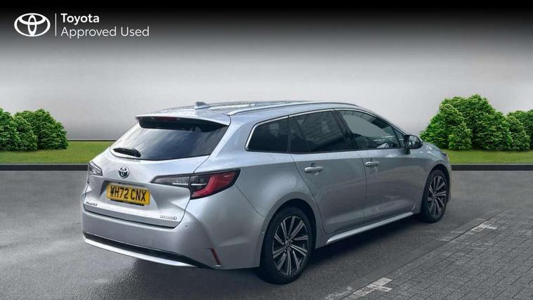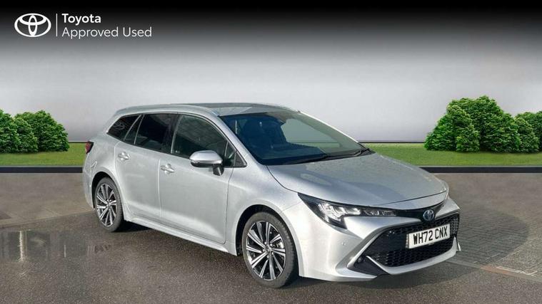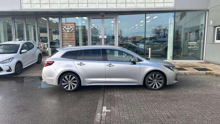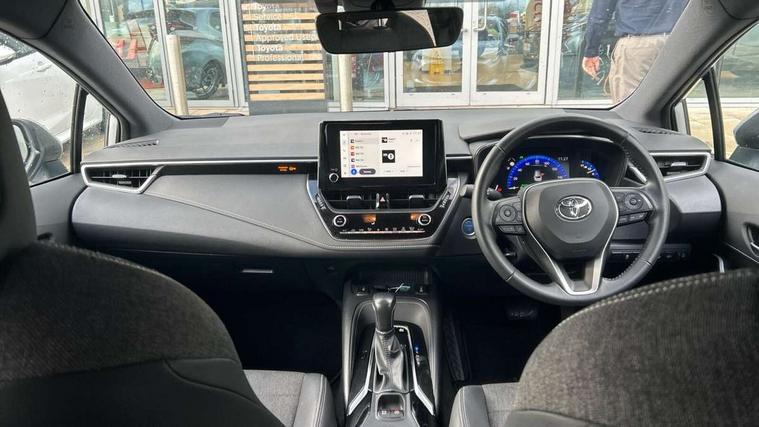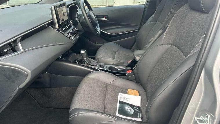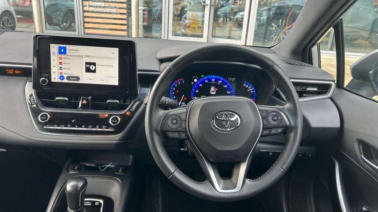 7" Multi information display screen, Bluetooth telephone connectivity, Connected car functionality upgrade, tracker, remote status and e-care, Door trim and centre console material, Dynamic radar cruise control (with RSA) including switch on steering wheel, E-call, Electrically assisted power steering, EV drive indicator, Intelligent park assist, Lane Departure Alert (LDA) switch on steering wheel, Memory on adjustable speed limiter, Push button start, Reversing camera, Smartphone integration with Apple CarPlay and Android auto, Gasoline particulate filter, Vehicle Stability Control (VSC), 6 speakers, 8" Touchscreen with MM19 Multimedia system and voice recognition, AM/FM radio, DAB Digital radio, Toyota touch 2 with go navigation system, USB and Aux in connectors + 12V front outlet, USB charging port in centre storage box, Aluminium roof rails, Anti-jam protection on power windows, Auto dimming inside rear view mirror, Auto up and down function on all power windows, Automatic folding mirrors, Automatic headlights with high beam assist, Black metallic surround on lower front grille, Black toyota logo in front, Body colour rear spoiler, Body coloured bumpers, Body coloured door mirrors, Body coloured outside door handles, Follow me home headlights, LED daytime running lights, LED front fog lights, LED Headlights, LED High mounted stop light, LED rear combi lights with LED lightguide, Noise reduction layer on front windows, Power adjustable heated door mirrors, Power front windows, Power rear windows, Privacy glass, Rain sensing wipers, Rear side wing doors, Rear window defogger, Rear window wiper, Reverse tilting door mirrors, Shark fin antenna, Time adjustment on intermittent wiper, Turning signal integrated indicators in door mirrors, Unique lower skirt, Unique side rocker with black insert, UV-filter on driver and passenger windows, 12v power outlet - luggage side, 3 rear headrests, 3 seat bench in 2nd row, 3 spoke leather steering wheel + gear knob, 60/40 split folding rear seat, Adjustable speed limiter switch on steering wheel, Audio, multimedia and telephone switches on steering wheel, Blue ambient interior illumination to centre tray, front cup holders and front door trim, Boot light, Boot underfloor storage, Clean air filter, Driver and front passenger personal light, Driver and passenger assist grip, Driver and passenger sun visor with mirror and light, Dual sided deck board in boot, Dual zone automatic air conditioning with ECO mode switch, Fabric/synthetic leather upholstery, Front and rear cup and bottle holders, Front and rear door pockets, Front head restraints, Front passenger seat, Heated driver and front passenger seats, Illuminated entry system in room lamp, ISOFIX seat fixing (2 fixings on rear outer seats), Leather gear shift with satin chrome on gear shift console, Leather style armrests, Manual height adjustable for driver and front passenger seat, Passenger seat back pocket, Pollen filter, Power adjustable lumbar support on driver seat, Power window switches with satin chrome inserts, Rear armrest with 2 cupholders, Rear passenger air vents, Rear passenger coat hooks (2), Rear passenger personal lights, Retractable tonneau cover with luggage partition net, Satin chrome inside door handles, Shopping bag hooks in luggage compartment, Side storage in boot, Sliding armrest on centre console box, Slow opening glovebox with lights, Tilt/telescopic steering column, Tonneau cover with under floor storage, Voice recognition switch on steering wheel, Whiplash Injury Lessening (WIL) feature (active headrest) for seats, Parking pack - Corolla, Toyota safety sense 2 pack - Corolla, 3x3 point rear seatbelts, Adjustable driver and front passenger seat belt extender to top anchor point, Anti lock braking system + Electronic brake force distribution, Brake assist function, Child locks on rear doors, Downhill Assist Control (DAC), Electronic parking brake, Emergency brake light signal (EBS), Front passenger airbag on/off switch, Front seatbelt reminder, HAC - Hill start assist control, Rear seat belt reminder, Seatbelt pretensioners and force limiters, Supplemental restraint system (SRS) 7 airbags - dual driver, dual side curtain, side impact and driver knee airbags, Traction control, Tyre pressure warning system, Acoustic vehicle alert system (AVAS), Alarm with motion sensor and immobilizer, Remote central locking + deadlocks, Smart entry, Satin chrome dash trim, Soft touch texture on upper dashboard, Stitching on lower dashboard, Tyre repair kit, Unique wheel finish with red wheel cap,