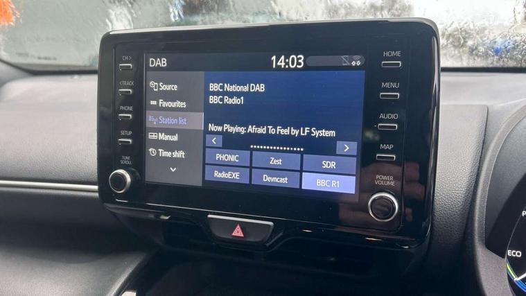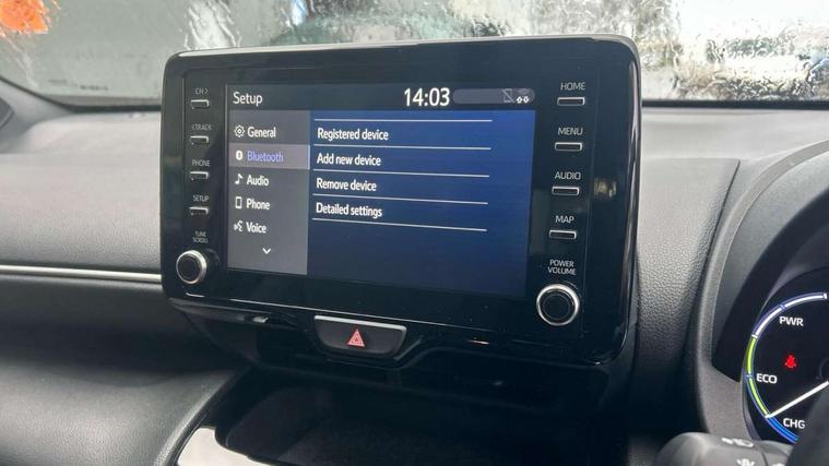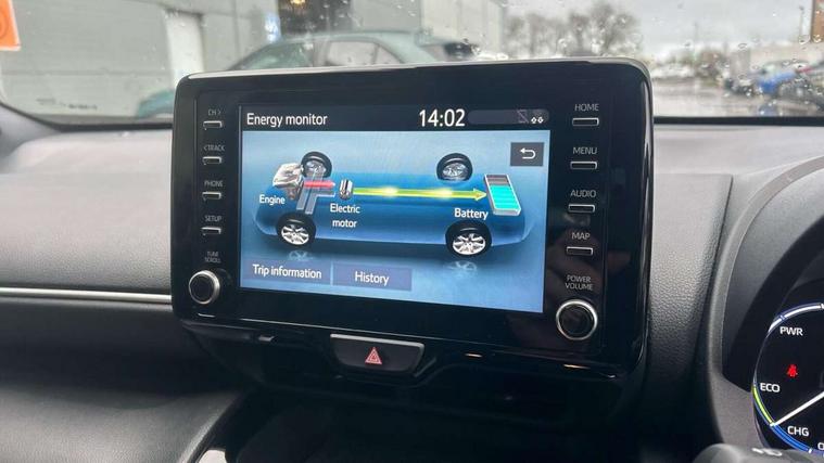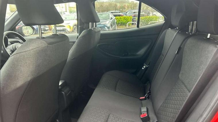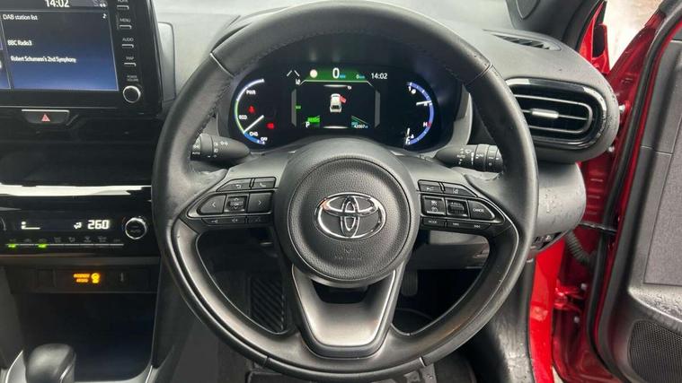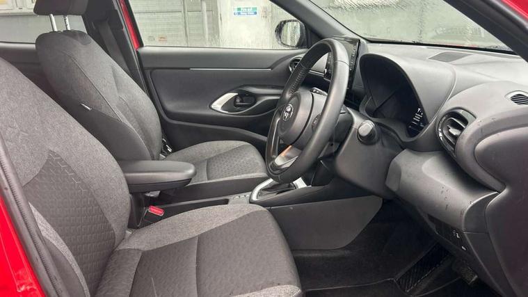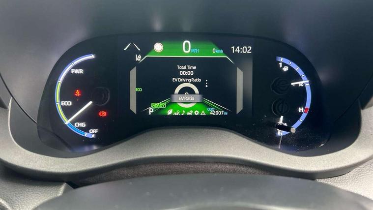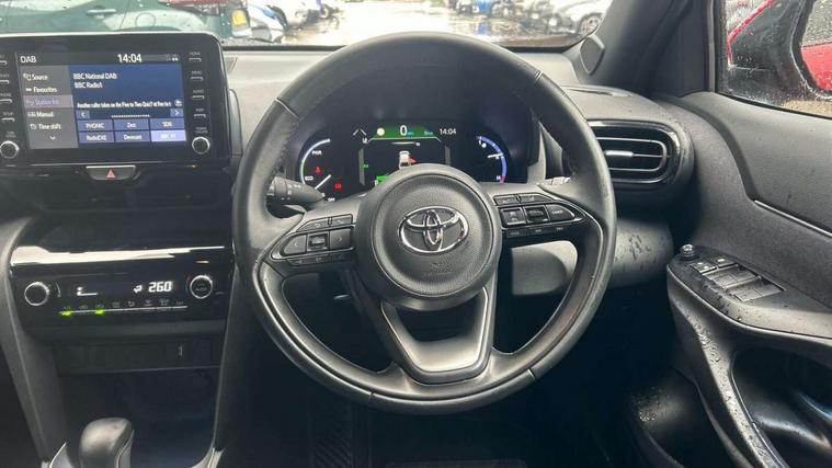 7" Multi information display screen, 8" Toyota touch 2 multimedia system with Smartphone integration with Apple CarPlay and Android auto, Adjustable speed limiter, Bluetooth connectivity, Driver attention alert system, eCall emergency system, Electric power steering, Full range intelligent adaptive cruise control, Hybrid system indicator, Key reminder warning, Lane trace assist, Multimedia, audio, telephone and voice recognition switches on steering wheel, My T Connected services, Pre-collision system enhanced with emergency steering assist, Reversing camera, Road sign assist - RSA, Steering assisted vehicle stability control, 6 speakers, DAB Digital radio, USB connection, 3rd brake light, Acoustic windscreen glass, Aluminium roof rails, Anti-jam protection on power windows, Auto high beam [AHB] with on/off switch, Automatic headlights, Black lower front grille, Black Shark-fin antenna, Black upper front grille, Black wheel arch mouldings, Body colour door handles, Body colour front bumper, Body colour rear bumper, Electric adjustable heated door mirrors, Follow me home headlights, Front and rear electric windows with auto up/down function, Front intermittent wipers, Headlight cut off reminder, Indicators integrated on door mirrors, Intermittent rear wiper, LED daytime running lights guide, LED front fog lights, LED front light guide, LED Indicators, LED projector headlights, LED rear light guide, Manual headlight levelling, Manually retractable door mirrors, Noise reduction layer on windscreen, Privacy glass, Rain sensor, Rear LED lights with sequential indicators, Rear side wing doors, Rear spoiler, Rear window defogger, 12v power outlet - front, 2x Rear coat hooks, 3 seat bench in 2nd row, 3 spoke leather steering wheel, 40:20:40 split folding rear bench seat, Adjustable speed limiter switch on steering wheel, Auto air conditioning, Black roof lining, Boot light, Central armrest, Centre console in light blue ambent lighting, Driver and front passenger personal lights, Fabric door trim, Fabric upholstery, Footwell in light blue ambient lighting, Front console box, Front cup holders, Front head restraints, Glovebox, Height adjustable driver's seat, Height adjustable front passenger seat, Hooks for luggage holding belts, ISOFIX child restraint system, Lane departure alert switch on steering control, Leather gearshift, Light blue ambient lighting on front doors, Manual telescopic and tilting steering wheel, Mirror on driver and passenger sun visor, Pollen air filter, Rear cup holders, Rear head restraints, Single front passenger seat, Soft tonneau cover, 3x3 point rear seat belts, ABS+EBD+Brake assist, Driver and passenger central airbags, Driver and passenger front airbags, Driver and passenger side airbags, Electronic parking brake, Emergency brake light system (EBS), Front seat belt reminder, Hill start assist control (HAC), Passenger airbag on/off switch, Pre-collision system with pedestrian and cyclist detection, Rear door child safety locks, Rear passenger side airbags, Rear seat belt reminder, Traction control, Tyre pressure warning system, Immobiliser, Intrusion alarm, Keyless smart entry with push button start, Power door locks, Power passenger window lock, Remote door lock, Tyre repair kit,