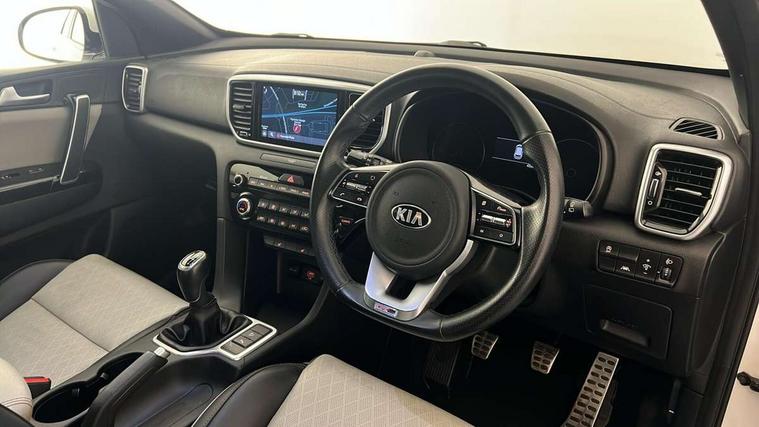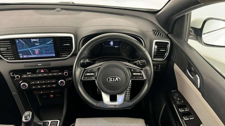 4.2" supervision colour cluster display, 8" touchscreen satellite navigation with European mapping and traffic messaging channel, Android auto with voice control, Apple car play with voice control, Cruise control + speed limiter, Driver attention warning, Emergency stop signalling system, Front parking sensor, Kia connected services featuring TomTom live, Lane keep assist, Rear parking sensor, Reversing camera, Speed limit information, Speed sensitive power steering, Telematics system with UVO connect services, Trip computer, Windscreen washer level indicator, Intelligent Stop and Go, 6 speaker audio system, Bluetooth audio streaming, DAB Radio with MP3, Rear USB port, Steering wheel mounted audio controls, USB/iPod/auxiliary input connections, All round electric windows with drivers auto up/down function, Auto dimming rear view mirror, Automatic lighting control, Automatic window defogger, Black wheel arch body mouldings and side sills with dark chrome insert, Body colour door handles with chrome inserts, Body colour door mirrors, Chrome window surround, Dark chrome front bumper insert, Dark chrome front grille surround, Electrically adjustable/heated/folding door mirrors with LED indicators, Front wiper de-icer, High beam assist, High gloss black blade mesh radiator grille, LED Bi-Function headlights, LED daytime running lights, LED ice cube front fog lights, LED rear lights, Privacy glass - Rear windows and tailgate, Rain sensing front wipers, Rear spoiler, Rear wiper, Roof rails, Shark fin antenna, Silver painted front and rear skid plates, Tinted glass, Trailer stability assist, Welcome and follow-me home light functionality, Wide view drivers door mirror, 12V power in front and rear centre console, 3 x passenger assist grips, 60/40 split folding rear seat, Air filter, All-round height adjustable headrests, Aluminium door scuff plates, Aluminium pedals, Black headlining, Centre cabin light, Centre console storage box, Chrome boot sill guard, D-Shaped sports leather steering wheel and perforated inserts with GT-Line logo, Driver and front passenger side sunvisors with illuminated vanity mirrors, Driver's seat manual height adjust, Drivers seat power lumbar support, Dual zone automatic air conditioning, Front and rear door storage, Front cabin LED map light with sunglasses case, Front door courtesy reflectors, Front seat and rear pockets, Front/rear centre armrests, Gear shift indicator, Glovebox illumination, Heated front and outer rear seats, Interior door lock/unlock function, ISOFIX Child seat top tethers and anchor fixings, Leather trimmed door armrests, Leather trimmed gearshift, Luggage area light, Luggage area load cover, Luggage net with hooks, Rear centre armrest with cupholder, Rear coat hooks, Satin chrome interior door handles, Tilt/telescopic adjustable steering wheel, Two tone leather upholstery, Ventilation ducts to rear compartment, Active front headrests, All round 3-point seatbelts, Anti-lock braking system with electronic brakeforce distribution, Dual front side airbags, Electronic stability control with downhill brake control, Front passenger airbag cut-off switch, Front seatbelt pretensioners + load limiters, Height adjustable front seatbelts, Hill start assist control (HAC), Impact sensing auto door unlocking, Rear door child safety locks, Traction control, Twin curtain airbags with roll over sensor, Twin front airbags, Tyre pressure monitoring system, Advanced anti-theft system including immobiliser and alarm, Door deadlocks, Engine Start/Stop Button with Smart Entry System, Locking wheel nuts, Speed sensitive auto door locking, Visible vehicle identification number, High gloss black centre fascia, 19" alloy Wheels B-type, Tyre mobility kit,