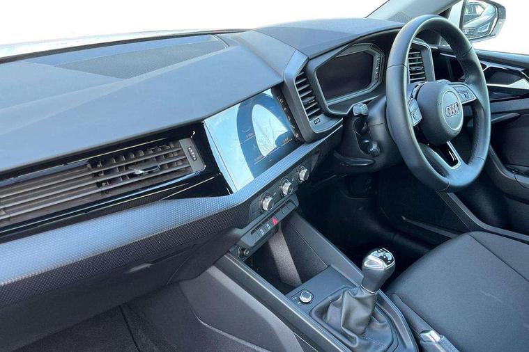 10.25" Digital instrument cluster display classis style instrument dials + speed, odometer, time, outside temperature, telephone menu + fuel level warning, Audi smartphone interface with connect compatible smartphone via USB directly MMI display + Nav, music, third party apps controlled via MMI controller, Automatic start/stop system, Bluetooth interface, Driver's information system, Electromechanical power steering, Emergency e-call, Emergency services call system, Lane departure warning system, Service interval indicator, Speed limiter, Voice control system, Washer fluid level indicator, Dynamic suspension, 1 x SDXC card reader, 2 x USB type C connection points, 6 passive loudspeakers, DAB Digital radio, MMI radio plus with 8.8" colour MMI display screen and MMI touch, Auto dimming rear view mirror, Body coloured bumpers, Body coloured door mirrors, Electric front and rear windows, Electrically adjustable, heated, folding door mirrors with integrated LED side indicator, Front side air inlets with front spoiler lip and rear diffuser in matt black grained, Heat insulating glass windscreen and side windows, Heated rear windscreen, High level LED brake light, LED headlights with LED rear lights + dynamic rear indicators + headlight adjustment and high beam, turning light + LED daytime running lights, Radiator grille in matt black, Rain and light sensors, Rear fog lights, Rear side wing doors, Rear wing door, Rear wiper, 12V socket in centre console with two cup holders, 3 rear seats with headrests, 3 seat bench in 2nd row, 3 spoke leather multifunction plus steering wheel, 40:60 Split folding rear seat or folded fully, Air vents, door handle recesses and centre console in black, Delta cloth upholstery, Driver and passenger seat with manual height adjust with forward and backwards adjustment, Front head restraints, Front passenger seat, Front/rear floor mats, Height and reach adjustable steering wheel, ISOFIX child seat mounting for front passenger and outer rear seats including top tether attachment point of outer rear seats, Leather gear knob with aluminium trim, Leatherette handbrake grip, Luggage compartment light with front and rear reading lights, Manual air conditioning, Titanium grey cloth headlining, Luggage compartment pack - A1, 3x3 point rear seatbelts, Audi pre-sense front with pedestrain and cyclist recognition, Brake assist function, Driver and front passenger airbag with front side and head airbags, Electronic Stability Control including ABS, EBD, ASR and EDL, Front passenger airbag deactivation switch, Hill hold assist, Manual rear child locks, Seatbelt height adjustment for front seats, Seatbelt monitoring, Tyre pressure warning light, Warning triangle and first aid kit, Anti theft alarm, Anti theft wheel bolts and loose wheel warning, Immobiliser, Remote central locking with 2 foldaway keys, Black inlays polygon structure, 15" 5 arm design alloy wheels,