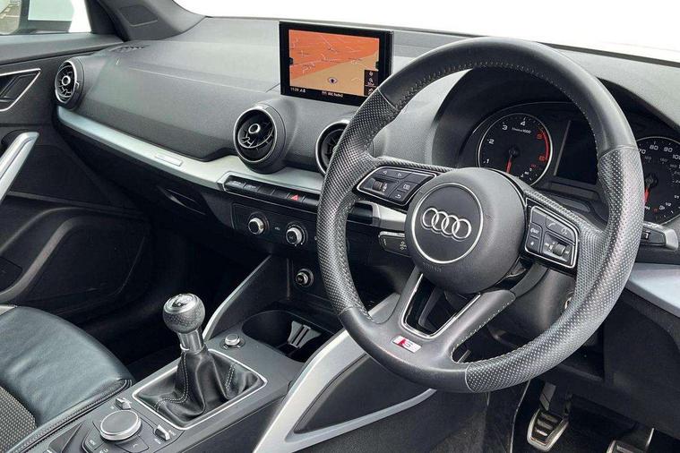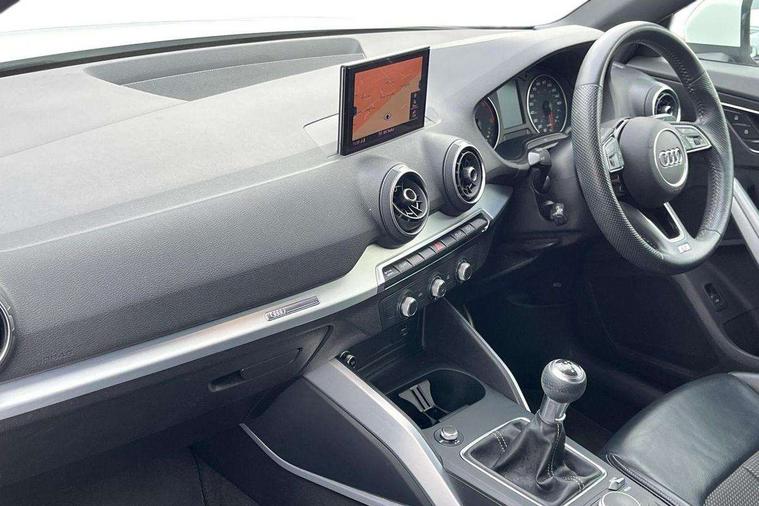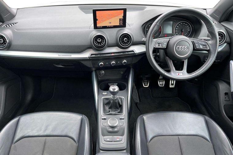 Aluminium interior element, Matt brushed aluminium fascia and door trim inlays, Connectivity pack - Q2, Non smoking pack - Q2, Anti theft alarm, Anti theft wheel bolts, Central locking system with remote control key, Audi music interface - apple iPod, apple iPhone, USB storage media, compatible MP3 players, 2 x USB charging points and 1 x Aux-in, CD Drive, DAB digital radio reception, MMI radio plus with 7" colour MMI screen and MMI controller, 3x3 point rear seatbelts, 6 airbags - Front, curtain and front side airbags, Electromechanical parking brake, Electronic stabilisation control including ABS, ASR and EDL, Extended and proactive pedestrian protection, Hill hold assist, Multi collision brake assist, Pre-sense front with pedestrian recognition, Seatbelt monitoring, Tyre pressure warning light, Warning triangle and first aid kit, Black window trims, Chrome exhaust tailpipe, Electrically adjustable and heated door mirrors with integrated LED side indicators, Front and rear electric windows, Front underbody guard and rear diffuser trim in selenite silver, Front windscreen with grey tinted sunband, Headlight washers, Interior mirror, LED headlights with LED rear lights + dynamic rear indicators, LED indicator lights, Rain and light sensors, Rear wiper, S Line badges on the front wings, S Line body styling - front and rear bumpers, side skirts, radiator grille, rear diffuser insert and front air intakes, Black cloth headlining, Floor mats with contrast stitching, Front centre armrest, Front headrests, Front sport seats with S embossed logo, Height/reach adjust steering wheel, Illuminated door sill trims with S logo, ISOFIX child seat mounting with top tether and electrically operated child lock, Manual seat adjustment including seat height adjustment for front seats, Stainless steel pedals, Storage compartments - Glovebox, cupholder compartment in centre console, storage compartment in rear centre console, front and rear door pockets, Three rear headrests, Audi drive select, Audi smartphone interface, Automatic start/stop system with recuperation, Bluetooth interface includes bluetooth audio streaming, MMI - Multi Media Interface control system, MMI SD card Navigation, Power operated tailgate, Progressive steering, Service interval indicator, Voice control system,