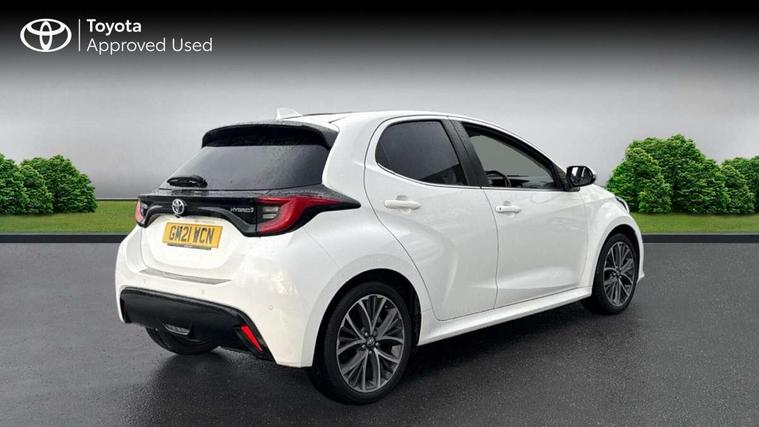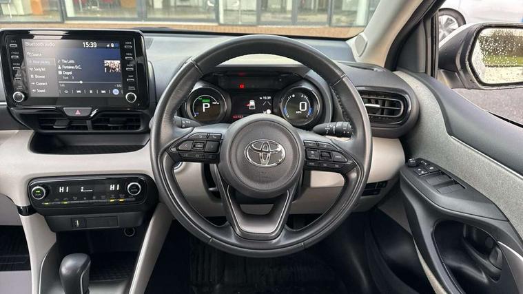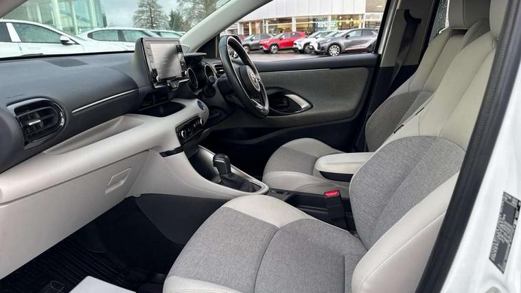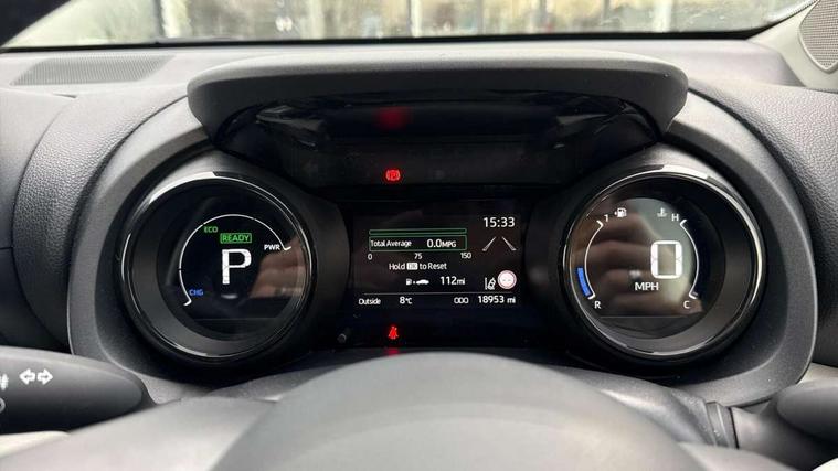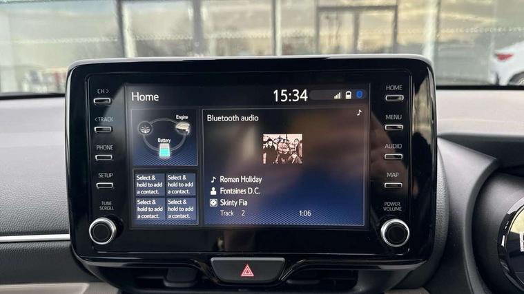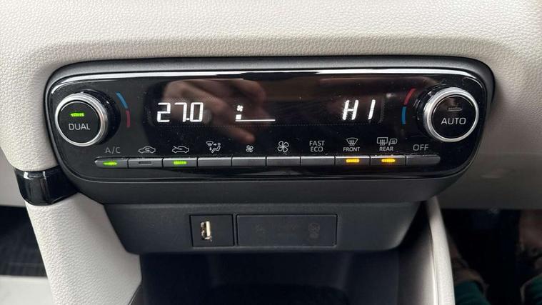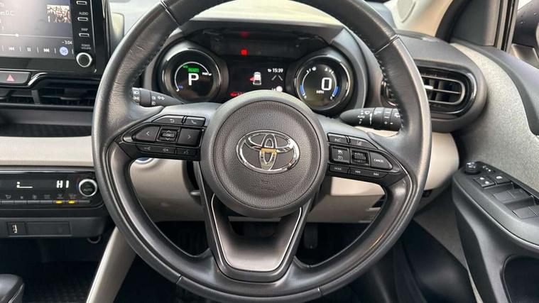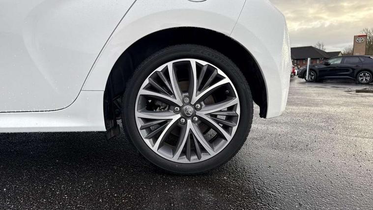 Adaptive cruise control, Adjustable speed limit with speed warning, Blind spot monitoring, Bluetooth connectivity, Colour binocular inspired displays with digital speedometer, E-call, Electric power steering, Front and rear parking sensors and intelligent clearance sonar with automatic braking, Hybrid energy display, Multi information display switches on steering wheel, Reversing camera, Smartphone integration with Apple CarPlay and Android auto, Vehicle Stability Control (VSC), 6 speakers, 8" Multimedia display touch screen, USB connection, Acoustic windscreen glass, Automatic headlights, Automatic windscreen wipers with rain sensor, Automatically retractable door mirrors, Body coloured door mirrors, Electric adjustable heated door mirrors, Follow me home headlights, Front auto power windows with anti jam protection, Full LED rear lights, LED daytime running lights, LED front fog lights, LED Headlights, LED High mounted stop lamp, Painted front grille, Rear auto power windows with anti jam protection, Rear privacy glass, Rear side wing doors, Rear spoiler, Rear wiper, Satin lower front grille, Shark fin antenna, Turning signal integrated indicators in door mirrors, 3 adjustable rear headrests, 3 spoke leather steering wheel, 60/40 split folding rear seat, Active headrests, Adjustable boot height, Coat hooks in rear grab handles, Cup holders (2 front & door), Data Communication Module (DCM) connected services, Dual zone automatic air conditioning, Fabric seat with partial synthetic leather upholstery, Front armrest, Front sport seats, Glovebox, Height adjustable driver's seat, Height adjustable passenger seat, Isofix seat fixing, Leather gearshift, Map pockets on the backs of the front seats, Pollen filter, Shopping bag hooks, Single front passenger seat, Tilt/telescopic steering column, 3 point seatbelts on all rear seats, ABS+EBD+Brake assist, Electronic parking brake, Emergency brake light system (EBS), Front passenger airbag on/off switch, Front seatbelt reminder, Hill start assist control (HAC), Rear child proof door locks, Rear seat belt reminder, Supplemental Restraint System (SRS) 8 airbags: Driver & passenger's airbags, dual side curtain airbags, side impact airbags, front centre airbag, Toyota Safety Sense 2, Precollison + Night time Pedestrian & Cyclist Detection, Lane Trace Assist, Auto High Beam, Intelligent ACC & Road Sign Assist, Tyre pressure warning system, Alarm/immobiliser, Keyless smart entry with push button start, Remote powered central double locking doors, Satin chrome interior styling, Soft touch instrument panel, Space saver spare wheel,