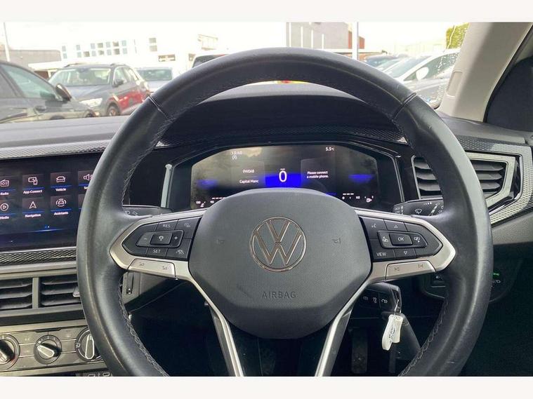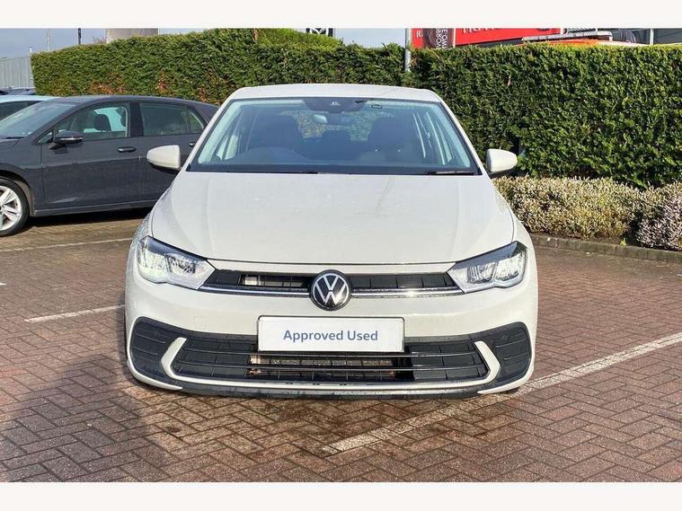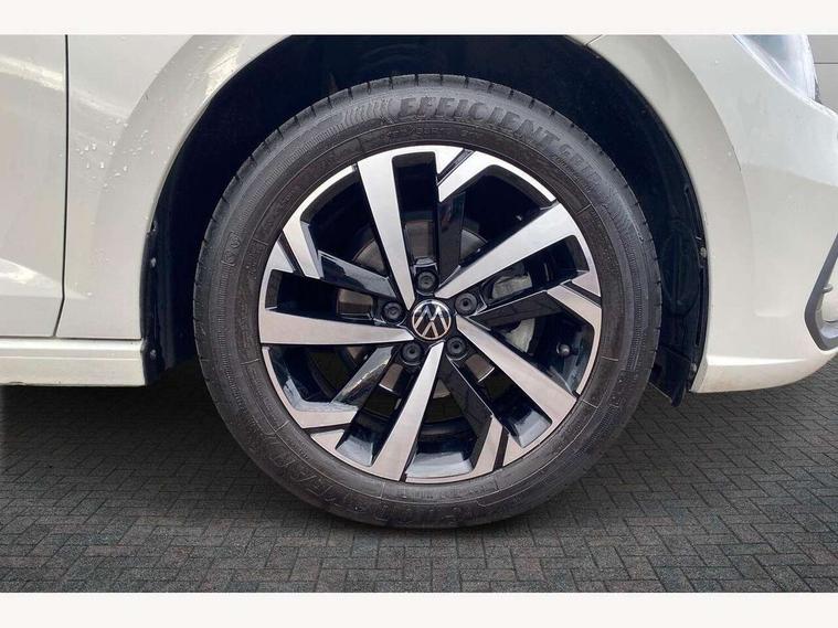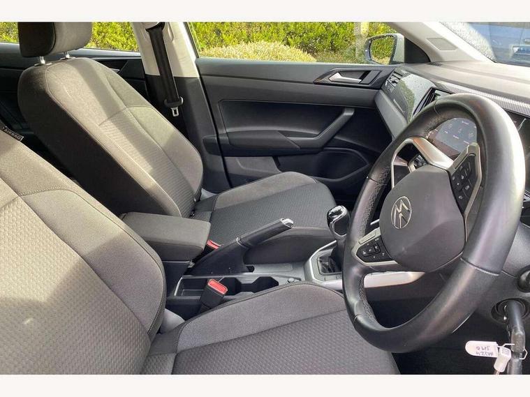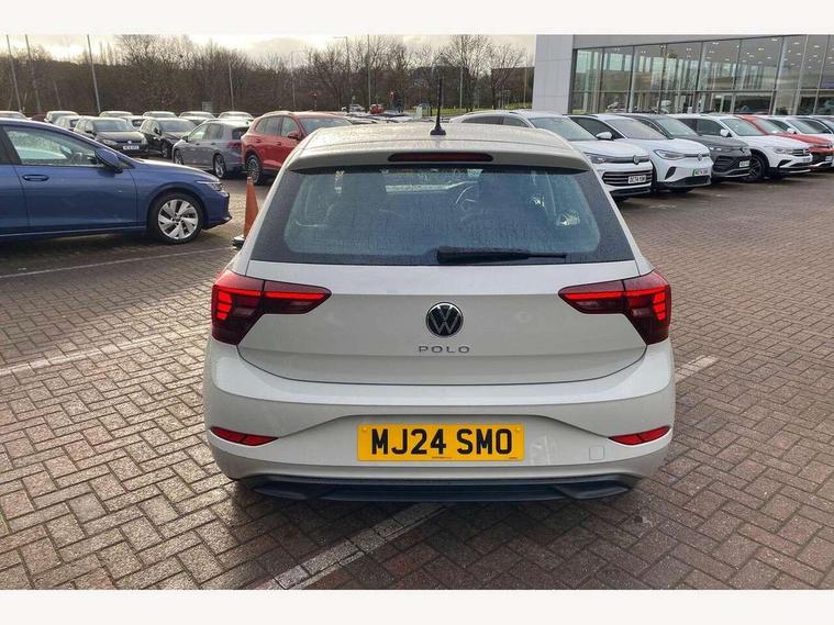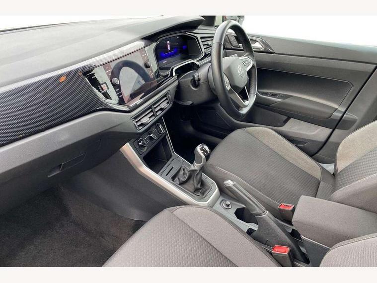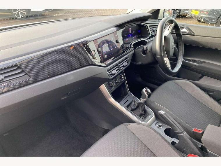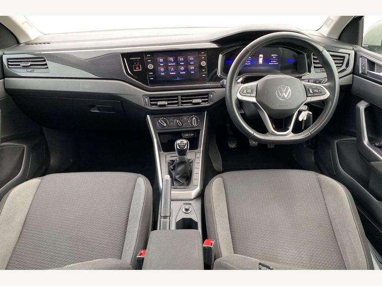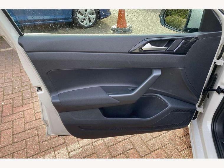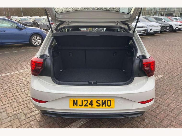 Adaptive cruise control without follow-to-stop and speed limiter, Advanced driver attention and drowsiness monitor, Bluetooth mobile phone interface, Dynamic road sign display, Emergency call service, Power assisted speed sensitive steering, Preparation for navigation system with media and internet package, Preparation for We connect and We connect plus, Speedo and rev counter, electronic odometer, trip, service interval display and exterior temperature gauge, Standard rear axle, Travel Assist - Lane keeping system and traffic jam assist, Travel assist including emergency assist, Trip computer, Warning signal and warning light for front and rear seatbelts not fastened, Washer fluid level indicator, Wireless app connect, Front wheel drive, Rear shock absorpion, Start-stop system with battery regeneration (recuperation - energy recovery during braking), DAB Digital radio, Diversity antenna for FM reception, Front and rear 6 speakers, Automatic dimming interior rear view mirror, Automatic headlight control with LED separate daytime running lights with coming/leaving home function, Body colour bumpers with chrome inserts, Body colour door handles, Body colour door mirrors, Electric front windows, Engine badge deletion, Headlight range adjustment, Heat insulating and laminated safety glass windshield, Heat insulating darkened glass in side and rear windows, Heat insulating glass windscreen, LED Headlights, LED rear combination lamps, Power folding adjustable/heated exterior mirrors and front passenger exterior mirror lowering function, Rain sensor, Rear electric windows, Rear fog light, Rear side wing doors, Rear windscreen washer and wiper with interval delay, Third brake light, 12V power socket in centre console, 2 front and 2 rear reading lights with switch off delay and dimmer, 2 USB-C ports in the front, 2 USB-C charging sockets on the center console in the rear, 3 rear head restraints, 60/40 split folding rear seat and rear seat bench not split, Ceramique roof lining, Chrome plated radiator grille inserts, air vent surrounds and light switch surrounds, Door and side trim panel, Driver and front passenger seat height adjustment, Driver/passenger sunvisors with illuminated vanity mirrors, Front centre armrest, Front seat backrest storage pockets, Front standard seats, Handbrake lever handle in leather, Hartley/Thomas cloth upholstery, Headliner in recycled material, Isofix child seat preparation easy-fit (for two outer rear seats, and front passenger seat) compatible with I-size, Leather trimmed gear knob, Luggage compartment cover, Luggage compartment lighting, Removable luggage compartment floor, Single front passenger seat, Standard climatic zones, Standard pedal cluster, Three spoke leather wrapped multifunction steering wheel, Light and vision pack - Polo, 3 point height adj front seatbelts + pretensioners, 3x3 point rear seatbelts, ABS, Driver and front passenger airbag with front passenger airbag deactivation, Drivers and front passengers safety optimised head restraints, ESC (Electronic stability control) + EDL (Electronic Differntial lock) and ASR (Traction control), Extended and predictive pedestrian/ cyclist protection, Front assist with autonomous emergency braking (for Adaptive Cruise Control ACC up to 130 mph), Front curtain and side airbags with center airbag, Front disc brakes, Hill hold control, Manual child lock in rear doors, Rear drum brakes, Single tone horn, Tyre pressure loss indicator, Alarm with interior protection, Anti-theft alarm system with interior monitoring, backup horn, and towing protection, Anti-theft wheel bolts, Electronic engine immobiliser, Lava stone black gloss/matt decorative inserts in dash and front door panels, Low rolling resistance tyres,