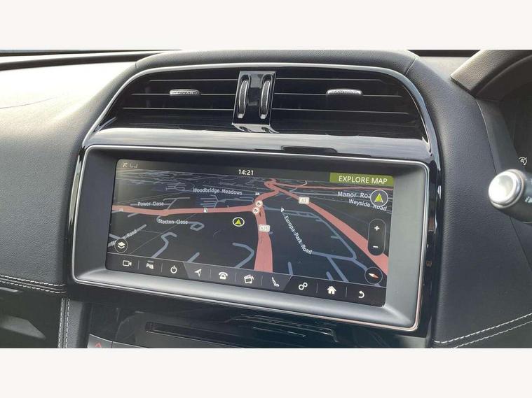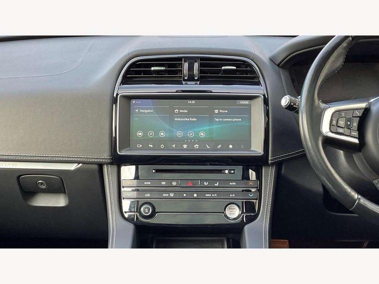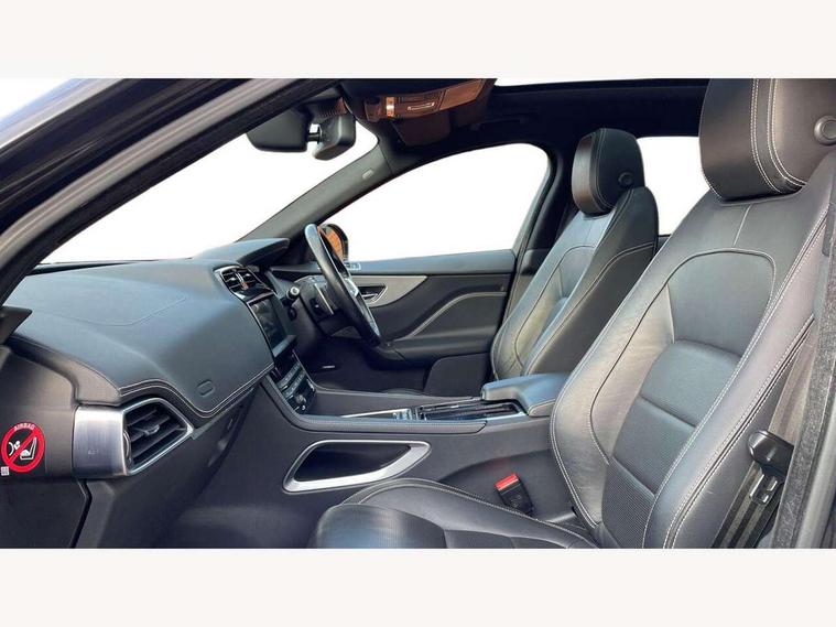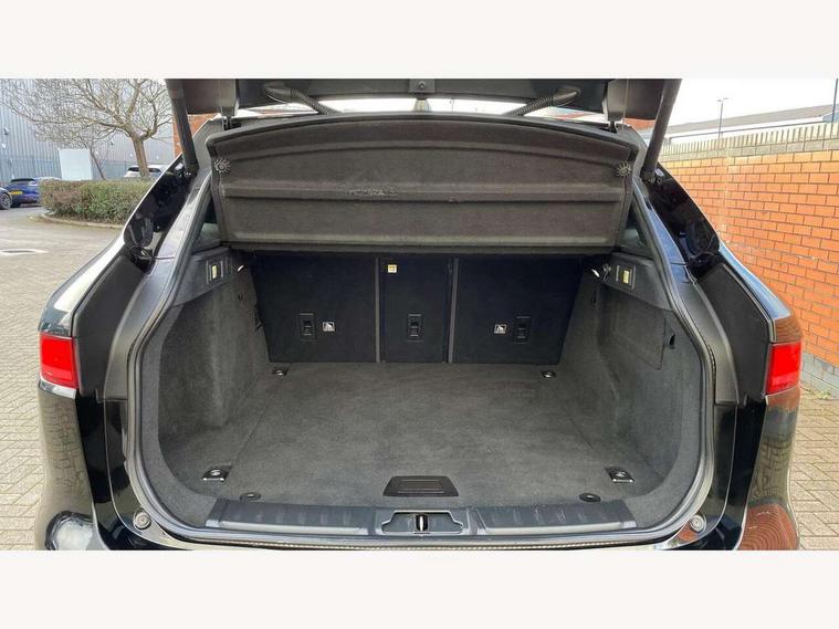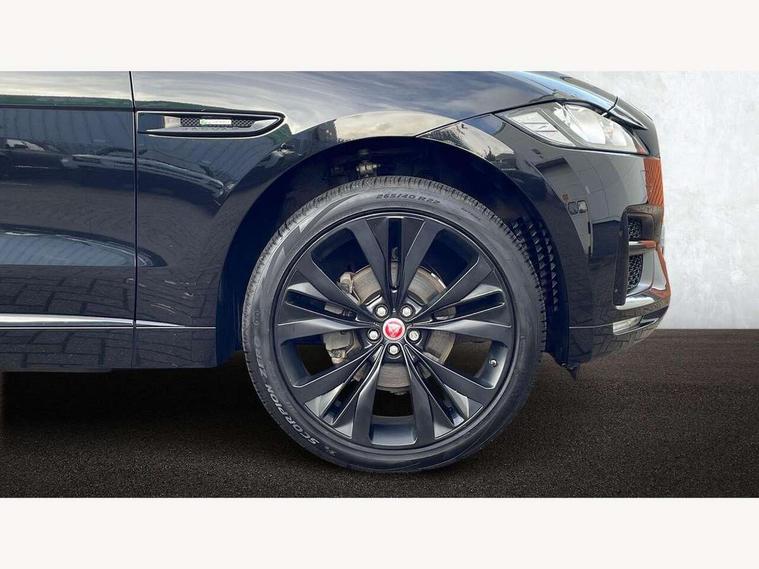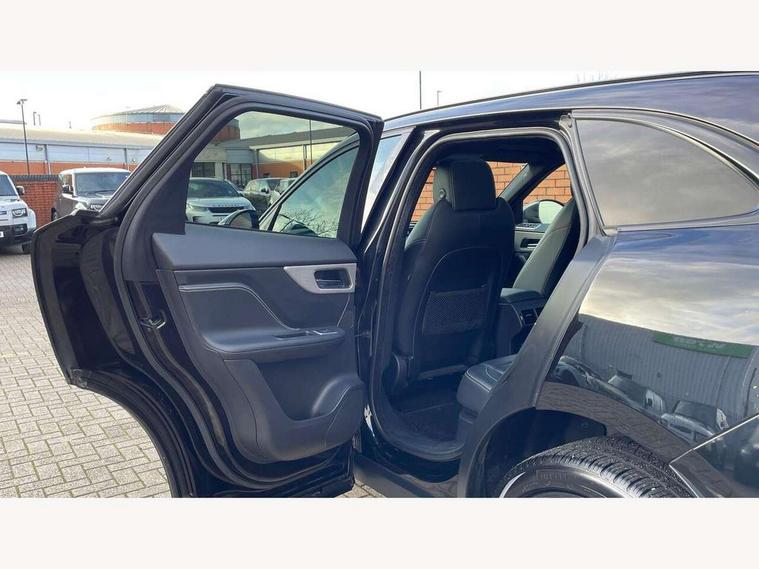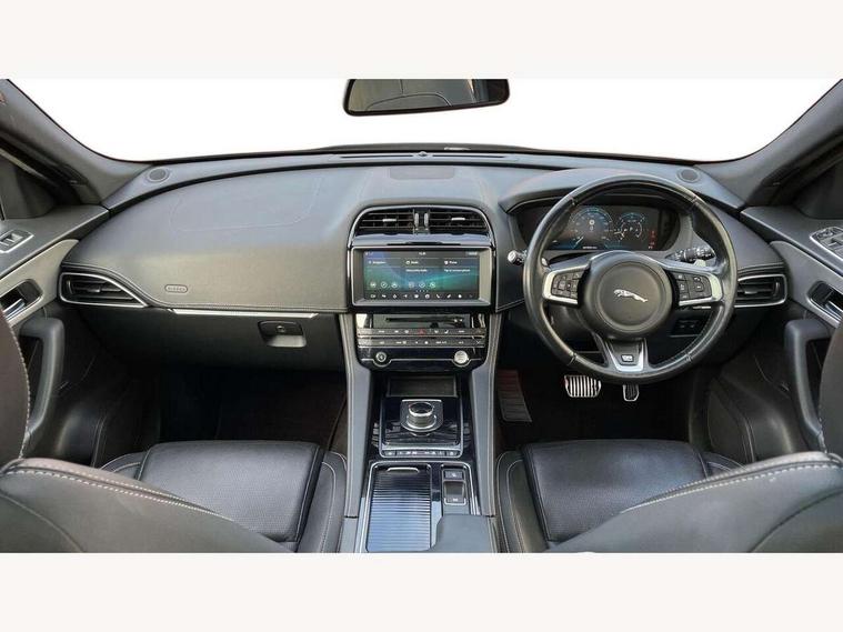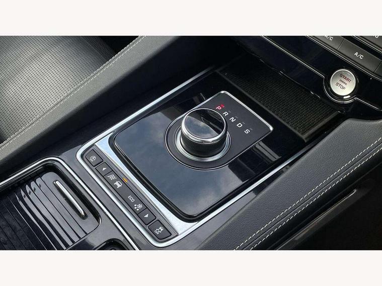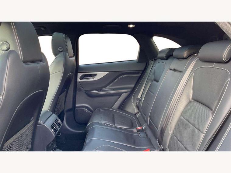 Auto speed limiter, Front parking aid, Lane departure warning system, Outside temperature gauge, Push button starter, Rear parking aid, Service interval indicator, Traffic sign recognition, Trip computer, Variable PAS, All terrain progress control, Bluetooth connectivity including audio streaming, DAB Digital radio, Dynamic volume control, InControl app, InControl protect, Approach Illumination, Auto dimming rear view mirror, Automatic headlights, Body colour bumpers, Body colour door mirrors, Electric front/rear windows with one touch/auto up/down, Front fog lights, Green tinted heat insulating glass, Headlight washers, Heated rear window with timer, LED tail lights, R-sport body kit, Rain sensor windscreen wipers, Rear wiper, Trailer stability assist, Variable front intermittent wipers, 12V power point front, 12V power point in luggage area, 2nd row air vents, 3 rear headrests, 40:20:40 split folding rear bench seat, Bright metal foot pedals, Centre armrest console, Fold flat front seats, Front centre armrest with storage compartment, Illuminated glovebox, Illuminated luggage compartment, ISOFIX on outer rear seats, Jaguar sense, JaguarDrive selector, Leather steering wheel, Multifunction steering wheel, Perforated grained leather upholstery with contrast stitching, Rear armrest with 2 cupholders, Satin chrome gearshift paddles, Shopping hook in boot, Sunvisors with illuminated vanity mirrors, Tie down hooks in luggage area, Twin front covered cupholders, 3x3 point rear seatbelts, ABS, Anti-whiplash front headrests, Autonomous emergency braking (AEB) with forward facing camera, Brake pad warning light, Driver/Front Passenger airbags, DSC - Dynamic Stability Control, Electronic parking brake, Emergency brake assist, Front and rear curtain airbags, Front and rear seatbelt reminder, Front passenger seat occupancy sensor, Front side airbags, Hill start assist, Power child locks, Torque vectoring brake, Traction control, Tyre pressure monitoring system, Immobiliser, Keyless start, Perimeter alarm, Remote central locking, Valet mode, Luxtec door trim, Luxtec wrapped instrument panel,