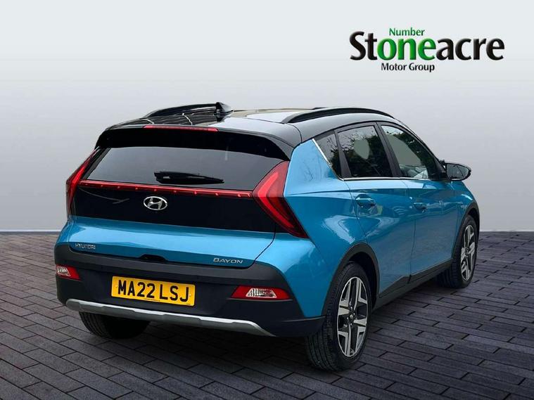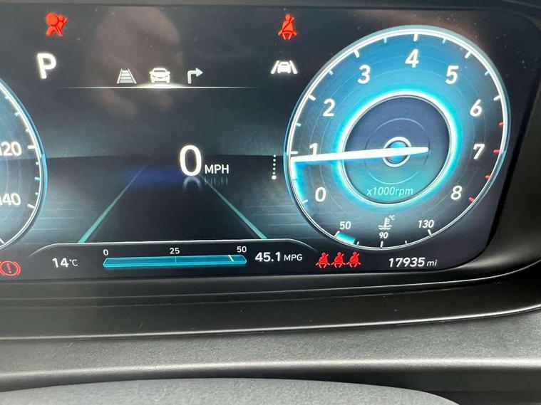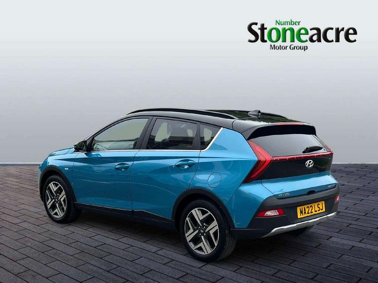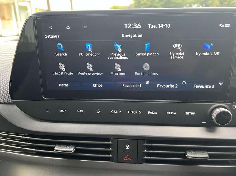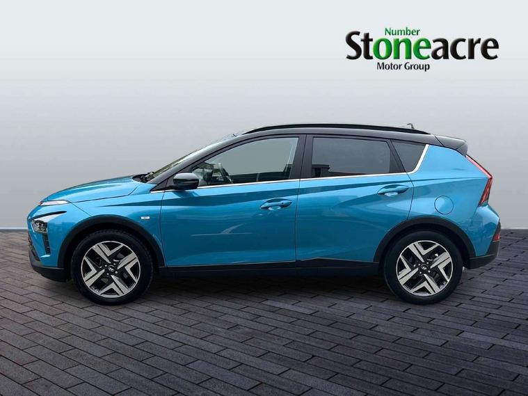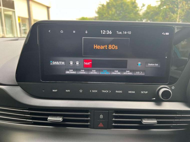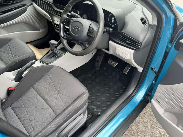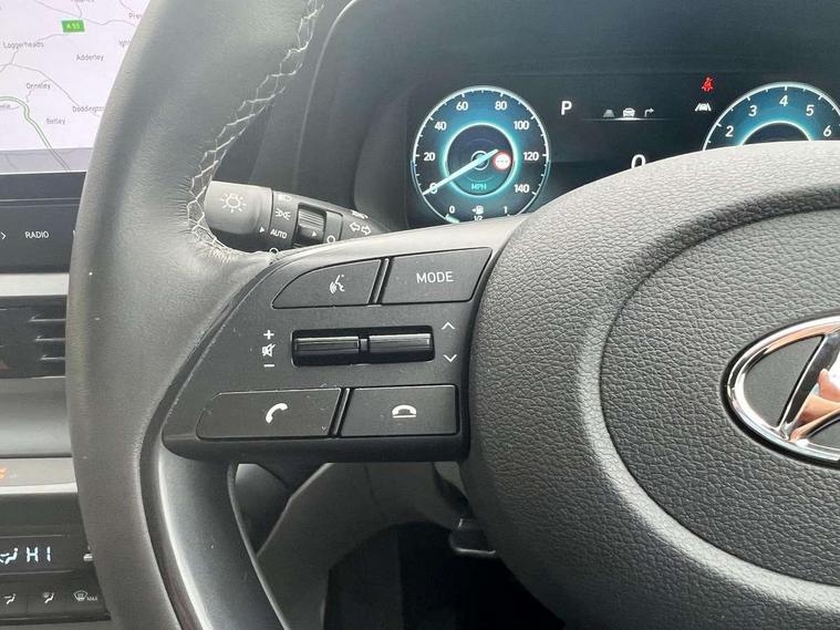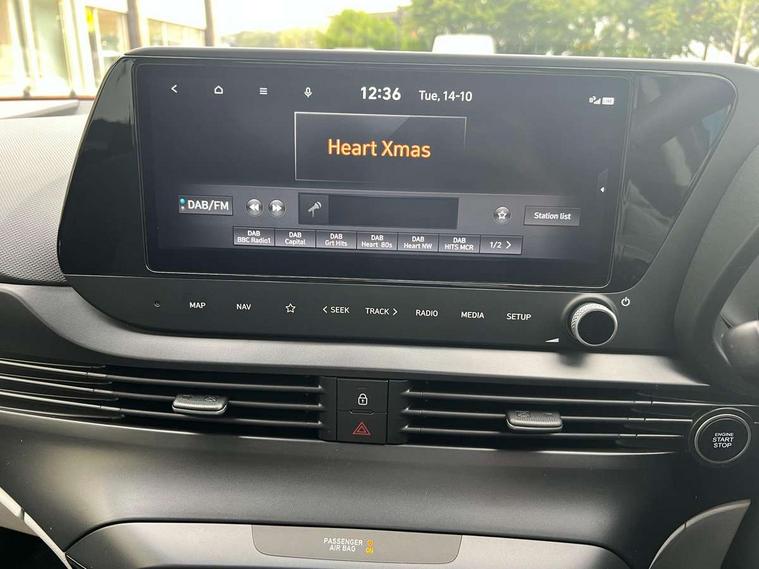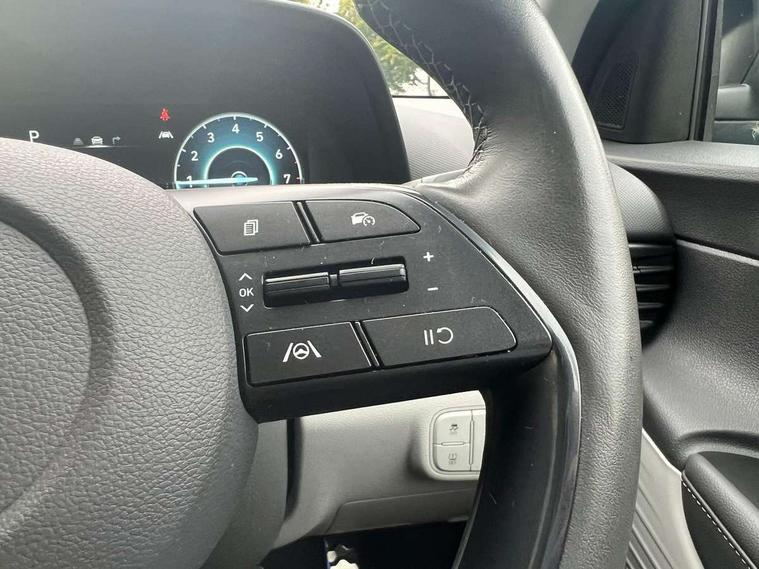 10.25" digital supervision cluster, 10.25" touchscreen centre console display satellite navigation including traffic messaging channel, map care and live services, Blind spot Collision Warning (BCW), Bluelink telematics, Bluetooth connectivity with voice recognition, Cruise control with speed limiter, Drive mode selector, Driver attention alert system, eCall emergency call system, Electric power steering, Emergency stop signalling system, Forward collision assist with pedestrian monitoring and cycle detection, Lane departure warning system with lane keep assist - LKAS, Lane follow assist, Phone connection with apple carPlay and android auto, Rear parking sensors, Rear view camera, Trip computer, Wireless charging pad, BOSE Premium Sound System with Subwoofer, DAB radio, Steering wheel mounted audio/phone controls, USB and aux connection in front, Adjustable intermittent front windscreen wipers with aero wiper blade, Auto dimming rear view mirror, Automatic headlights with dusk sensor, Automatic windscreen wipers with rain sensor, Black two tone roof, Body colour bumpers, Body colour door handles, Chrome finish window surround, Electric adjustable/heated/folding door mirrors, Electric front/rear windows with drivers one touch/anti-trap, Gloss black door mirrors with integrated indicators, Gloss black radiator grille, High beam assist, LED daytime running lights, LED headlamps, LED rear combination lights, Privacy glass - Rear windows and tailgate, Rear roof spoiler with integrated LED brake light, Rear side wing doors, Rear wash/wipe with intermittent wipe setting, Roof rails, Shark fin antenna, Static Cornering lights, Tinted windshield, 12V power outlet in front console, 3 rear seats, 60/40 split folding rear seat, Adjustable head restraints, Automatic climate control with defog system for front windscreen, Blue interior mood lighting, Cabin and luggage compartment interior lighting, Cloth seat trim, Driver's seat manual height adjustment, Front armrest/storage, Heated front seats, Heated steering wheel, Height/reach adjustable steering column, Illuminated driver/passenger vanity mirror, Interior front map reading light, Leather wrapped gear shift knob, Leather wrapped steering wheel, Luggage board, Satin chrome interior door handles, Single front passenger seat, 3 point front seatbelts with pre-tensioners, 3 point rear seatbelts, Airbags - front, front side and curtain airbags, Anti-lock braking system (ABS), Autonomous emergency braking, Childproof rear door locks, Electronic Stability Programme (ESP), Front and rear seatbelt reminder, Front passenger airbag deactivation switch, Height adjustable front seatbelts, Hill start assist control (HAC), Impact sensing auto door unlocking, Isofix child seat anchorage points - rear, Tyre pressure monitoring system, Vehicle stability management, Deadlocks, Immobiliser, Locking wheel nuts, Perimeter alarm, Remote control central locking, Smart key with keyless entry and engine start/stop button, Speed sensitive automatic door locking, Black/grey interior trim, 17" Alloy wheels, Michelin Tyre brand, Tyre repair kit,