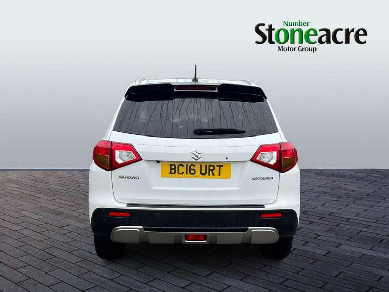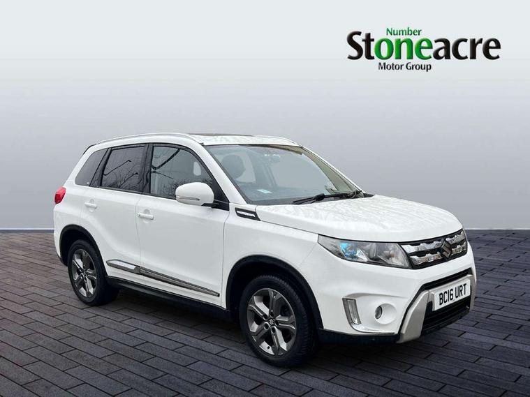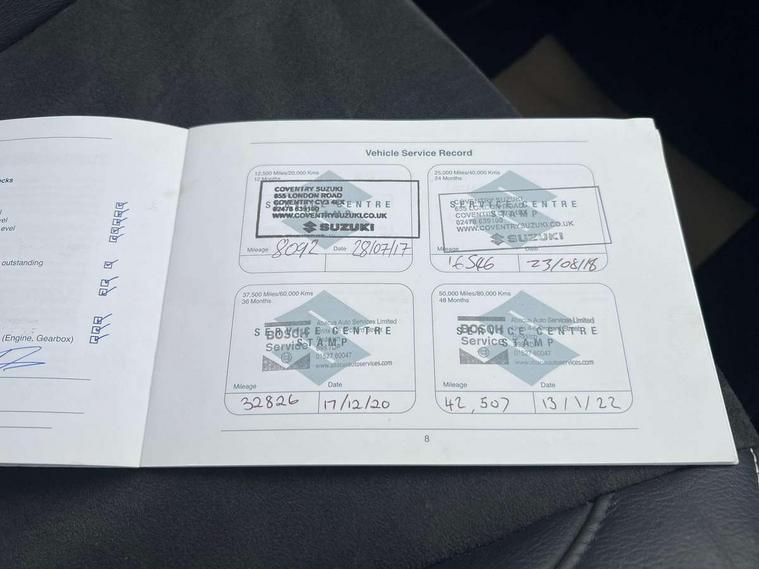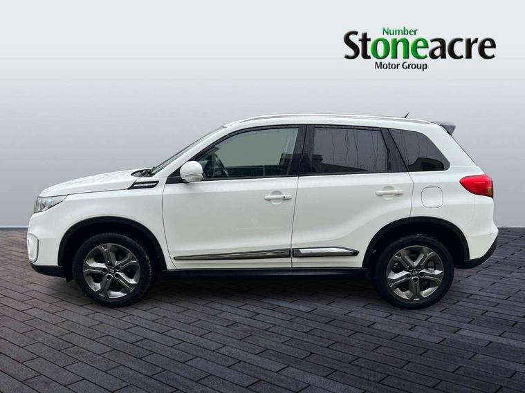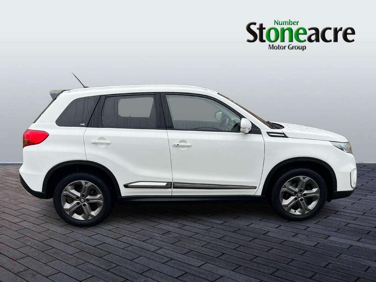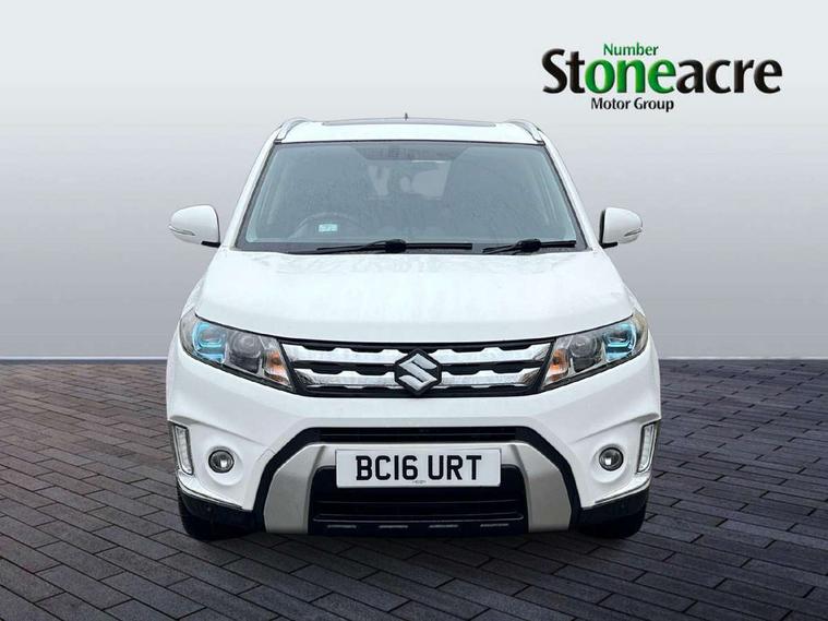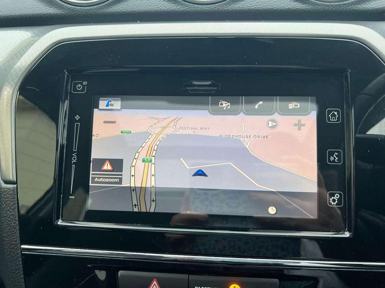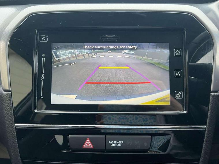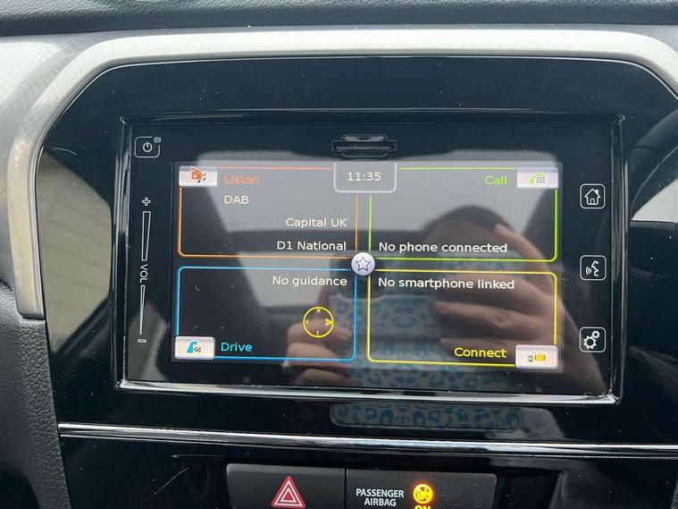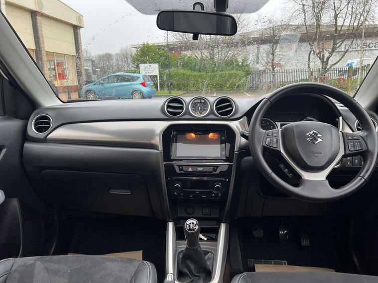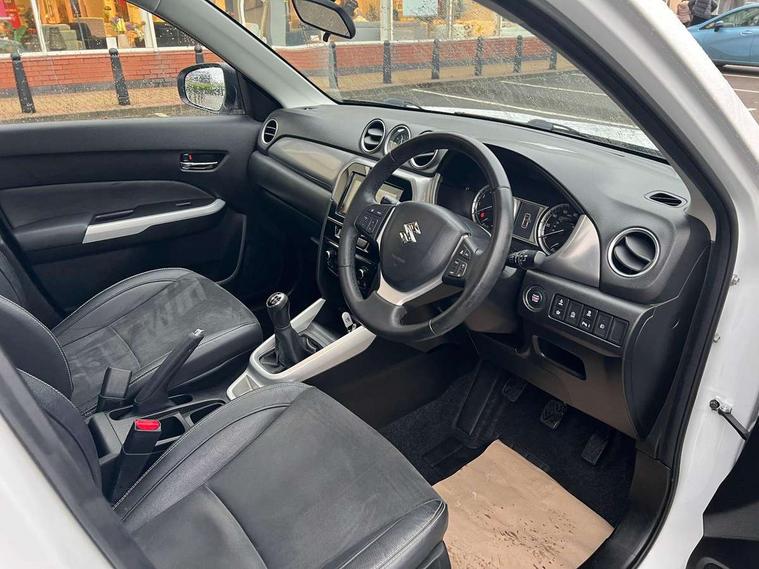 Adaptive cruise control, Analogue clock, Bluetooth hands free telephone connection, Front and rear parking sensors, Information display, Lights on warning, PAS, Rear parking camera, Satellite navigation system, Service indicator, Speed limiter, 2 Tweeters, 4 speakers, DAB Digital radio, Steering wheel mounted audio controls, USB connection, Adaptive brake lights, Automatic headlamp levelling, Automatic headlights, Body colour door mirrors and handles, Body coloured bumpers, Electric adjustable heated door mirrors, Electric folding door mirrors, Electric front+rear windows, Front and rear intermittent wipers, Front fog lamps, Front skid plate - silver, LED daytime running lights, LED Headlights, Panoramic sliding sunroof, Rain sensing front wipers, Rear privacy glass, Rear skid plate - silver, Silver roof rails, Wheel arch extensions, 12V socket in centre console and luggage area, 3 rear headrests, 3 spoke leather covered steering wheel, 60/40 split folding rear seat, Automatic air conditioning, Centre console storage, Child seat tether anchorage points x3, Chrome interior door handles, Driver/front passenger seat height adjustment, Driver/passenger sunvisors with ticket holders + illuminated vanity mirrors, Front and rear bottle holders, Front cupholders x 2, Front footwell lights, Front headrests, Front map light, Front/rear assist grips, Glovebox light, Isofix child seat preparation, Leather/suede upholstery, Luggage area lamp, Luggage cover, Luggage hooks, Passenger seat back pocket, Pollen filter, Removable boot floor, Tilt/telescopic adjustable steering wheel, Top tether anchor plate for isofix child seat, Rugged pack - Vitara, 3 point ELR front seat belts, 3 point rear seatbelts, ABS+EBD+Brake assist, Childproof rear door locks, Curtain airbags, Driver/Front Passenger airbags, Drivers knee airbag, ESP, Front and rear seatbelt reminder, Front passenger airbag deactivation, Front seatbelt pretensioners with force limiters, Height adjustable front seatbelts, Hill hold control, Radar brake support system, Side airbags, Tyre pressure monitor, Alarm, Deadlocks, Immobiliser, Keyless entry and start, Light - on and Key in reminder, Locking wheel nuts, Remote central door locking, 17" Polished alloy wheels, Tyre repair kit,