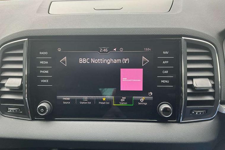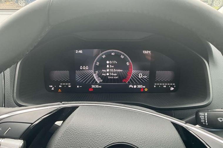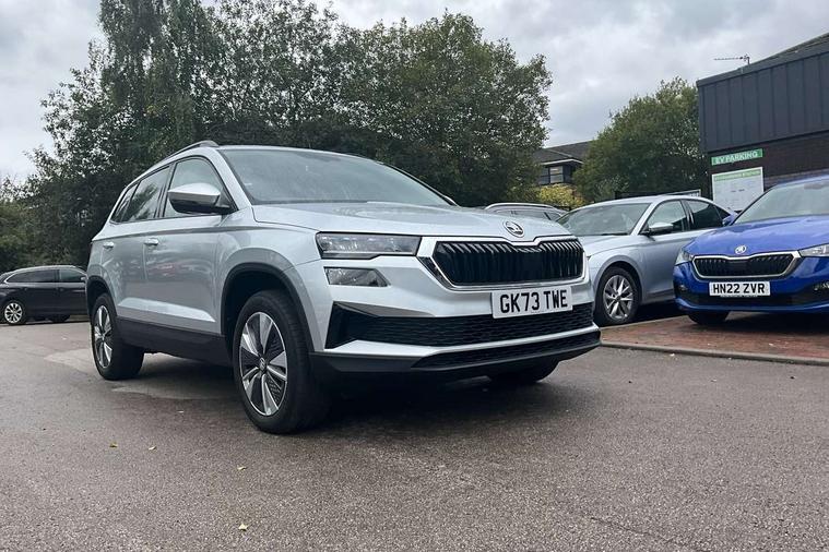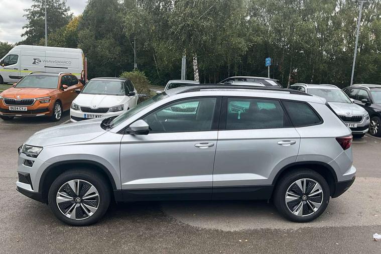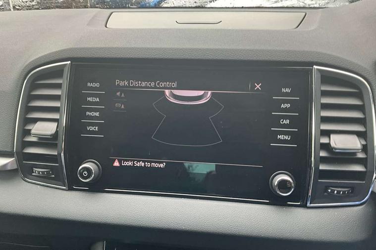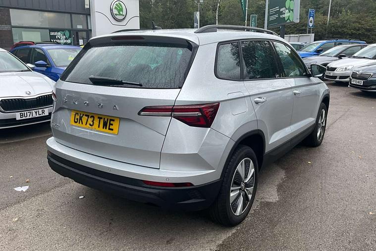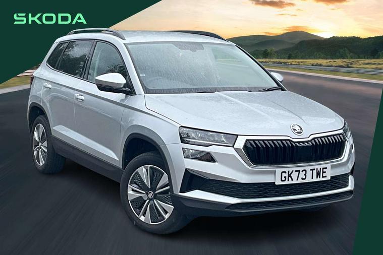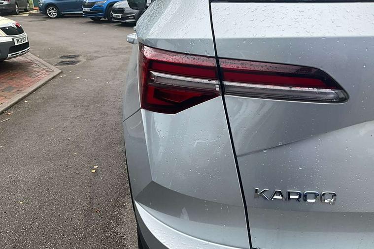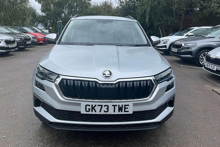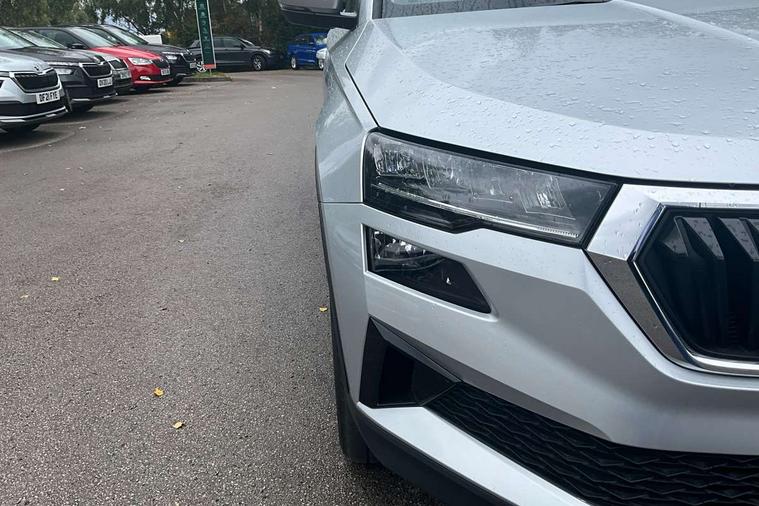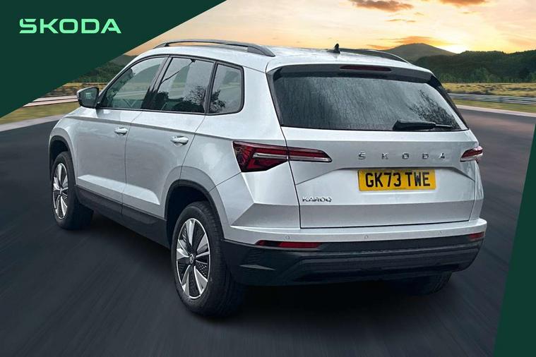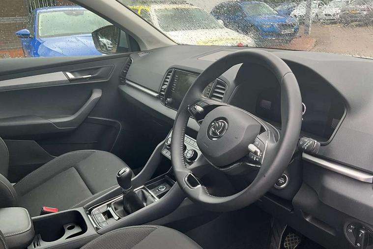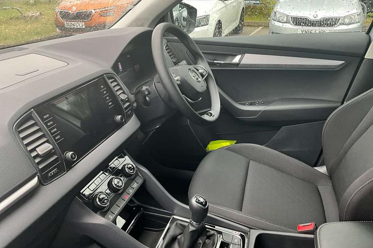 8" Digital display, Amundsen satellite navigation with 8" touchscreen display with maps Europe, WLAN and web radio, Care connect, Driver fatigue sensor, Electro-mechanical PAS, Emergency services call system, Outside temperature gauge, Service interval indicator, SmartLink wireless for Apple and wired for Android, Start/stop system with regenerative braking, USB C Port x 2 in front centre console, 8 speakers, DAB radio with Bluetooth, USB connection, Acoustic glass, Aero front windscreen wipers with intermittent function, Auto dimming rear view mirror with light and rain sensors, Black electric window control buttons, Body colour door mirrors and handles, Dynamic headlight range control with cornering light function, Electric front and rear windows with child proof lock, Electrically adjustable heated folding and auto dimming door mirrors, Front fog lights, Heated rear windscreen, LED daytime running lights, LED Headlights, LED rear lights with high functionality welcome effect and dynamic indicators, Light assistant (coming/leaving home/tunnel light), Plastic scuff plates, Privacy glass, Rear side wing doors, Rear window wiper with washer system and intermittent control, Safety reflectors on front doors, Third brake light, 1.5 litre bottle holders in driver and front passenger door panels, 12V socket in boot, 12v socket in front centre armrest with storage compartment and rear air vents, 2 x Tablet holder, 3 rear height adjustable headrests, 3 seat bench in 2nd row, 4 foldable roof handles with rear coat hooks, Black floor carpet, Chrome inner door handles, Double sided boot floor, Driver/front passenger reading lights, Foldable hooks in the boot, Folding tables on the front seat backrests, Front head restraints, Height adjustable driver and passenger seat, Height adjustable front three point seats belts with tensioners, Height/reach adjust steering wheel, Ice scraper, Illuminated glovebox, Illuminated luggage compartment, Isofix child seat preparation for front passenger seat, Isofix child seat preparation outer rear, Manual lumbar support for front seats, Pearl grey interior ceiling, Pen holder, Pollen filter, Rear boot cover, Rear reading lights, Rubbish bin door, Safety vest holder, Single front passenger seat, Storage box in upper central dashboard closed, Sunvisors with illuminated vanity mirrors, Textile floor mats, Ticket holder, Tool kit, Umbrella under passenger seat, Boot pack - Karoq, Automatic door unlocking in case of crash, Automatic fuel cut off in case of crash, Child locks on rear doors, Driver airbag, Electronic parking brake with auto hold function, Emergency rear braking signal, ESC including ABS, MSR, ASR, EDS, HBA, DSR, RBS, MKB and traction control, Front side airbags, Hill hold control, Knee airbags, Passenger airbag with switch-off function, Pedestrian monitor, Seatbelt reminder signalisation and pretensioner for all seats, Three point seatbelts rear, Two tone horn, Tyre pressure display, Tyre pressure monitor, Alarm with interior monitoring, back up horn and tilt sensor with safe function, Electronic engine immobiliser, Remote central locking with 2 remote folding keys, Black centre console, Chrome framed air vents, Satin black dashboard, Satin black door trim, Anti-theft wheel bolts protection, Storage on wheel cover,