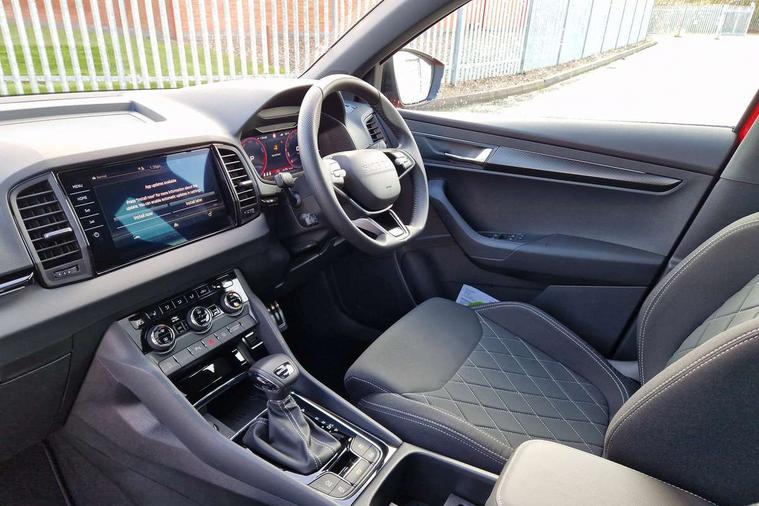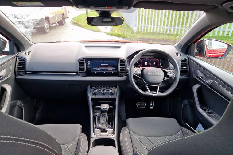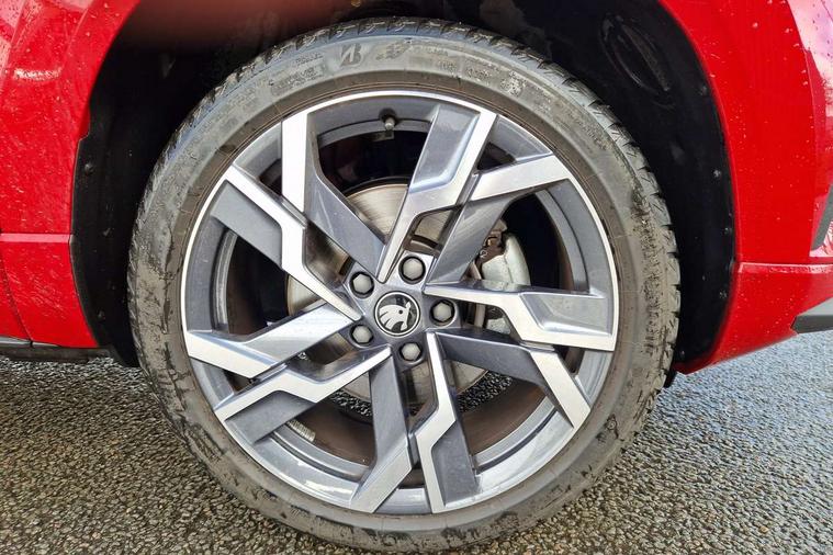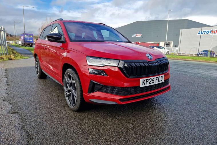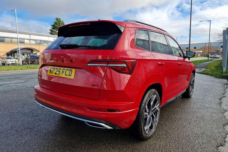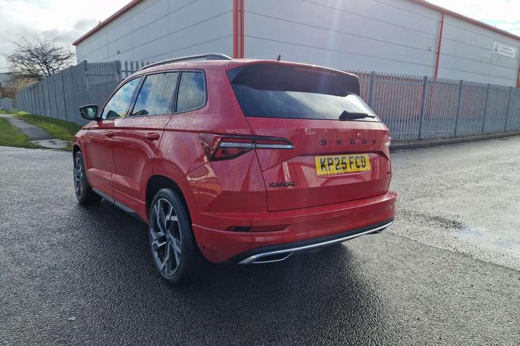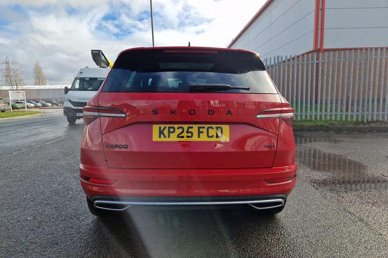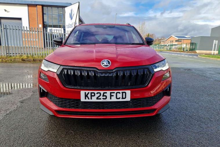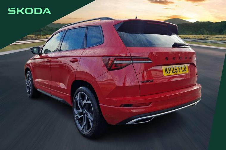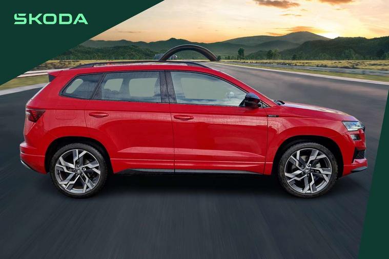 Advanced driver attention and drowsiness monitor, Emergency services call system, Outside temperature gauge, Sensor for driver assistance systems, Service interval indicator, SmartLink wireless for Apple and wired for Android, Start/stop system with regenerative braking, Traffic sign recognition, USB C Port x 2 in front centre console, Virtual Cockpit - 10.25" digital display, Virtual pedal with electrically operated boot door, Wireless smartphone charging, DAB radio with Bluetooth, USB connection, Acoustic glass, Aero front windscreen wipers with intermittent function, Auto dimming rear view mirror with light and rain sensors, Black door mirrors, Black electric window control buttons, Black radiator grille, Black roof rails, Body colour door handles, Electric front and rear windows with child proof lock, Extended rear roof spoiler, Front door steps with SportLine logo, Heated rear windscreen, LED daytime running lights, LED rear lights with high functionality welcome effect and dynamic indicators, Light assistant (coming/leaving home/tunnel light), Panoramic sliding sunroof, Plastic scuff plates in door apertures, Privacy glass, Protective door side sills in body colour, Rear diffuser, Rear side wing doors, Rear window wiper with washer system and intermittent control, Safety reflectors on front doors, Skoda lettering on tailgate in black, Sportline badge on front fender, Sports front and rear bumpers, Third brake light, Unique dark chrome design logo on alloy wheels, 1.5 litre bottle holders in driver and front passenger door panels, 12V socket in boot, 12v socket in front centre armrest with storage compartment and rear air vents, 2 x Tablet holder, 3 rear height adjustable headrests, 3 seat bench in 2nd row, 3 spoke sports leather heated multifunction steering wheel with DSG paddles, 4 foldable roof handles with rear coat hooks, Black floor carpet, Cargo elements in boot, Chrome inner door handles, Foldable hooks in the boot, Front head restraints, Height adjustable front three point seats belts with tensioners, Height/reach adjust steering wheel, Ice scraper, Illuminated glovebox, Illuminated luggage compartment, Isofix child seat preparation for front passenger seat, Isofix child seat preparation outer rear, Manual lumbar support for front seats, Pen holder, Pollen filter, Rear backrest release from boot, Rear boot cover, Rear package tray, Rear reading lights, Rear seats fixed folding and divided 60:40, Rubbish bin door, Safety vest holder, Single front passenger seat, Skoda lettering on steering wheel, Sportline decorative inserts, Storage box in upper central dashboard closed, Sunvisors with illuminated vanity mirrors, Textile floor mats, Ticket holder, Titan black interior ceiling, Umbrella under passenger seat, Under passenger seat storage compartment, Columbus pack - Karoq, LED Interior lighting pack with Skoda welcome logo - Karoq, Light Pack - Karoq, Non Smokers pack, Performance pack - Karoq 4x4, Winter plus pack with heated front and rear seats - Karoq, Automatic door unlocking in case of crash, Automatic fuel cut off in case of crash, Driver airbag, Electronic parking brake with auto hold function, Emergency rear braking signal, ESC (incl. ABS+MSR+ASR+EDS+HBA+DSR+RBS+MKB), Front side airbags, Head airbags, Hill hold control, Knee airbags, Passenger airbag with switch-off function, Pedestrian monitor, Seatbelt reminder signalisation and pretensioner for all seats, Three point seatbelts rear, Two tone horn, Tyre pressure monitor, Alarm with interior monitoring, back up horn and tilt sensor with safe function, Electronic engine immobiliser, Keyless entry and start/stop, Remote central locking with 2 remote folding keys, Black air vent surround, Black centre console, carbon door decor, Satin black dashboard, Satin black door trim, 19" Sagittarius anthracite alloy wheels, Anti-theft wheel bolts protection, Breakdown and tool kit,