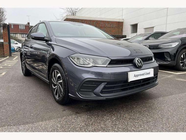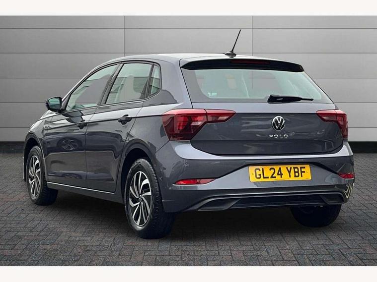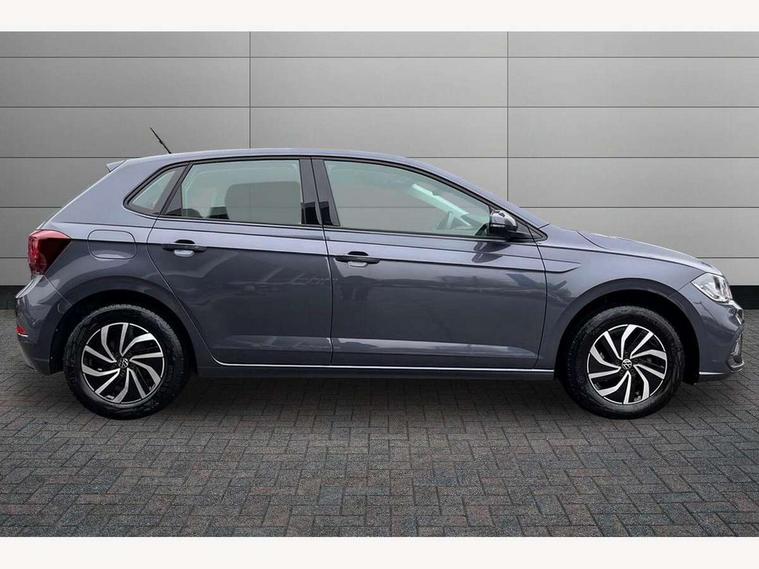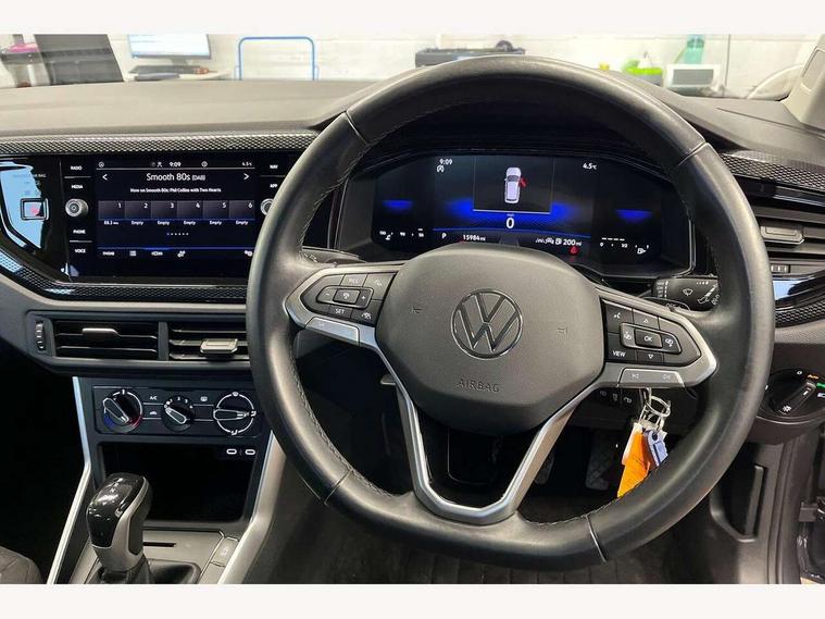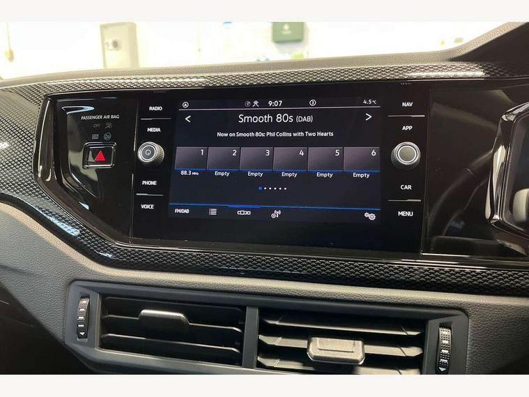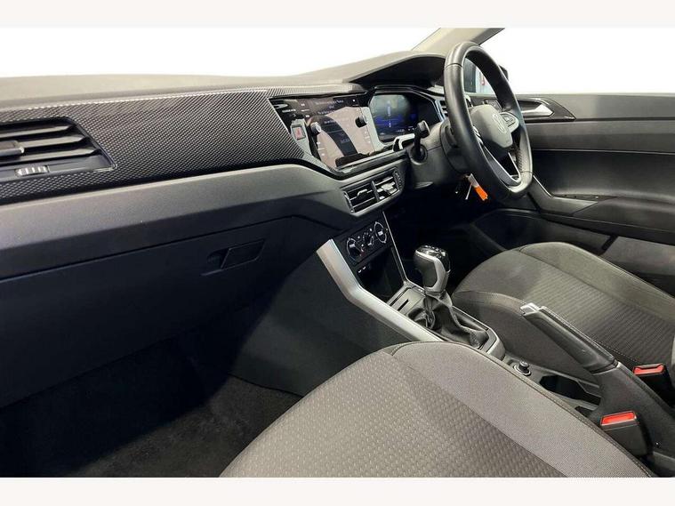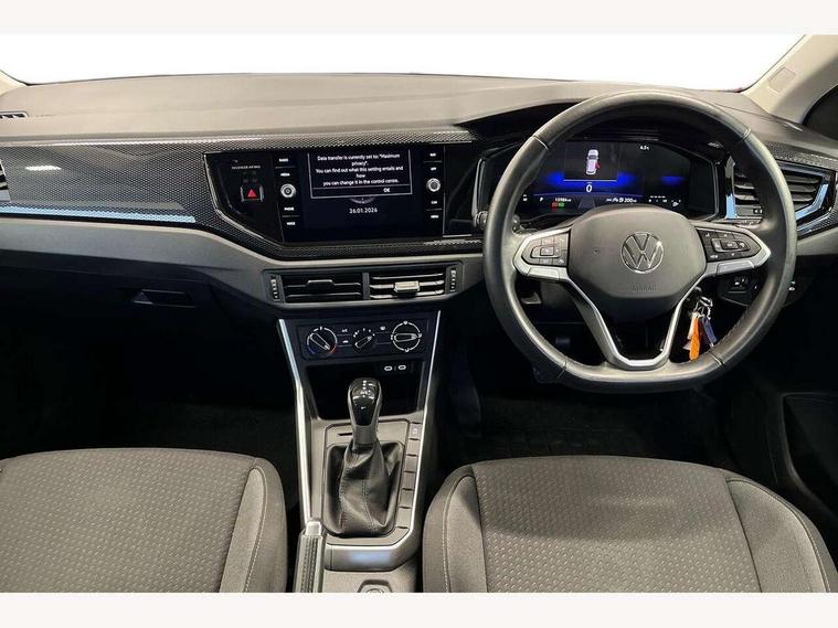 Adaptive cruise control with follow-to-stop and speed limiter, Advanced driver attention and drowsiness monitor, Bluetooth mobile phone interface, Dynamic road sign display, Emergency call service, Power assisted speed sensitive steering, Preparation for navigation system with media and internet package, Preparation for We connect and We connect plus, Speedo and rev counter, electronic odometer, trip, service interval display and exterior temperature gauge, Standard rear axle, Travel Assist - Lane keeping system and traffic jam assist, Travel assist including emergency assist, Trip computer, Warning signal and warning light for front and rear seatbelts not fastened, Washer fluid level indicator, Wireless app connect, Front wheel drive, Rear shock absorpion, Start-stop system with battery regeneration (recuperation - energy recovery during braking), DAB Digital radio, Diversity antenna for FM reception, Automatic dimming interior rear view mirror, Automatic headlight control with LED separate daytime running lights with coming/leaving home function, Body colour bumpers with chrome inserts, Body colour door handles, Body colour door mirrors, Electric front windows, Engine badge deletion, Headlight range adjustment, Heat insulating and laminated safety glass windshield, Heat insulating darkened glass in side and rear windows, Heat insulating glass windscreen, LED Headlights, LED rear combination lamps, Power folding adjustable/heated exterior mirrors and front passenger exterior mirror lowering function, Rain sensor, Rear electric windows, Rear fog light, Rear side wing doors, Rear windscreen washer and wiper with interval delay, Third brake light, 12V power socket in centre console, 2 front and 2 rear reading lights with switch off delay and dimmer, 2 USB-C ports in the front, 2 USB-C charging sockets on the center console in the rear, 3 rear head restraints, 60/40 split folding rear seat and rear seat bench not split, Ceramique roof lining, Chrome plated radiator grille inserts, air vent surrounds and light switch surrounds, Door and side trim panel, Driver and front passenger seat height adjustment, Driver/passenger sunvisors with illuminated vanity mirrors, Front centre armrest, Front seat backrest storage pockets, Front standard seats, Handbrake lever handle in leather, Hartley/Thomas cloth upholstery, Headliner in recycled material, Isofix child seat preparation easy-fit (for two outer rear seats, and front passenger seat) compatible with I-size, Leather trimmed gear knob, Luggage compartment cover, Luggage compartment lighting, Removable luggage compartment floor, Single front passenger seat, Standard climatic zones, Standard pedal cluster, Three spoke leather wrapped multifunction steering wheel with shifting paddles, Light and vision pack - Polo, 3 point height adj front seatbelts + pretensioners, 3x3 point rear seatbelts, ABS, Driver and front passenger airbag with front passenger airbag deactivation, Drivers and front passengers safety optimised head restraints, ESC (Electronic stability control) + EDL (Electronic Differntial lock) and ASR (Traction control), Extended and predictive pedestrian/ cyclist protection, Front assist with autonomous emergency braking (for Adaptive Cruise Control ACC up to 130 mph), Front curtain and side airbags with center airbag, Front disc brakes, Hill hold control, Manual child lock in rear doors, Rear drum brakes, Single tone horn, Tyre pressure loss indicator, Alarm with interior protection, Anti-theft alarm system with interior monitoring, backup horn, and towing protection, Anti-theft wheel bolts, Electronic engine immobiliser, Lava stone black gloss/matt decorative inserts in dash and front door panels, Low rolling resistance tyres,