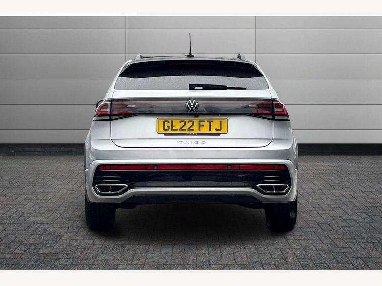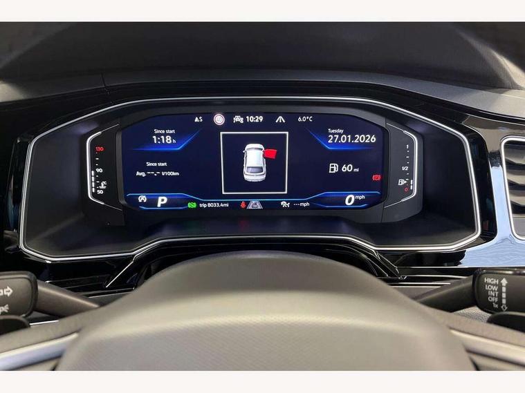 Adaptive cruise control, App-Connect including App-Connect Wireless, Digital cockpit pro - 10.25" high resolution TFT dash display screen with customizable menus and information, Driver alert system, Driving profile selection, e-Call (emergency call), Power Steering, Travel assist including emergency assist, Washer fluid level indicator, Wireless Charging including Bluetooth, Start-stop system with battery regeneration (recuperation - energy recovery during braking), XDS electronic differential lock for improved traction and handling, Digital radio reception (DAB+), Diversity antenna for FM reception, WeConnect plus, Ambient lighting with logo projection, Aspherical driver's exterior mirror, Auto headlights, Body coloured bumpers, Body coloured exterior mirror housings and door handles, Bumpers in R-Line style, Electric windows, External USB type C socket and charging sockets, Front fog lamps with cornering function, Front scuff plates with R-Line logo, Headlight range control, LED headlamps, LED rear combination lamp, LED third brake light, Left convex exterior mirror, Power folding adjustable/heated exterior mirrors and front passenger exterior mirror lowering function, Rear fog light on one side, reversing light on both sides, Rear side wing doors, Rear wash/wipe with intermittent wipe setting, 12V socket in centre console, 2 front reading lights, 3 rear head restraints, 3 seat bench in 2nd row, Air care climatronic air conditoning system with active combination filter and 2-zone temperature control, Black carpets, Black roof lining, Child seat anchor for child seat system i-Size, 2x top tether and child seat anchor in front on front passenger side, Chrome bezel for instrument cluster, vents, door handles + gear shift, Driver and front passenger seat height adjustment, Front + rear carpet mats, Front centre armrest, Front footwell illumination, Front sports comfort seats, Height and reach adjustable steering wheel, Interior ambient lighting and surround lighting, Karoso artvelours cloth upholstery, Leather trimmed gear knob, Leather wrapped multifunction steering wheel, Luggage compartment floor, Luggage compartment light, Lumbar support for driver's and front passengers seat, Seat covers in grey + titanium black, Single front passenger seat, Split folding backrest with centre armrest and unsplit rear seat bench, Stainless steel pedals, Storage compartment under front seats, Sun visors with illuminated vanity mirrors, Chrome Package - Taigo, Drivers assistance pack - Taigo, Light and Sight pack including High beam assist - Taigo, 2 x 3-point seatbelts/outer rear seats with ECE label, 3-point seat belts in front with pretensioner and height adjustment, 3-point seatbelt for centre rear seat, Driver and front passenger airbags with front passenger airbag de-activation, front side and curtain airbags, Driver and front passenger safety-optimised head restraints, Electronic stability control, Extended and predictive pedestrian/ cyclist protection, Front and rear disc brakes, Front curtain and side airbags with center airbag, Hill start assist, Manual rear child locks, Single tone horn, Tyre pressure loss indicator, Anti-theft alarm system with interior monitoring, backup horn, and towing protection, Anti-theft wheel bolts, Grey anodised matte decorative inserts in dash and front door panels, Low rolling resistance tyres,