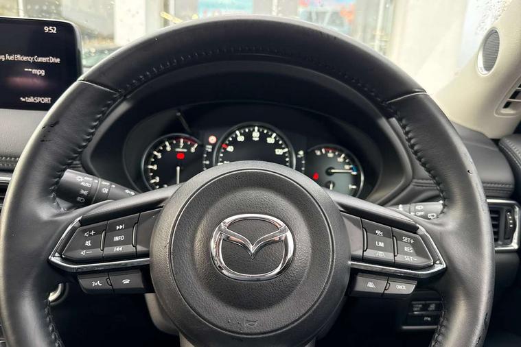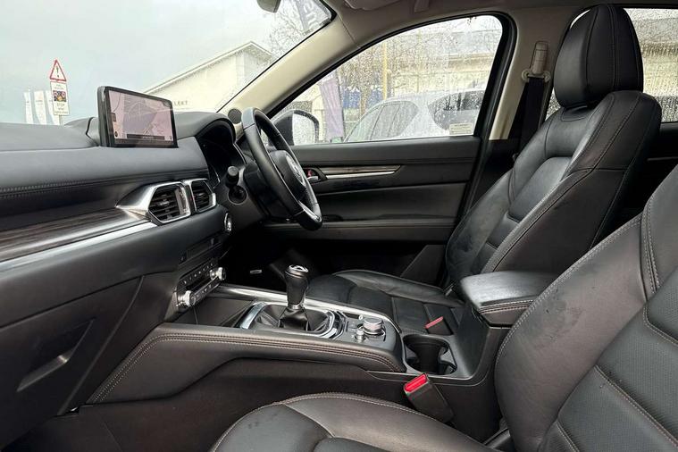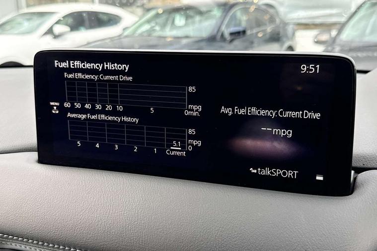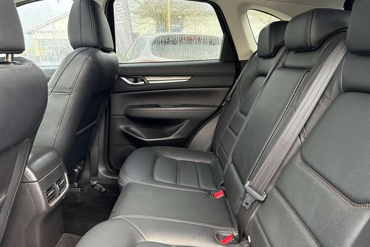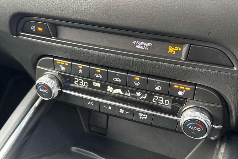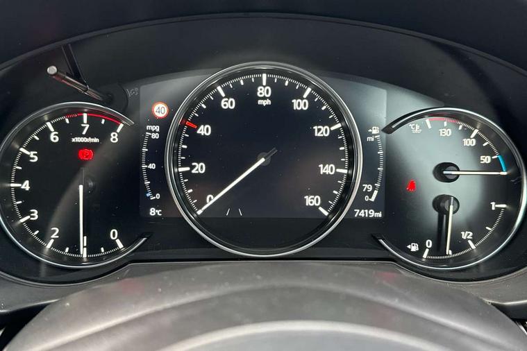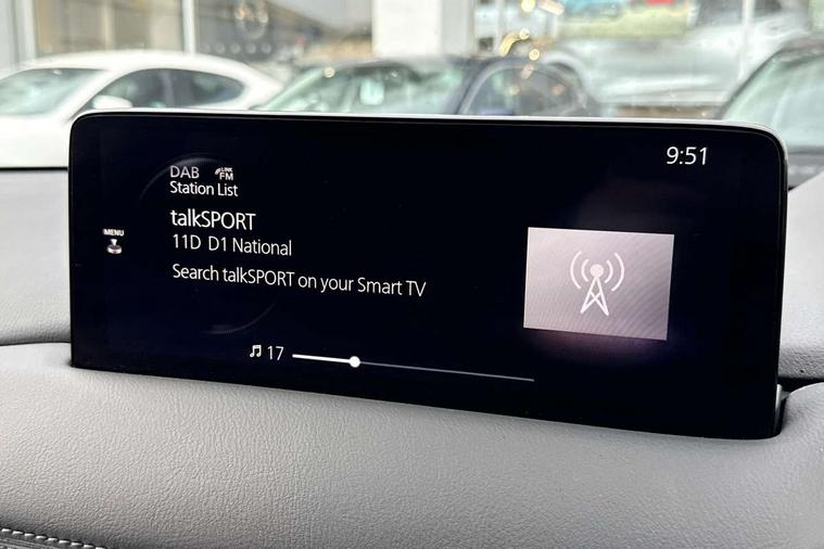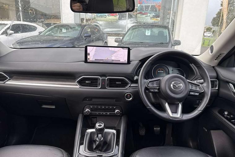 10.25" display with Mazda Connect infotainment, 7" colour TFT display, Advanced blind spot monitoring, Bluetooth connectivity with voice control, Collision prevention assist, Connected services, Cruising Traffic Support, Electric power steering, Emergency stop signalling system, Engine start/stop button, Forward collision warning, Front and rear parking sensors, Integrated navigation system, Intelligent speed assist, Lane departure warning system, Lane keep assist, Power liftgate, Qi wireless phone charging, Radar cruise control, Rear cross traffic alert, Reversing camera, Service indicator, Traffic sign recognition (TSR), Trip computer, Windscreen projected colour active driving display (HUD) with memory, Wireless apple car play/android Auto, Cylinder Deactivation, i-stop, AM/FM radio, Bluetooth audio streaming, Bose premium sound system with 10 speakers, DAB Digital radio, Multimedia Commander including separate volume dial, Steering wheel mounted audio controls, Adaptive front lighting system, Auto dimming rear view mirror, Automatic headlights, Black inlay dashboard panel, Body colour door mirrors, Body colour roof spoiler, Body coloured front and rear black lower bumper mouldings, Coming/leaving home lighting function, Door mirror integrated indicators, Dual chrome tailpipes, Electric front/rear windows with one touch auto up/down, Front grille in gloss black finish with chrome signature wing, Gloss black B and C pillars garnish, High beam assist, Intermittent rear wash/wipe, LED auto levelling, LED daytime running lights, LED front fog lights, LED Headlights, LED third brake light, Power folding and heated door mirrors, Power tilt/slide sunroof, Privacy glass (rear side windows only), Rain sensing front wipers, Rear side wing doors, Satin black side mouldings, Scuff plates, Shark fin antenna, Signature LED rear combination lights, Variable intermittent front wash/wipe, Vinyl with wood grain metal inlay door trim panel, Windscreen wiper de-icer, 12v electrical power outlet, 3 seat bench in 2nd row, 3 stage heated front seats, 40:20:40 Karakuri fold-flat seat system, 6 way electric adjustable passenger seat, 8 way electric driver seat with lumbar support + memory, Cargo room flat floor board with waterproof undertray, Driver seat power slide, recline and height adjustment, Driver, Front passenger and two rear grab handles with coat hooks, Driver/passenger front seatback pockets, Driver/passenger sunvisors + illuminated vanity mirrors (drivers with ticket holder), Dual zone climate control, Folding centre armrest with 2 cup holders, Front and rear door pockets, Front centre storage with two cupholders, Front passenger seat power slide, recline and height adjustment, Gear shift indicator, Heated steering wheel, Humidity sensor, Illuminated glovebox, Interior dome light with integral spotlight, ISOFIX child seat anchorage points attached on outer rear seats, Karakuri tonneau cover, Leather upholstery, Leather wrapped steering wheel and gear knob, Light roof lining, Luggage compartment LED lighting, Luggage compartment power outlet, Rear air vents, Rear headrests, Rear seat recline, Roof mounted sunglasses holder, Single front passenger seat, Three height adjustable head restraints, Tilt/height adjustable steering wheel, USB Connectivity (2x front Type-C, 2x rear Type-B), White interior LED illumination lighting, 3 point front seatbelts with pre-tensioners, 3 rear 3 point seatbelts, ABS, Advanced Smart City Brake Support - SCBS, Child locks on rear doors, Driver and front passenger side airbags, DSTC-Dynamic Stability and Traction Control, Dual front airbags, Electronic brake force distribution, Electronic parking brake with auto hold, ESP, Front and rear curtain airbags, Front passenger airbag deactivation, G-Vectoring control, Hill hold assist, Seatbelt reminder front and rear, Single stage passenger airbags, Smart brake support with forward obstruction warning, Tyre pressure monitoring system, Automatic door locking when moving off, Deadlock, Immobiliser, Power door locks, Remote central locking, Smart keyless entry, Thatcham Cat.1 alarm, 19" diamond cut black alloy wheels, Tyre repair kit,