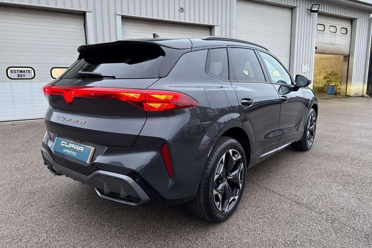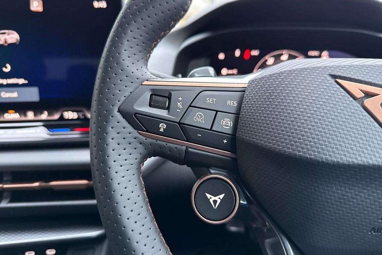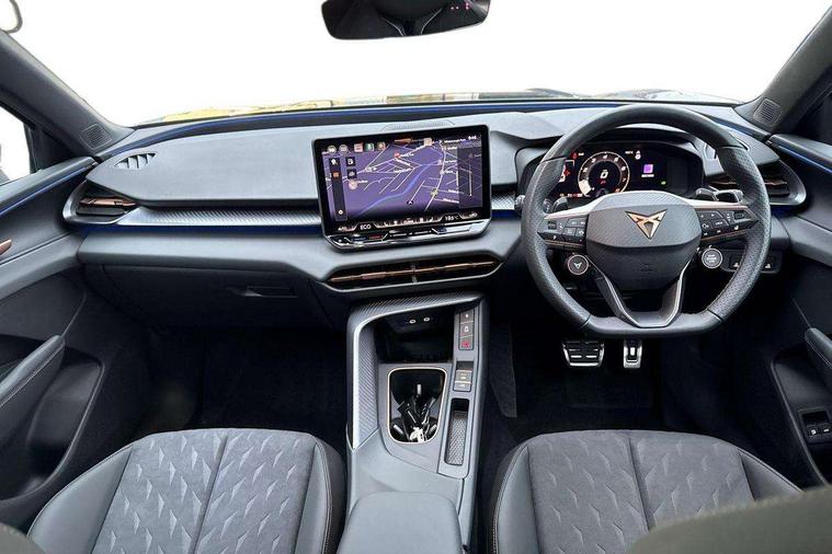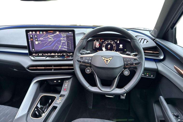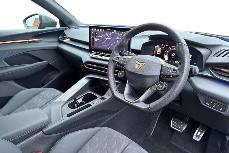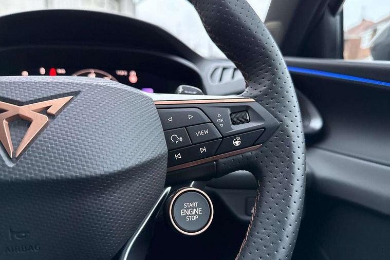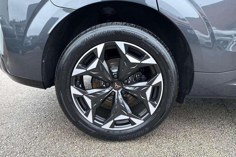 10.25" digital cockpit, Adaptive cruise control with follow-to-stop and speed limiter, Advanced driver alert system, Driving profile selection (DCC- Comfort, performance, CUPRA, Individual, Dynamic road sign display, E-call, Electric tailgate with virtual pedal, Emergency steering support with turn assist, Front and rear parking sensors, Front assist (Forward collision warning with automatic braking) with multifunction camera and front cross traffic assist, Lane assist, Media system with Nav - 12.9" touch display, voice control, full link phone (wired/wireless), DAB and Steering wheel mounted controls, Rear view camera, Speed sensitive power steering, Start/stop system with regenerative braking, Wireless phone charger, 10 amp mode 2 charging cable, 16 amp mode 3 charging cable, Adaptive chassis control with a 2-valve shock absorber, Auto dimming rear view mirror, Black roof rails, CUPRA 3D rear lights with ceremony & swiping indicator and illuminated logo, Dark tinted rear windows, Daytime running lights with automatic headlight control and Coming and Leaving home function, Door mirrors with memory function and lowing function on passenger mirror, Electric front/rear windows, Electrically adjustable, heated and folding door mirrors, Front fog lamps with cornering function, Heat reflecting windscreen, High beam assist, Rain sensing wipers, Rear fog light on one side, back up light on both sides, Rear side wing doors, Rear wash/wipe, Third brake light, Welcome lights (within exterior mirror housing), 3 seat bench in 2nd row, Black roof lining, Cupra sports pedals, Dinamica cloth upholstery, Driver seat memory function, Electrically adjustable front seats including lumbar support, Four x USB Type C ports (2 in front and 2 in rear), Front and rear head restraints, Front and rear reading lights X 4, Front centre armrest, Heated front seats, Heated leather wrapped multi function sports steering wheel with tiptronic, Illuminated interior front door sills, Isofix, Operating voltage 12V, Single front passenger seat, Smart wraparound interior lighting, Sunvisors with illuminated mirror, Three zone climate control with control panel in rear, Unsplit rear seat bench, split folding backrest, with centre armrest, Variable luggage/load compartment floor, Pure performance pack - Terramar, 3 point seatbelts on all rear seats, Brake control system - ESC and brake booster, Child proof door locks, Driver and front passenger airbags, Electronic parking brake, Front and rear disc brakes, Front interaction airbag, Front passenger airbag deactivation switch, Front side airbags with curtain airbags, Tyre pressure monitoring system, Visual and acoustic seat belt reminder, electric contact in front and rear, Anti theft alarm, Keyless locking and starting system with keyless access, Locking wheel bolts, Black decorative trims, Chrome interior detailing, Breakdown kit, Tool kit,