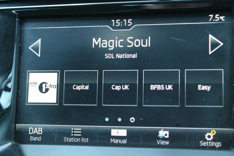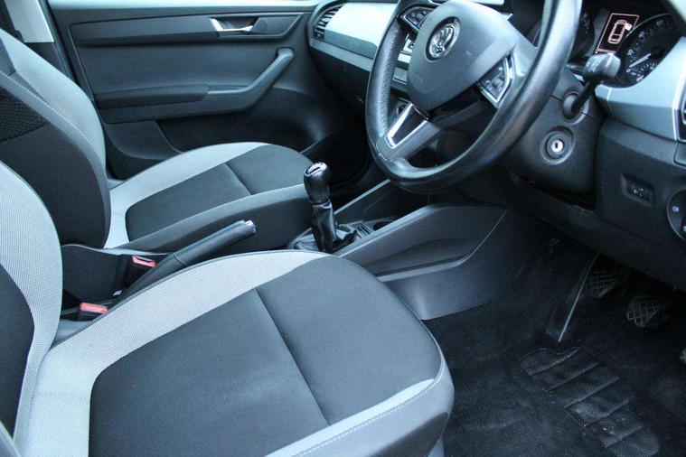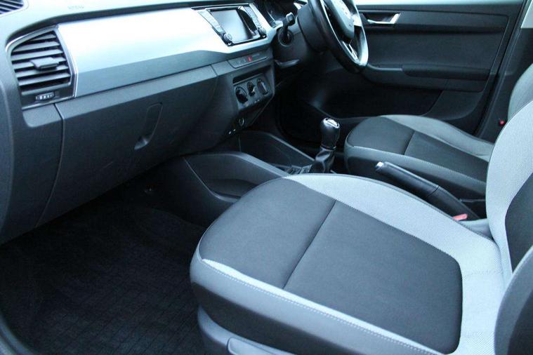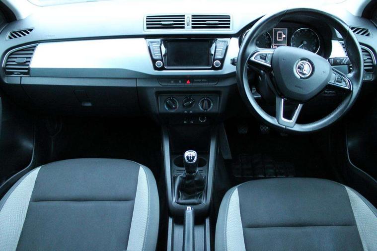 Bluetooth system, Exterior temperature gauge, Front assistant collision mitigation, Multi function trip computer, PAS, Service interval indicator, SmartLink, 6.5" touchscreen, Auxiliary socket for external MP3 player, Bolero Radio, DAB Digital radio, SD card slot, USB interface, Body colour bumpers, Body colour door handles, Body colour door mirrors, Chrome grille surround, Electric front windows, Electrically adjustable and heated door mirrors, Heated rear window, Height adjustable headlamps, Intermittent rear wash/wipe, Tinted rear windows, Tinted windscreen, 1.5L bottle holder in front door panels, 2 height adjustable rear headrests, 60/40 split folding rear seat, Boot stowage box, Cargo area storage tray, Driver + passenger vanity mirrors, Folding grab handles, Front reading lights, Height adjustable driver's seat, Height adjustable front headrests, Height adjustable passenger seat, Height/reach adjust steering wheel, Interior light with delay, Leather gearshift, Leather handbrake, Lower glovebox cover, Luggage load hooks, Parcel shelf, Pollen filter, Rear courtesy light, Rear storage trays, Ticket holder, Two rear outer seat isofix location points, Umbrella under front passenger seat, Arkamys surround sound pack - Fabia, Chrome Pack - Fabia, 3x3 point rear seatbelts, ABS, Curtain airbags, Driver and passenger airbags, Driver and passenger side airbags, EDS, ESC with ASR, Front seatbelt pretensioners, HBA (Hydraulic Brake Assist), Passenger airbag deactivate switch, Seatbelt warning, Tyre pressure monitor, Alarm with interior monitoring, Immobiliser, Locking wheel bolts, Remote central locking,