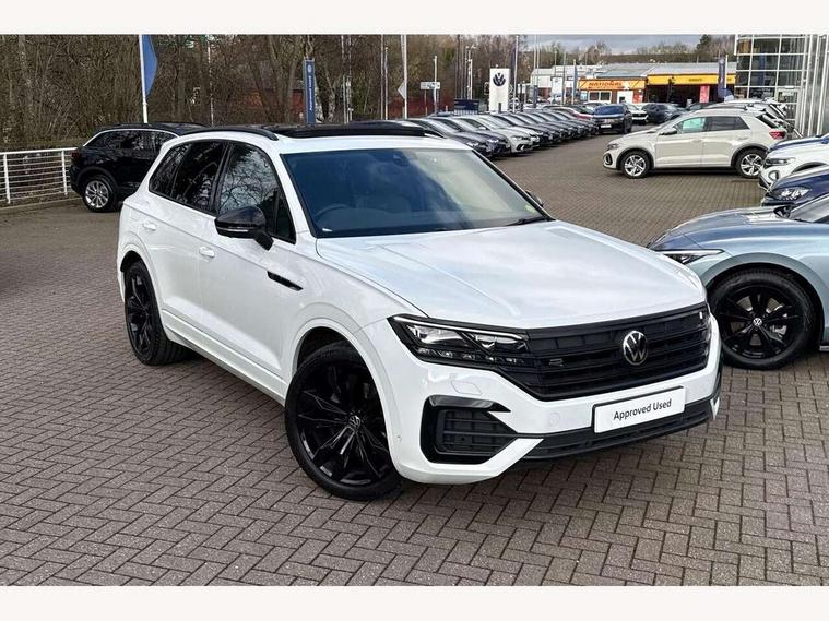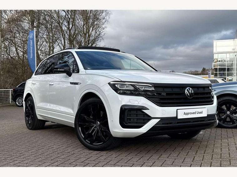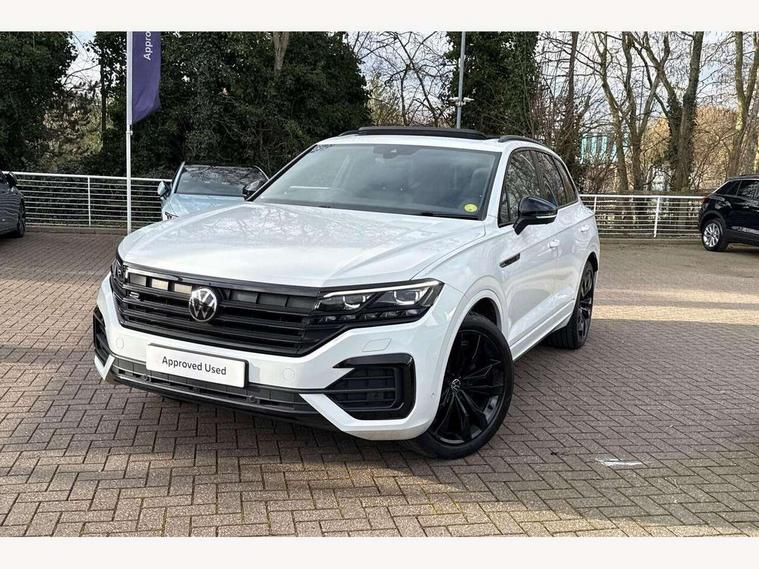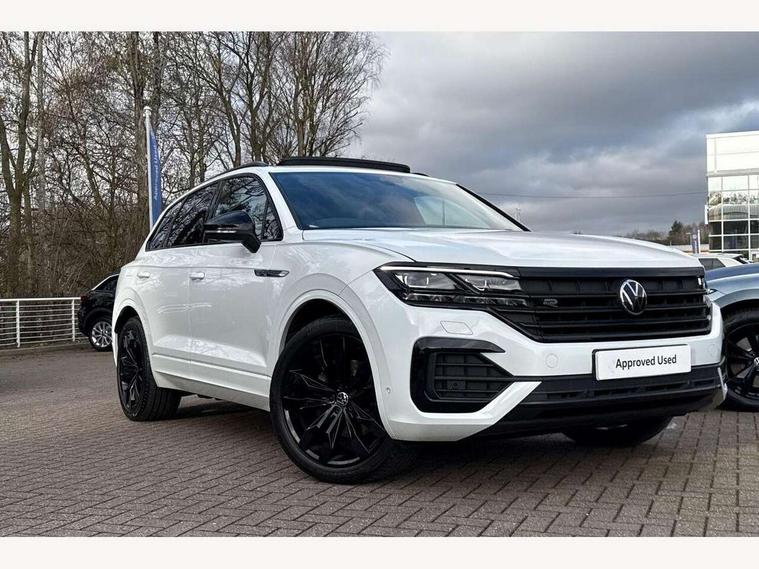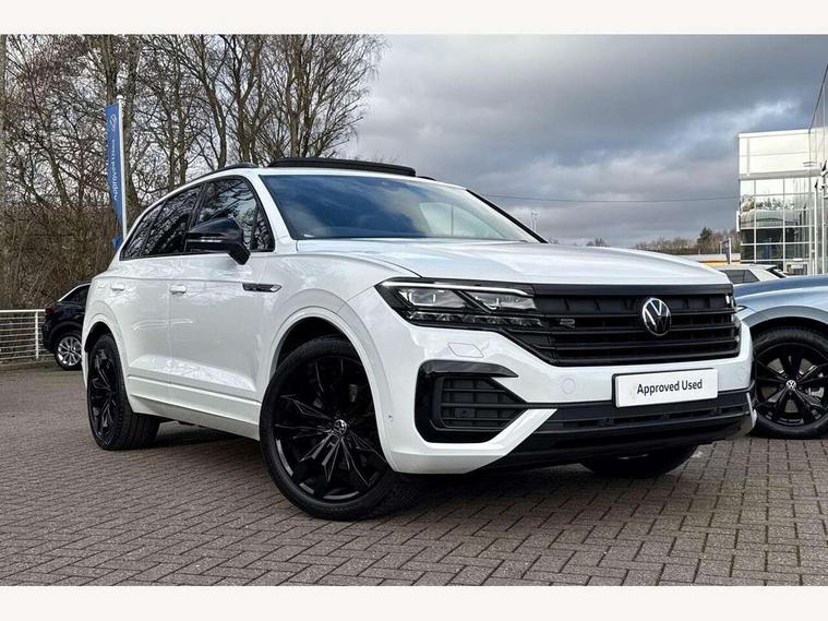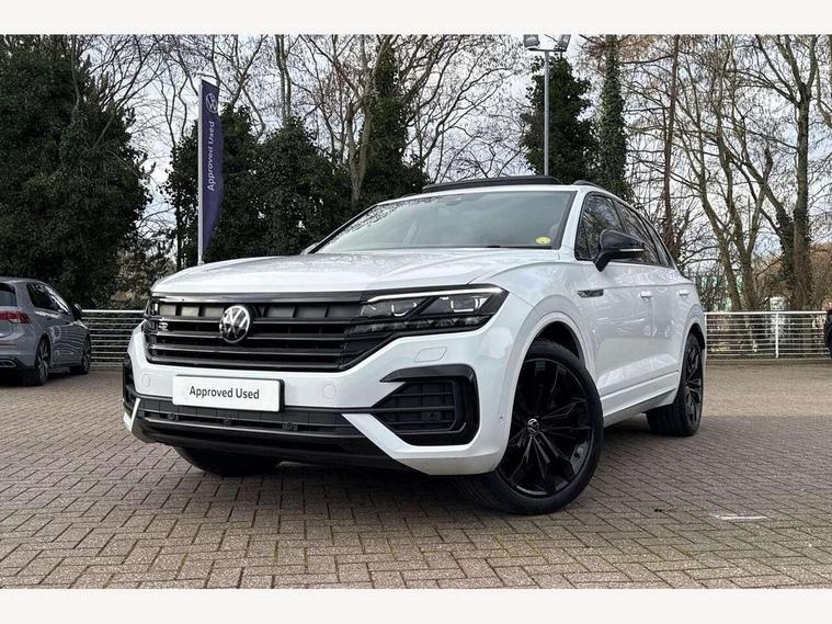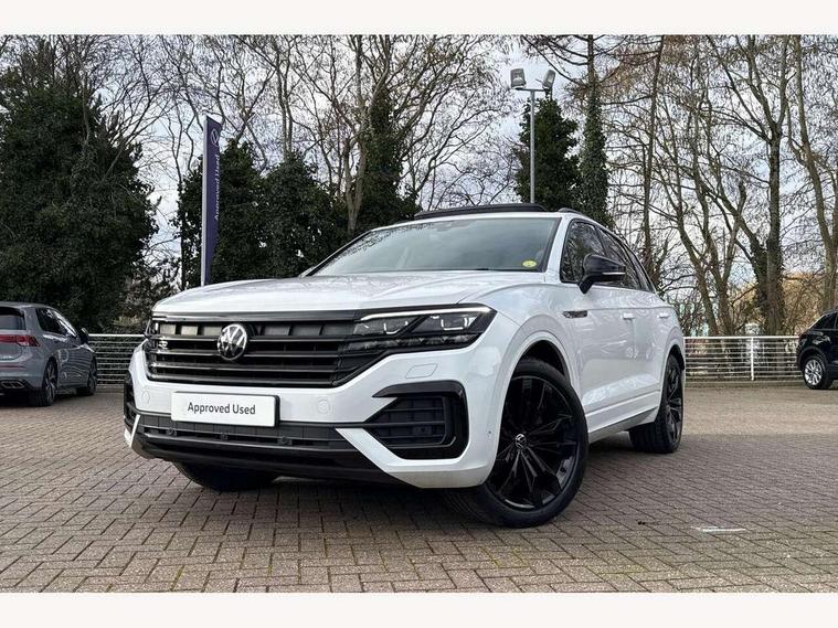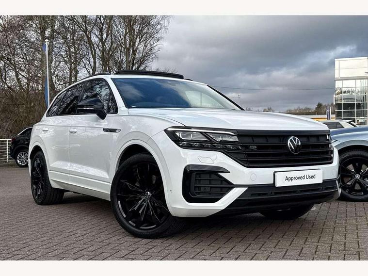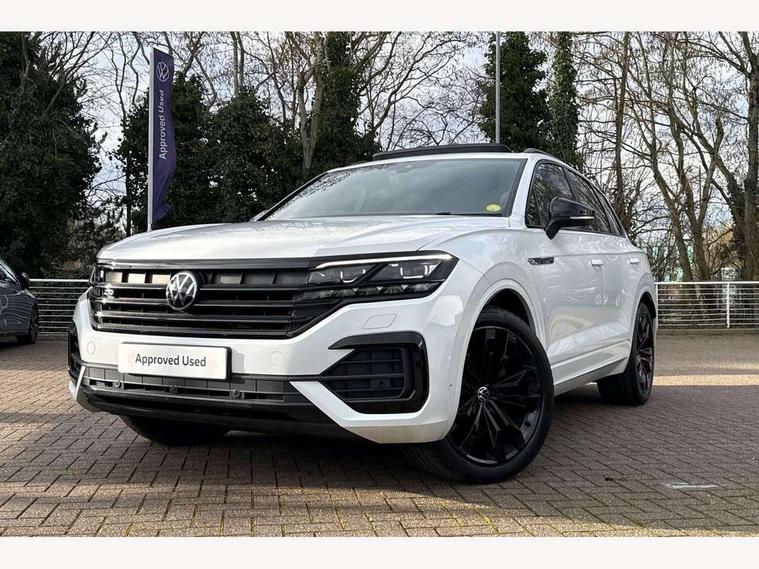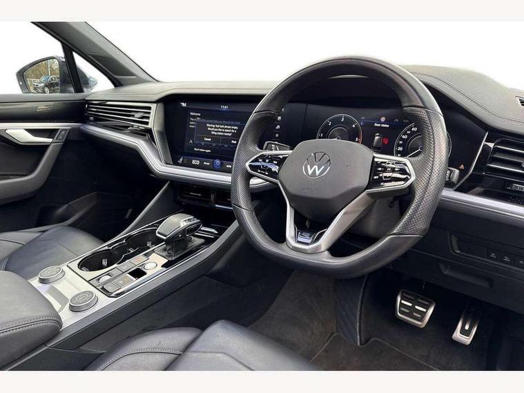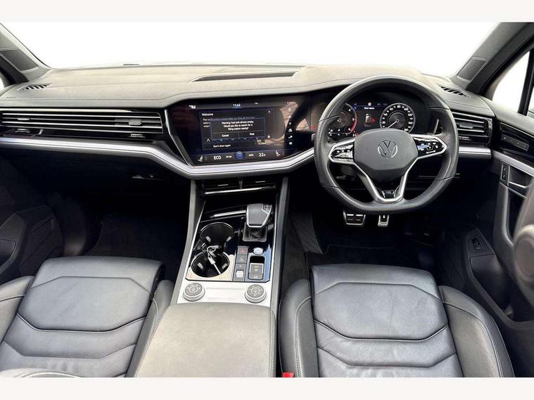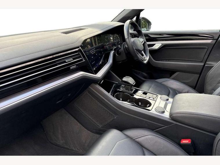 2D/3D map view, ACC - Adaptive cruise control with front assist, forward collision warning, distance monitoring, city emergency brake and speed limiter, Apple car play/Android Auto, Audible and visual fatigue detection system, Bluetooth hands free telephone connection, Car information display, Drive select with Damper control, Driver alert system, Driver profile selection, Dynamic road sign display camera controlled system with visual warning for traffic and road signs, eCall emergency system, Fully electric tailgate + keyless entry and start, Instrument cluster, MirrorLink, Multifunction camera, Multifunction computer premium with 7" colour display, One touch indicators with repeat function, Service interval indicator, Speed sensitive power steering, Start/stop system with regenerative braking, Tailgate power latch, Think blue trainer driver tips and journey analysis, Traffic sign recognition, Voice control system, Wireless Smartphone charger, 24 litre AdBlue tank, Torsen limited slip differential, DAB Digital radio, Dynamic navigation based on TMC+, Gesture control for infotainment system, Multi device interface (MDI) with illuminated USB-C connection, Music playback - MP3, WMA and AAC files, SD card slot, Simultaneous pairing of 2 compatible mobile devices, SMS functionality - read, compose and send SMS messages using touch-screen display, Title and cover art display, Volkswagen media control, Adaptive low beam for urban and motorway use, Auto dimming rear view mirror, Automatic coming/leaving home lighting function, Automatic headlights, Black anodised roof rails, Black door mirrors, Black rear diffuser, Black side window surrounds, Black upper and lower grille louvres extending into headlights and radiator grille, Body colour door handles, Body coloured wheel arches, C signature gloss black front air intake, Chromed tailpipe on the left and right integrated in the bumper with trapezoid design, Dusk sensor, Dynamic headlight range control, Electric front tilt/slide panoramic sunroof and fixed rear sunroof, Electrically power adjustable, heated, folding, auto dimming, front passenger exterior door mirror lowering function, Front and rear electric windows, Galvanised body, Gloss black finish B pillar, Gloss black rear diffuser, Headlight washers, Heat insulating darkened glass in side and rear windows, Heated windscreen washer jets, IQ.Light-LED matrix headlight, daytime running light with dynamic cornering light and indicator, LED 3rd brake light, LED rear fog light, LED rear number plate lights, Plastic scuff plates in door apertures, Poor weather light, Puddle lights, Rain sensor, Rear side wing doors, Rear wiper, 12V socket in front and rear centre console and boot, 2 Coat hooks on B pillar, 3 rear head restraints, 3 seat bench in 2nd row, 3 spoke sport heated leather multi-function sports steering wheel with gear shift paddles - generation 2, 4 way adjustable front head restraints, 4 way electric lumbar support for driver and front passenger, 4 zone climate control, 40:20:40 split folding slide/recline rear seat, B pillar vents, Black lower edge of door extending sills, Branded points of interest, Double sun visor for drivier and passenger with LED illuminated vanity mirrors, Electric luggage compartment cover, Folding rear centre armrest with 2 cupholders, Front + rear carpet mats, Front centre armrest with storage box, Gear shift indicator, Height/reach adjust steering wheel, Illuminated air conditioned glovebox, Isofix preparation for 2 rear child seats, Jack and tool kit, Leather trimmed gear knob with gloss black inlay/aluminum trim, Leatherette door trim, LED luggage compartment lighting, Load through provision, Luggage compartment with load lashing rings, Plastic loading edge protection, Rear seat remote release levers, Single front passenger seat, Soul black headlining, Stainless steel pedals, Innovision cockpit pack - Touareg, 3 point front seatbelts with pre-tensioners, ABS, Active bonnet, Automatic post collision braking system, Curtain airbags, Driver/Front Passenger airbags, EBD + Brake Assist, EDL, Electronic parking brake with auto hold, ESC with ASR, Front seat side impact airbags, Hill descent control, Hill start assist, Passenger airbag deactivate switch, Seatbelt warning lamp and buzzer, Three 3 point rear seatbelts, Two tone horn, Volkswagen roadside assistance, Warning triangle and first aid kit, Alarm with interior monitoring in cab, backup horn and towing protection, Child security locks for front and rear doors, Electronic engine immobiliser, Remote central locking, Black decorative trims on the side windows, High gloss black centre console,