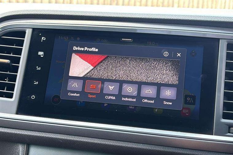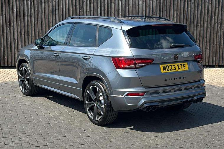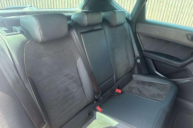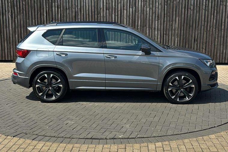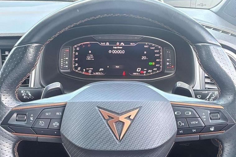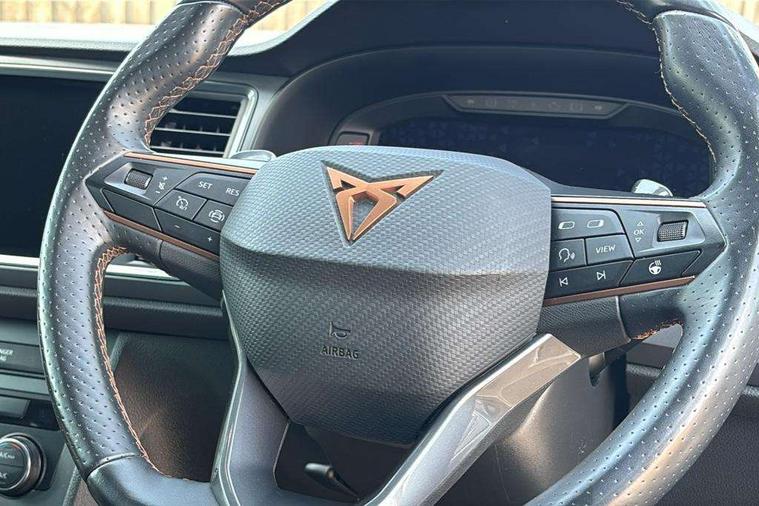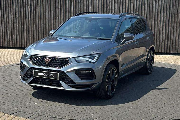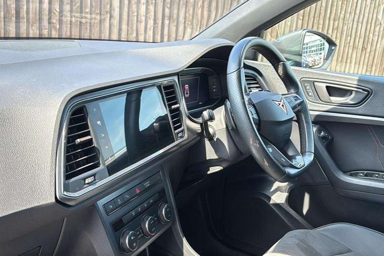 Cruise control system with speed limiter, CUPRA drive profile -Normal, Sport, CUPRA and Individual modes, steering/throttle response, gearshift mode, sound actuator and dynamic chassis control, Digital cockpit, E-call, Front and rear view camera, Outside temperature gauge, Progressive power assisted steering, Self parking functionality (includes front and rear parking sensors), Top view camera, Trip computer, Wireless full link smartphone integration, Wireless phone charger, CUPRA sport suspension, Steering wheel mounted audio/phone controls, Body colour bumpers with dark aluminium diffusor, Body coloured wheel arch surrounds, Dark tinted rear windows, Daytime running lights, Door mirrors with welcome CUPRA light silhouette, Dynamic headlight range control with self adjusting whilst driving, Electric adjustable/heated/folding door mirrors, Front and rear electric windows, Front grille frame in chrome, Full LED headlamps with lens and LED front fog lamps with cornering function, Gloss black door mirrors, Gloss black roof rails, Gloss black side mouldings, Gloss black side window trim, Illuminated aluminium front door sill, LED rear tail lights with dynamic indicators, Rear fog lights, Rear side wing doors, Rear spoiler, Rear wash/wipe, Specific CUPRA design front bumper, Third brake light, Visible twin black exhaust pipes in both sides with dark aluminium diffuser, 12v socket in front, 3 seat bench in 2nd row, 60/40 split folding rear seat, Aluminium pedals, Black roof lining, Bucket sport seats in dinamica upholstery, Cupra steering wheel emblem, Document holder under left front seat, Dual zone climate control, Front and rear head restraints, Front centre armrest, Front seat back storage pockets, Heated steering wheel, Height adjustable driver and passenger seat with lumbar adjustment, ISOFIX points in outer rear seats with top tether anchorage points, Leather steering wheel and gear knob, Multicoloured ambient lighting with LED interior illumination, Pedal cluster, Rear armrest and easy back seat release mechanism from boot, Single front passenger seat, Sports steering wheel, Steering wheel mounted gearshift paddles, Storage compartment in roof console for sunglass, Storage compartment under driver's seat, Convenience pack - Ateca, Interior lighting pack - Ateca, Navigation system plus pack with DAB - Ateca, 3x3 point rear seatbelts, ABS, Traction control system (TCS), Electronic stability control (ESC) and Electronic differential lock system (XDS), Airbags - Driver and front passenger airbag with deactivation, front side, two curtain and driver's knee airbags, Black brake callipers with CUPRA logo, Electric parking brake with auto hold function, Front and rear seatbelt reminder, Front assist with autonomous emergency braking, Hill hold control, Manual rear child locks, Single tone horn, Tiredness recognition system, Tyre pressure monitoring system, Alarm, Keyless entry, Locking wheel bolts,