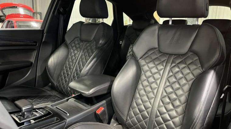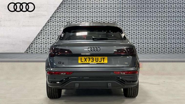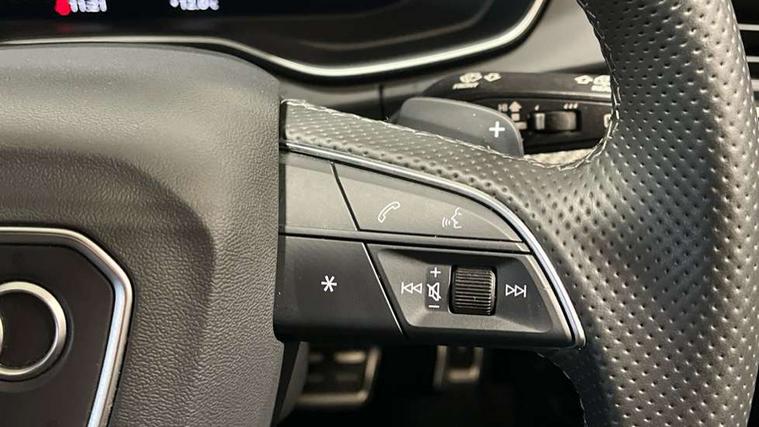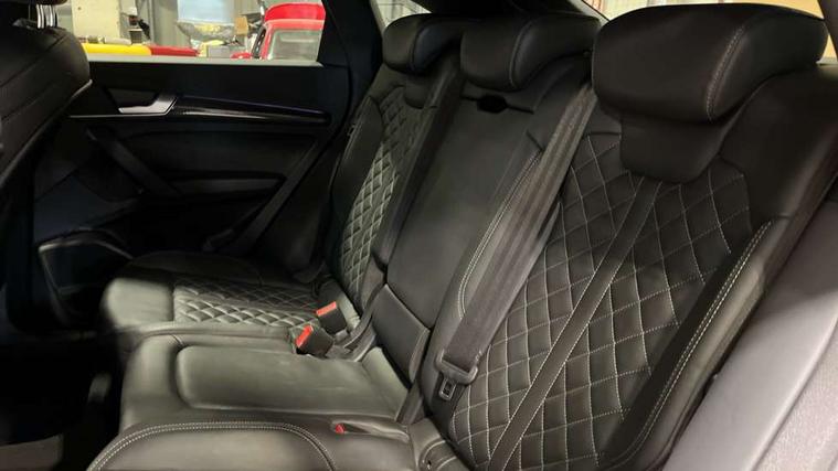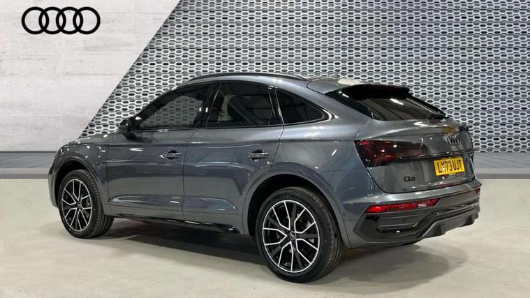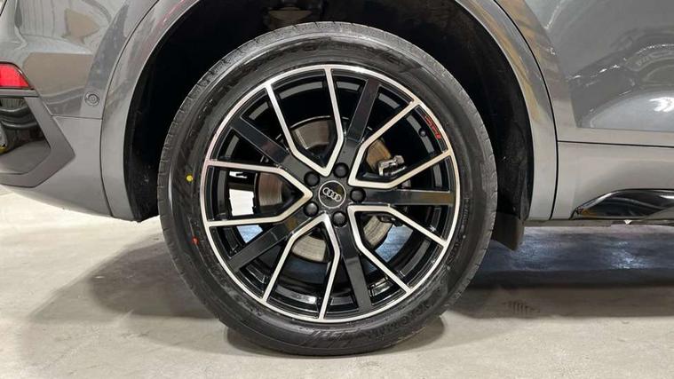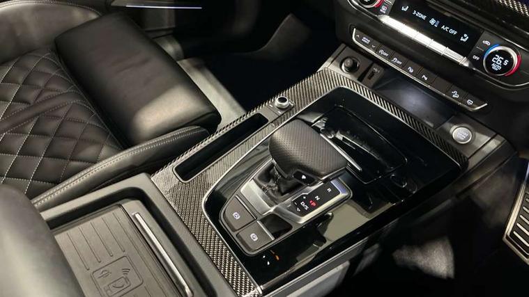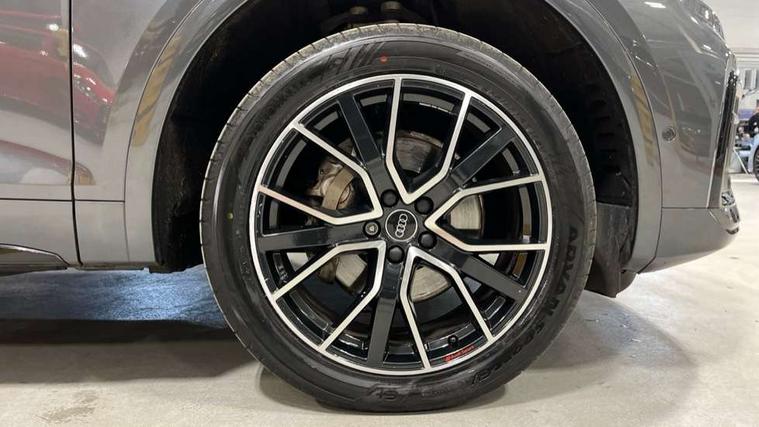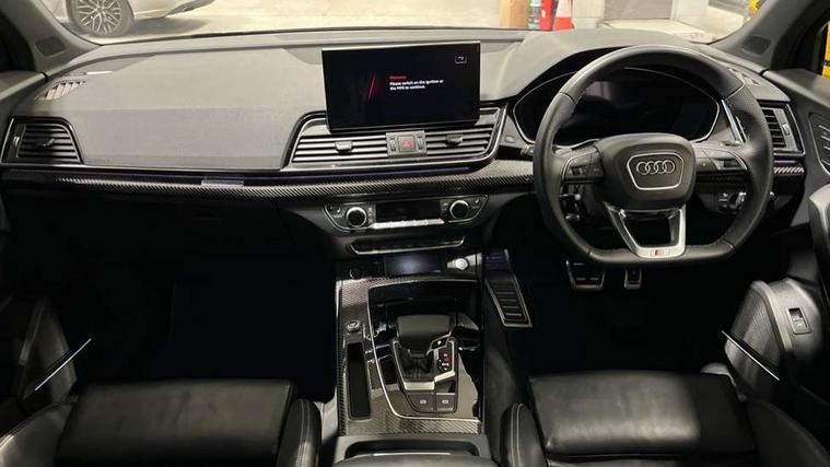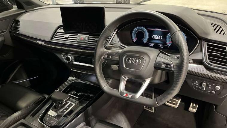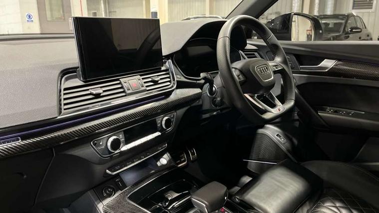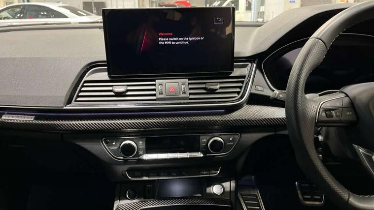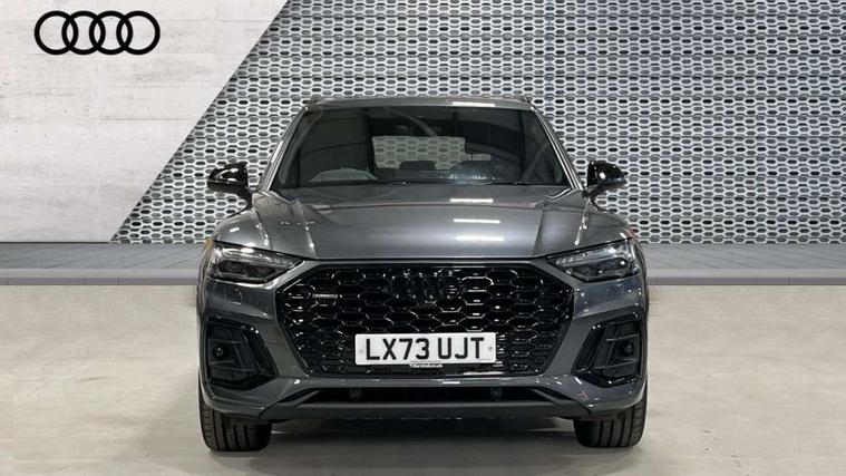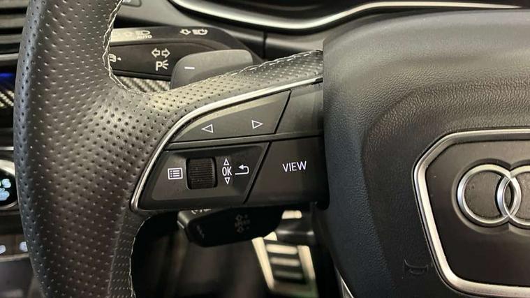 Acoustic front and rear parking sensor, Audi connect safety and service (e-call), Audi drive select, Audi virtual cockpit plus with 12.3" screen and three different layout designs, Audi wireless smartphone interface, Automatic start-stop system with coasting functionality and efficiency programme, Bluetooth interface, Camera based traffic sign recognition, Electro - mechanical power assisted steering, Lane departure warning, MMI navigation plus with 10.1" touch screen, Power tailgate, Reversing camera, Service interval indicator, Voice control system with Audi hotword activation "Hey Audi", Diesel particulate filter, Quattro on demand, S line sports suspension, 2 x USB charging port with aux input socket, 8 loudspeakers, DAB Digital radio, Acoustic windscreen, Auto dimming door mirrors, Auto dimming frameless rear view mirror, Automatic headlight adjustment, Automatic headlights and windscreen wipers, Black roof rails, Black styling with black rings, Body colour bumpers, Body colour rear diffuser with matt aluminium silver surrounds, Body colour underbody protection, Chrome plated exhaust trims, Daytime running lights, Door sills in Selenite silver, Electric adjustable/heated/folding door mirrors, Front air inlet surrounds in aluminium, Front and rear electric windows, Front radiator grille in honeycomb design, LED 3rd brake light, LED headlights and LED tail lights, Loading edge protection in stainless steel, Lower bumpers painted in contrast Manhattan grey, Rear chrome trim strip below lights, Rear privacy glass and rear side windows, Rear side wing doors, Rear wiper, Roof bars, S Line badges on the front wing panels, S Line front and rear bumpers, S Line rear spoiler, S Line side skirts, 3 rear headrests, Black cloth headlining, Comfort front centre armrest, Contrast stitching on seats, steering wheel and gear lever gaiter, Deluxe 3 zone electronic climate control, Front head restraints, Front sport seats with S embossed logo, Front/rear floor mats, Gear lever in black leather, Heated front seats, Height/reach adjustable steering column, Illuminated door sill trims with S logo, Luggage compartment cover, Manual seat adjustment with 4-way electric lumbar support, Single front passenger seat, Stainless steel pedals, Sunvisors with vanity mirrors, Top surface of the rear centre armrest in artificial leather, High gloss pack - Q5, LED interior light pack - Q5, 3 point seatbelts on all seats, 6 airbags - Driver, front passenger, curtain and side airbags, Attention and drowsiness assist, Electrically operated child locks on rear doors, Electromechanical parking brake, Electronic stabilisation control including ABS, ASR and EDL, First aid kit with warning triangle and vests, Front passenger airbag deactivation, Hill descent control, Hill hold assist, ISOFIX child seat mounting for front passenger seat and ISOFIX child seat mounting with Top Tether for outer rear seats, Multi collision brake assist, Pop-up bonnet for pedestrian protection, Pre sense city, Seatbelt monitoring, Tyre pressure warning, Anti theft alarm, Anti-theft wheel bolts, Remote central locking, Remote control key with SAFELOCK and keyless go, Air vents inserts and centre console in gloss black, Tool kit, Tyre repair kit,