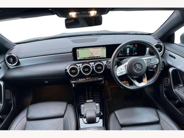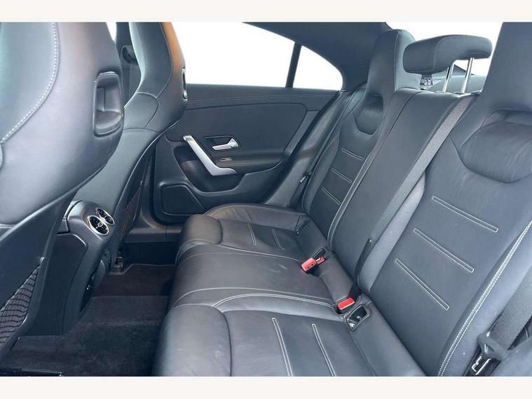 10.25 inch touchscreen central media display, 7 inch Instrument display with digital cockpit, Active lane keeping assist, Attention assist - Monitors steering behaviour and long journey fatigue, Bluetooth connection, Car wash mode, Cruise control with limiter, Direct steer system with speed sensitive power steering, DYNAMIC SELECT with a choice of driving modes (ECO, Comfort, Sport and Individual), ECO start/stop function, Fluid level warning indicator for fuel, oil, coolant and washer fluid, Hard-disk navigation, Hey Mercedes Voice activation, Lamp failure indicator, Mercedes me connect including emergency call system, accident recovery, breakdown and maintenance management, Mercedes me remote services, Outside temperature gauge, Owners manual and service booklet in English, Pre-installation of private car share, Preinstallation for Mercedes Benz link, Radio aerial integrated into front and rear windshields, Service indicator (ASSYST), Smartphone integration with Apple CarPlay and Android auto, Speed limit assist, Trip computer in multifunction display with current consumption indicator, Wireless charging, 7G-DCT 7 speed automatic transmission, Lowered comfort suspension, Rear axle multi-link, DAB digital radio tuner, MBUX multimedia system with DAB digital radio and touchpad including satellite navigation, Mercedes Benz sound system (100 W) with 6 speakers, USB (type C) ports (2) in stowage compartment and 1 in front of centre console, Adaptive brake lights, AMG body styling with AMG front apron and rear apron and visible exhaust tailpipe in chrome trim elements, AMG bodystyling side skirts, Body colour bumpers, Body colour door handles, Chrome beltline strips, Chrome weather strip, Diamond radiator grille pins in chrome with silver painted louvres and chrome insert, Electric windows, Electrically adjustable and heated door mirrors with integrated LED indicators, Exhaust system with 2 Visible tailpipe trim elements and rear apron with trim in chrome, Headlamp assist automatic headlamp activation, Heated glass rear windscreen + timer control, High level LED third brake light, Interior mirror with black reading lamps and frameless, LED high performance headlamps with integrated LED daytime running lights, LED tail lamp, Privacy glass with dark tinting on rear side windows and rear window, Rain sensing windscreen wipers with two sensitivity settings, Rear fog lamp, Window line trim strip in chrome, 3 spoke flattened bottom nappa leather multifunction steering wheel with perforated leather in grip area, 40:20:40 split folding rear seat backrests, Air conditioning - Two zone thermotronic luxury automatic climate control with display, Air vents with surround in silver chrome, Automatic child seat recognition sensor, Black roof lining, Brushed stainless steel sports pedals with rubber studs, Floor mats with stitched AMG lettering, Front centre armrest with stowage, Front door sills with Mercedes Benz lettering, Galvanished gear shift paddles on steering wheel, Heated front seats, Illuminated glove compartment stowage, Luggage net on driver/front passenger seat backrest, Manually adjustable front seats, Manually height and reach adjustable steering column, Rear head restraints, Sport seats with fixed head restraints, Stowage compartment in centre console with retractable cover, Sunvisors with illuminated vanity mirrors, Touchpad on center console, Twin front cupholders, Two outer rear seat isofix and top tether child seat fixing points, Light and sight pack - CLA, Mirror pack - CLA, Parking package - CLA, Seat comfort pack - CLA, Active bonnet pedestrain safety measure which detects an impact and raises bonnet by 65mm, Active brake assist includes forward collision warning system with autonomous braking, Adaptive brake assist with hold function and hill start assist, Anti-lock braking system (ABS), Black seat belts, Bonnet with power domes, Brake pad wear warning indicator, Childproof locks manually operated for rear doors and electrically operated for rear power windows, Crash responsive emergency lighting, Driver and front passenger head and sidebags, Driver and front passenger windowbags, Drivers knee airbag, Dual stage driver and front passenger airbags, Electric parking brake, Electronic stability programme with acceleration skid control, ESP curve dynamic assist, Front and rear seatbelt reminder, Front passenger seat occupancy sensor, Perforated front brake discs, Three point rear seat belts, Tyre pressure monitoring system, Warning triangle and first aid kit, Keyless Go starting function, Remote central locking and crash sensor with emergency opening function, Urban guard vehicle protection system with immobiliser and interior protection, Light aluminium with longitudinal grain interior trim, 18" 5 twin spoke design alloy wheels painted in titanium grey with high sheen finish, Summer tyres, Tirefit tyre sealant kit,