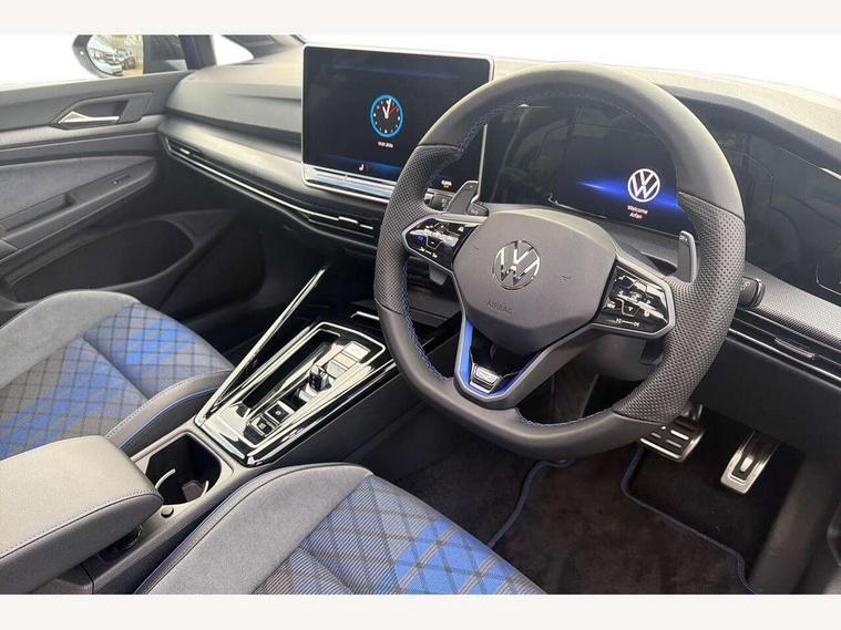 Activated carbon canister, Adaptive cruise control (ACC), Advanced driver attention and drowsiness monitor, Dynamic road sign display, E-Sim card for online connectivity, eCall emergency call system, Electronic maximum speed limit increased to 270 km/h, includes driving Modes 'drift' and 'special', larger roof spolier and GPS laptimer + G-Meter, Multi-color Digital cockpit pro, selection of different info profile possible, Multifunction front facing camera for distance control, Navigation system, Oncoming vehicle braking when turning including swerve support, Progressive steering, Side assist blind spot lane change system, rear traffic alert and exit warning system, Speed limiter, Speedo, rev counter, electronic odometer, trip, service interval display, exterior temperature and fuel gauge, Traffic jam assist, Voice enhancer and voice control, Warning signal and warning light for front and rear seatbelts not fastened, We connect plus preparation, We connect preparation, Wireless app connect, All wheel drive - 4Motion, Petrol Particulate Filter, Start-stop system with battery regeneration (recuperation - energy recovery during braking), XDS electronic differential lock for improved traction and handling, 2 USB C ports in front, 2 USB charging sockets on the centre console in the rear charging capacity upto 45W, Digital radio reception (DAB), Diversity antenna for FM reception, Gaming platform via car app, Infotainment system with 12.9" display, Mobile phone interface with inductive charging feature, 3rd brake light, Auto dimming rear view mirror, Automatic headlamp activation with Coming home and Leaving home feature, Black badge on B-pillar, Black mirror caps, Black strips on radiator grille and headlights, Body colour door handles, Darkened headlights, Darkened R Logos and VW logos in front, rear and on fender, Exterior mirrors convex on the left and aspherical on the right, Front and rear electric windows, Front fog lamps and cornering light, Heat insulating windshield made of laminated glass, Illuminated lighting animation with wake up/goodbye scenario, LED matrix headlights with ambient light V2, advanced high beam, dynamic range contol with cornering, LED rear lamp with indicator, poor weather, LED separate daytime running light, Light assist with High beam control, R name plate, Rain sensor, Rear fog light on one side and reversing lights on both sides, Rear side wing doors, Rear tinted glass 65% light absorbing from B pillar backwards, Rear windscreen washer and wiper with interval delay, Remote electrically foldable door mirrors, puddle lights and reverse activated passenger's door mirror, Welcome light with surround lighting, 12V socket in front centre console, 12V socket in luggage compartment, 3 rear head restraints, 3 seat bench in 2nd row, 30 colour ambient lighting, illuminated center console storage compartment in front, Air care climatronic 3 Zone automatic climate control with rear air conditioning control panel, Aluminium gearshift handle, Brushed stainless steel pedals, Chrome plated radiator grille inserts, air vent surrounds and light switch surrounds, Entry lights, Front + rear black carpet mats, Front centre armrest, Integrated front head restraints, ISOFIX anchors for child seats on outer rear bench seats and on front passanger seat compatible for i-Size, Luggage compartment lighting, Rear cupholder and loadthough, Single front passenger seat, Soul black instrument panel, Soul black roof lining, Split folding backrest with centre armrest and unsplit rear seat bench, Sun visors with illuminated vanity mirrors, Driver assistance pack - Golf Estate/Hatchback Auto, R styling pack - Golf, Technology park and comfort pro package - Golf Hatchback, 3 point height adj front seatbelts + pretensioners, 3 rear three point seatbelts, ABS, Autonomous emergency braking front assist with pedestrian and cyclist monitoring, Child locks on rear doors, Driver and front passenger airbag with front passenger airbag deactivation, Electronic parking brake with auto hold, ESC (Electronic Stability Control), Extended pedestrian protection measures, Front and rear black brake calipers with darkened R-logo, Hill start assist, Rear disc brakes, Two tone horn, Tyre pressure loss indicator, Volkswagen roadside assistance, Anti theft wheel bolts, Preparation for alcohol interlock, Sporty vehicle dynamics, Tool kit for tyre mobility set, Tyre mobility kit Includes 12V compressor and tyre sealant, Wheel hub cover with darkened R-logo,