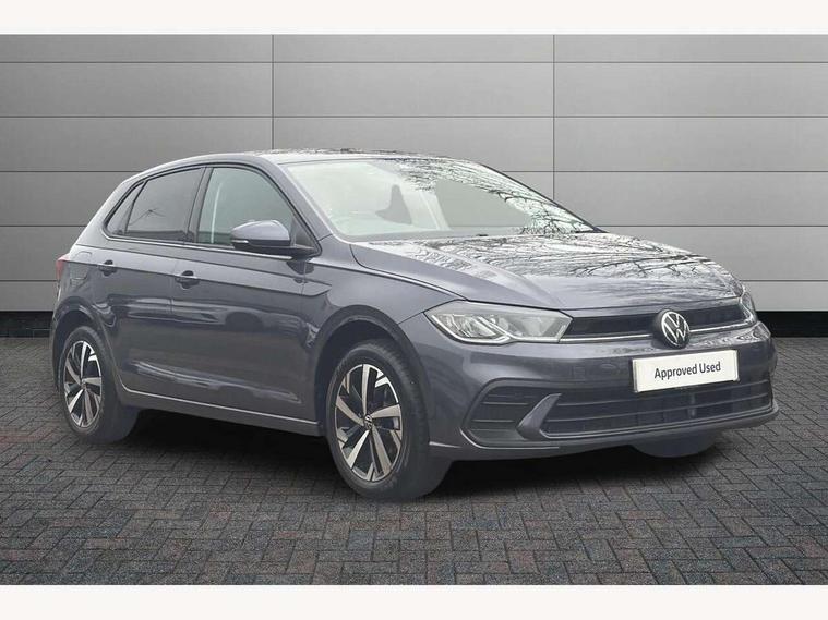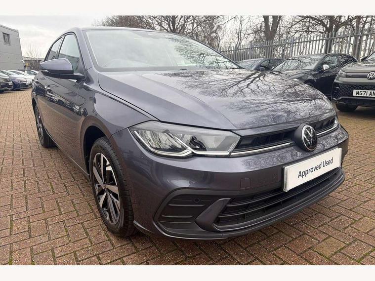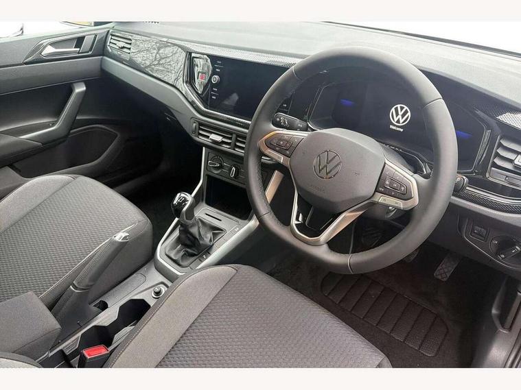 Adaptive cruise control without follow-to-stop and speed limiter, Advanced driver attention and drowsiness monitor, Bluetooth mobile phone interface, Dynamic road sign display, Emergency call service, Multifunction front facing camera for distance control, Power assisted speed sensitive steering, Preparation for navigation system with media and internet package, Preparation for We connect and We connect plus, Rear view camera, Speedo and rev counter, electronic odometer, trip, service interval display and exterior temperature gauge, Standard rear axle, Travel Assist - Lane keeping system and traffic jam assist, Travel assist including emergency assist, Trip computer, Warning signal and warning light for front and rear seatbelts not fastened, Washer fluid level indicator, Wireless app connect, Front wheel drive, Rear shock absorpion, Start-stop system with battery regeneration (recuperation - energy recovery during braking), DAB Digital radio, Diversity antenna for FM reception, Automatic dimming interior rear view mirror, Automatic headlight control with LED separate daytime running lights with coming/leaving home function, Body colour bumpers with chrome inserts, Body colour door handles, Body colour door mirrors, Electric front windows, Engine badge deletion, Headlight range adjustment, Heat insulating and laminated safety glass windshield, LED Headlights, LED rear combination lamps, Power folding adjustable/heated exterior mirrors and front passenger exterior mirror lowering function, Rain sensor, Rear electric windows, Rear fog light, Rear side wing doors, Rear tinted glass from B-pillar backwards approx 65% tinted, Rear windscreen washer and wiper with interval delay, Third brake light, 12V power socket in centre console, 2 front and 2 rear reading lights with switch off delay and dimmer, 2 USB-C ports in the front, 2 USB-C charging sockets on the center console in the rear, 3 rear head restraints, 60/40 split folding rear seat and rear seat bench not split, Ceramique roof lining, Chrome plated radiator grille inserts, air vent surrounds and light switch surrounds, Door and side trim panel, Driver and front passenger seat height adjustment, Driver/passenger sunvisors with illuminated vanity mirrors, Front centre armrest, Front seat backrest storage pockets, Front standard seats, Handbrake lever handle in leather, Hartley/Thomas cloth upholstery, Headliner in recycled material, Isofix child seat preparation easy-fit (for two outer rear seats, and front passenger seat) compatible with I-size, Leather trimmed gear knob, Luggage compartment cover, Luggage compartment lighting, Removable luggage compartment floor, Single front passenger seat, Standard climatic zones, Standard pedal cluster, Three spoke leather wrapped multifunction steering wheel, Light and vision pack - Polo, 3 point height adj front seatbelts + pretensioners, 3 point seat belt for centre rear seat, 3 point seatbelts, outer rear with ECE lable, ABS, Driver and front passenger airbag with front passenger airbag deactivation, Drivers and front passengers safety optimised head restraints, ESC (Electronic stability control) + EDL (Electronic Differntial lock) and ASR (Traction control), Extended and predictive pedestrian/ cyclist protection, Front assist with autonomous emergency braking (for Adaptive Cruise Control ACC up to 130 mph), Front curtain and side airbags with center airbag, Front disc brakes, Hill hold control, Manual child lock in rear doors, Rear drum brakes, Single tone horn, Tyre pressure loss indicator, Alarm with interior protection, Anti-theft alarm system with interior monitoring, backup horn, and towing protection, Anti-theft wheel bolts, Electronic engine immobiliser, Lava stone black gloss/matt decorative inserts in dash and front door panels, 16" Torsby alloy wheels, Low rolling resistance tyres,