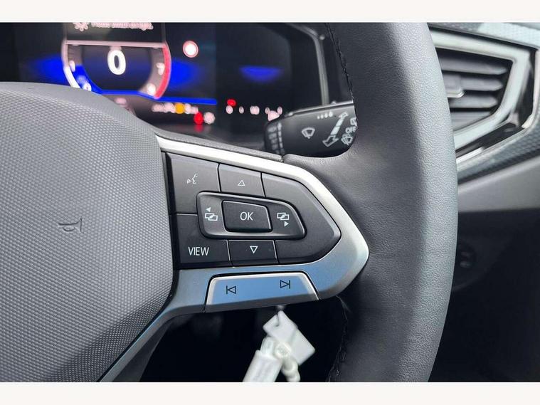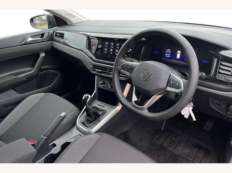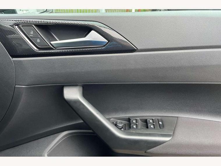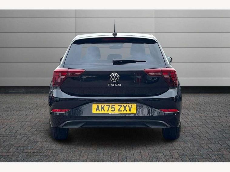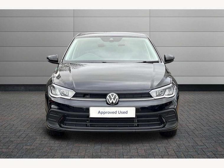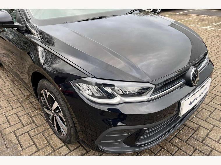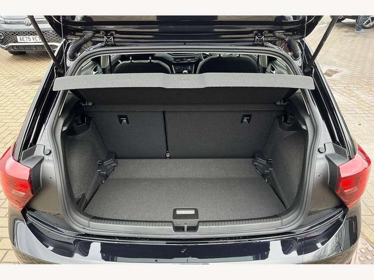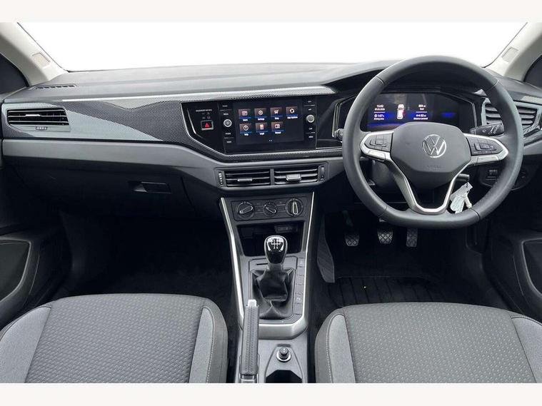 Adaptive cruise control without follow-to-stop and speed limiter, Advanced driver attention and drowsiness monitor, Bluetooth mobile phone interface, Dynamic road sign display, Emergency call service, Mobile phone preparation with inductive charging function, Multifunction front facing camera for distance control, Power assisted speed sensitive steering, Preparation for navigation system with media and internet package, Preparation for We connect and We connect plus, Rear view camera, Speedo and rev counter, electronic odometer, trip, service interval display and exterior temperature gauge, Standard rear axle, Travel Assist - Lane keeping system and traffic jam assist, Travel assist including emergency assist, Trip computer, Warning signal and warning light for front and rear seatbelts not fastened, Washer fluid level indicator, Wireless app connect, Front wheel drive, Rear shock absorpion, Start-stop system with battery regeneration (recuperation - energy recovery during braking), DAB Digital radio, Diversity antenna for FM reception, Automatic dimming interior rear view mirror, Automatic headlight control with LED separate daytime running lights with coming/leaving home function, Body colour bumpers with chrome inserts, Body colour door handles, Body colour door mirrors, Electric front windows, Engine badge deletion, Headlight range adjustment, Heat insulating and laminated safety glass windshield, LED Headlights, LED rear combination lamps, Power folding adjustable/heated exterior mirrors and front passenger exterior mirror lowering function, Rain sensor, Rear electric windows, Rear fog light, Rear side wing doors, Rear tinted glass from B-pillar backwards approx 65% tinted, Rear windscreen washer and wiper with interval delay, Third brake light, 12V power socket in centre console, 2 front and 2 rear reading lights with switch off delay and dimmer, 2 USB-C ports in the front, 2 USB-C charging sockets on the center console in the rear, 3 rear head restraints, 60/40 split folding rear seat and rear seat bench not split, Carpet mats, front and rear, Ceramique roof lining, Chrome plated radiator grille inserts, air vent surrounds and light switch surrounds, Door and side trim panel, Driver and front passenger seat height adjustment, Driver/passenger sunvisors with illuminated vanity mirrors, Front centre armrest, Front seat backrest storage pockets, Front standard seats, Handbrake lever handle in leather, Hartley/Thomas cloth upholstery, Headliner in recycled material, Isofix child seat preparation easy-fit (for two outer rear seats, and front passenger seat) compatible with I-size, Leather trimmed gear knob, Luggage compartment cover, Luggage compartment lighting, Removable luggage compartment floor, Single front passenger seat, Standard climatic zones, Standard pedal cluster, Three spoke leather wrapped multifunction steering wheel, Light and vision pack - Polo, 3 point height adj front seatbelts + pretensioners, 3 point seat belt for centre rear seat, 3 point seatbelts, outer rear with ECE lable, ABS, Driver and front passenger airbag with front passenger airbag deactivation, Drivers and front passengers safety optimised head restraints, ESC (Electronic stability control) + EDL (Electronic Differntial lock) and ASR (Traction control), Extended and predictive pedestrian/ cyclist protection, Front assist with autonomous emergency braking (for Adaptive Cruise Control ACC up to 130 mph), Front curtain and side airbags with center airbag, Front disc brakes, Hill hold control, Manual child lock in rear doors, Rear drum brakes, Single tone horn, Tyre pressure loss indicator, Alarm with interior protection, Anti-theft alarm system with interior monitoring, backup horn, and towing protection, Anti-theft wheel bolts, Electronic engine immobiliser, Lava stone black gloss/matt decorative inserts in dash and front door panels, 16" Torsby alloy wheels, Low rolling resistance tyres,