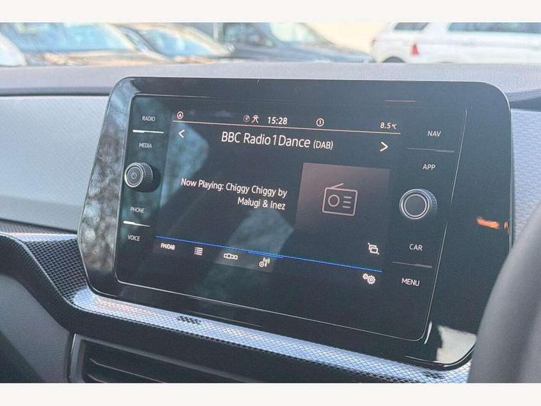 'Lights On' Reminder warning buzzer, 8" Digital cockpit, Advanced driver attention and drowsiness monitor, Bluetooth telephone and audio connection for compatible devices, Car information display, Dynamic road sign display, E-Sim card for online connectivity, eCall emergency call system, Front and rear parking sensors, Front assist, forward collision warning, autonomous emergency braking and speed limiter, Low washer fluid warning light, Multifunction computer with visual gear change recommendation for fuel consumption, Multifunction front facing camera for distance control, Operating permit alteration, Power assisted steering, Predictive adaptive cruise control, Preparation for navigation system with media and internet package, Preparation for We connect and We connect plus, Rear view camera, Semi-automated driving assistance, travel assist including lane keeping system Lane Assist and emergency assisst, Side assist, Speedo, rev counter, electronic odometer, trip, service interval display, exterior temperature and fuel gauge, Warning sound and light for doors and tailgate open, Warning sound and light for front seatbelts unfastened, Wireless Car net app connect with Apple CarPlay, combined functionality of Apple CarPlay/Android Auto and MirrorLink, Wireless charging, Misfuel prevention device, Start-stop system with battery regeneration (recuperation - energy recovery during braking), 2 USB C ports in front, 2 USB charging sockets on the centre console in the rear charging capacity upto 45W, DAB Digital radio receiver, Diversity antenna for FM reception, Multi device interface (MDI) with USB connection, Music playback - MP3, WMA and AAC files, Radio, Automatic dimming interior rear view mirror, Automatic hazard lights activation under emergency braking, Automatic headlight control with LED separate daytime running light and coming home and leaving home feature, Body colour door handles, Body colour door mirrors, Body coloured bumpers, Dynamic headlight range control with self adjusting whilst driving, Electric folding door mirror, adjustable, heated with front passenger exterior mirror lowering function, Exterior mirrors convex on the left and aspherical on the right, Front and rear electric windows, Galvanised body, Heat insulating and laminated safety glass windshield, Heat insulating darkened glass in side and rear windows, High Beam Assist, automatic sensing for switching between dipped and main beam, LED rear combination lights, LED third brake light, Lower door sills and door pillars in black, Rain sensor, Rear fog light on one side, reversing light on both sides, Rear side wing doors, Rear window aerial, Rear window wiper with intermittent control, Reflectors in all doors, Scuff plates, Tailgate with integrated roof spoiler, 12V Accessory socket in centre console, 3 rear head restraints, 3 seat bench in 2nd row, 60/40 split folding rear seat backrest, Ambient lighting and logo projection, Ceramique roof lining, Cloth upholstery, Door and side trim panel, Driver and front passenger sunvisor with vanity mirror, Dust and pollen filter, Front and rear reading lights X 2, Front centre armrest with storage compartment, Front seat back storage pockets, Glove compartment door with light, Heating and fresh air system with 4 stage blower, Height/reach adjust steering wheel, Instrument lighting white adjustable panel illumination, Interior light with switch off delay and dimmer, Isofix anchors for child seats on outer rear seats and front passenger seats, Leather gearshift handle, Leather wrapped multifunction steering wheel, Luggage compartment floor, Luggage compartment lighting, Manual front seats with height adjustment, Padded dashboard, Removable luggage compartment cover, Single front passenger seat, Storage compartment in drivers and front passengers door, Unsplit sliding rear seat bench, Without drawers under front seats, 3 point outer rear seat belts with ECE label, 3 Point seatbelt for centre rear seat, Anti-lock Braking System (ABS) with Hydraulic Brake Assist (HBA), Automatic post collision braking system, Disc brakes in front, Driver and front passenger safety-optimised head restraints, Drivers and Front Passengers airbags with front passengers airbag deactivation switch, Drum brakes in rear, ESC with EDL and ASR (traction control), Extended and predictive pedestrian/cyclist protection, Front and rear passenger curtain airbag system including front side airbags, Height adjustable front 3 point seatbelts + pretensioners, Hill start assist, Pre crash preventive occupant protection, Proactive passenger protection system in combination with front assist, Rear door child safety locks, Rigid safety cell with front and rear crumple zones, Single tone horn, Tyre pressure loss indicator, Volkswagen roadside assistance, Alarm with interior protection, Anti theft alarm system, Electronic engine immobiliser, Remote keyless entry using key fob including Start/Stop button on centre console with SAFELOCK, Remote tailgate unlocking using key fob, Low rolling resistance tyres,