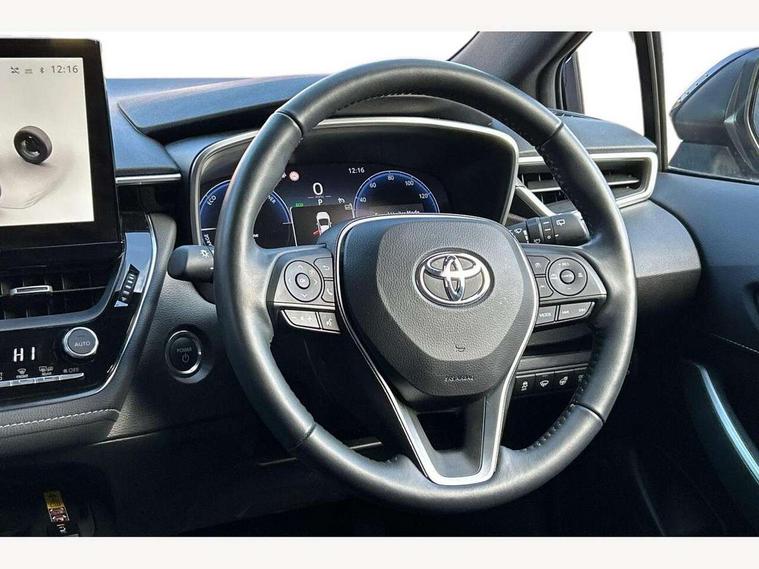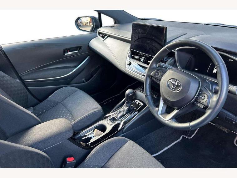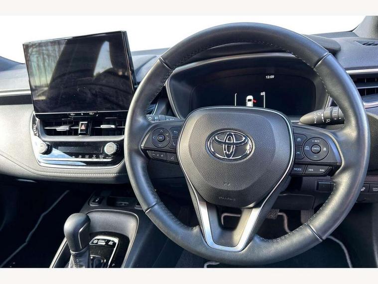 10.5" Multimedia display screen, Bluetooth telephone connectivity, Connected car functionality upgrade, tracker, remote status and e-care, Drive mode select (Eco, Normal), E-call, Electrically assisted power steering, EV drive indicator, Front and rear parking sensors with auto brake, Full Digital 12.3" TFT Digital Combimeter, Key reminder warning, Lane Departure Alert (LDA) switch on steering wheel, Memory on adjustable speed limiter, MyT connected services, Proactive driving assist (PDA), Reversing camera, Smart entry and push button start, Smartphone integration with Apple CarPlay and wired android auto, Tailgate, Toyota remote services, Toyota smart connect navigation, Wireless charger, Gasoline particulate filter, Vehicle Stability Control (VSC), 6 speakers, AM/FM radio, DAB Digital radio, Front USB-C in dashboard, Smart voice assist/ Voice recognition, USB and Aux in connectors + 12V front outlet, Anti-jam protection on power windows, Auto up and down function on all power windows, Automatic headlights with high beam assist, Black centre and side air vents, Black meshed front grille, Black toyota logo in front, Body coloured bumpers, Body coloured door mirrors, Body coloured front spoiler, Body coloured outside door handles, Body coloured rear under guard, COROLLA alloy door scuff plates, Follow me home headlights, LED daytime running lights, LED front fog lights, LED High mounted stop light, LED multi beam headlights, LED multi reflector in headlights, LED rear combi lights with LED lightguide, Manual day/night rear view mirror, Manual headlight levelling system, New grille pattern, Noise reduction layer on windscreen, Piano black diffuser, Power adjustable heated door mirrors, Power front windows, Power rear windows, Rain sensor, Rear side wing doors, Rear window defogger, Rear window wiper, Satin chrome insert on front air vents, Satin chrome insert on front door assist grips, Shark fin antenna, Time adjustment on intermittent wiper, Turning signal integrated indicators in door mirrors, Unique lower skirt, Unique side rocker with black insert, UV-filter on driver and passenger windows, 2 Shopping bag hooks in luggage compartment, 3 rear headrests, 3 seat bench in 2nd row, 3 spoke leather steering wheel with satin insert + gear knob, 4 tie down hooks in luggage compartment, 60/40 split folding rear seat, Adaptive cruise control (ACC) switch on steering wheel, Adjustable speed limiter switch on steering wheel, Audio, multimedia and telephone switches on steering wheel, Black armrest on centre console box, Black gear shift console, Boot light, Centre room light, Driver and front passenger personal light, Driver and passenger assist grip, Driver and passenger sun visor with mirror and light, Dual zone automatic air conditioning with ECO mode switch, Fabric upholstery, Front and rear cup and bottle holders, Front door pockets, Front head restraints, Front passenger seat, Front sliding fabric armrest, Heated seats, Illuminated entry system in room lamp, ISOFIX seat fixing (2 fixings on rear outer seats), Leather gear shift with satin chrome on gear shift console, Manual height adjustable for driver and front passenger seat, Manually tilt with sliding driver and front passenger seat, Parcel shelf, Passenger seat back pocket, Pollen filter, Power adjustable lumbar support on driver seat, Power window switches with satin chrome inserts, Rear armrest with 2 cupholders, Rear passenger coat hooks (2), Remote air conditioning, Satin chrome inside door handles, Satin chrome surround on heater control panel, Satin chrome surround on speedometer, Sliding armrest on centre console box, Slow opening glovebox with lights, Textile floor mats, Tilt/telescopic steering column, Voice recognition switch on steering wheel, Whiplash Injury Lessening (WIL) feature (active headrest) for seats, Toyota safety sense 3 pack - Corolla, 3x3 point rear seatbelts, Adjustable driver and front passenger seat belt extender to top anchor point, Anti lock braking system + Electronic brake force distribution, Brake assist function, Child locks on rear doors, Downhill Assist Control (DAC), Electronic parking brake, Emergency brake light signal (EBS), Front passenger airbag on/off switch, Front seatbelt reminder, HAC - Hill start assist control, Rear seat belt reminder, Seatbelt pretensioners and force limiters, Supplemental restraint system (SRS) 7 airbags - dual driver, dual side curtain, side impact and driver knee airbags, Traction control, Tyre pressure warning system, Acoustic vehicle alert system (AVAS), Alarm with motion sensor and immobilizer, Power passenger window lock, Remote central locking + deadlocks, Satin chrome dash trim, Soft touch texture on upper dashboard, Stitching on lower dashboard, 16" 5 double spoke alloy wheels, Tyre repair kit, Unique wheel finish with red wheel cap,