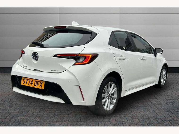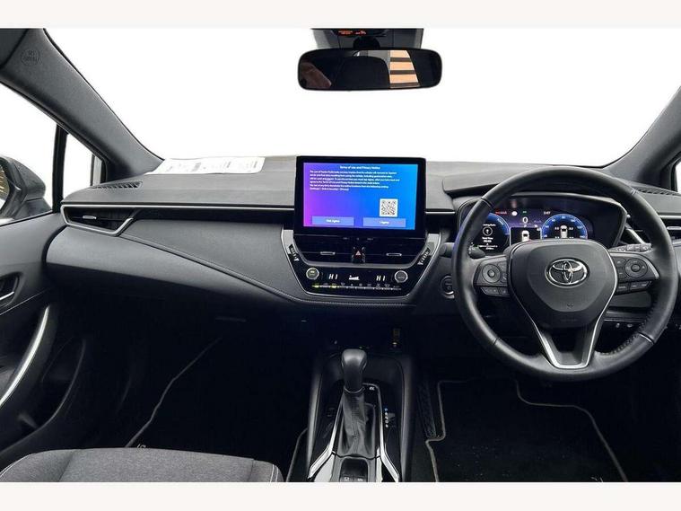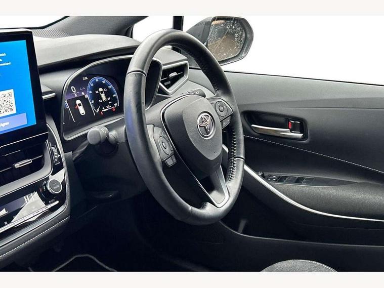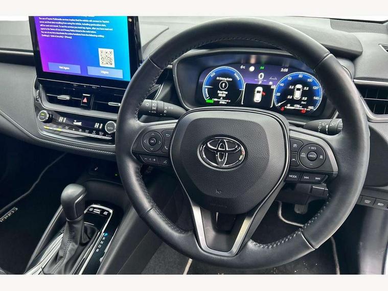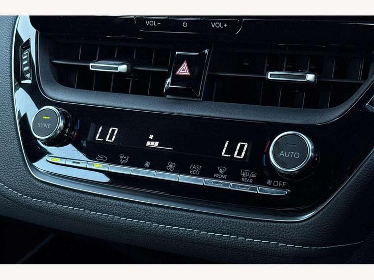 10.5" Multimedia display screen, Bluetooth telephone connectivity, Connected car functionality upgrade, tracker, remote status and e-care, Drive mode select (Eco, Normal), E-call, Electrically assisted power steering, EV drive indicator, Front and rear parking sensors with auto brake, Full Digital 12.3" TFT Digital Combimeter, Key reminder warning, Lane Departure Alert (LDA) switch on steering wheel, Memory on adjustable speed limiter, MyT connected services, Proactive driving assist (PDA), Reversing camera, Smart entry and push button start, Smartphone integration with Apple CarPlay and wired android auto, Tailgate, Toyota remote services, Toyota smart connect navigation, Wireless charger, Gasoline particulate filter, Vehicle Stability Control (VSC), 6 speakers, AM/FM radio, DAB Digital radio, Front USB-C in dashboard, Smart voice assist/ Voice recognition, USB and Aux in connectors + 12V front outlet, Anti-jam protection on power windows, Auto up and down function on all power windows, Automatic headlights with high beam assist, Black centre and side air vents, Black meshed front grille, Black toyota logo in front, Body coloured bumpers, Body coloured door mirrors, Body coloured front spoiler, Body coloured outside door handles, Body coloured rear under guard, COROLLA alloy door scuff plates, Follow me home headlights, LED daytime running lights, LED front fog lights, LED High mounted stop light, LED multi beam headlights, LED multi reflector in headlights, LED rear combi lights with LED lightguide, Manual day/night rear view mirror, Manual headlight levelling system, New grille pattern, Noise reduction layer on windscreen, Piano black diffuser, Power adjustable heated door mirrors, Power front windows, Power rear windows, Rain sensor, Rear side wing doors, Rear window defogger, Rear window wiper, Satin chrome insert on front air vents, Satin chrome insert on front door assist grips, Shark fin antenna, Time adjustment on intermittent wiper, Turning signal integrated indicators in door mirrors, Unique lower skirt, Unique side rocker with black insert, UV-filter on driver and passenger windows, 2 Shopping bag hooks in luggage compartment, 3 rear headrests, 3 seat bench in 2nd row, 3 spoke leather steering wheel with satin insert + gear knob, 4 tie down hooks in luggage compartment, 60/40 split folding rear seat, Adaptive cruise control (ACC) switch on steering wheel, Adjustable speed limiter switch on steering wheel, Audio, multimedia and telephone switches on steering wheel, Black armrest on centre console box, Black gear shift console, Boot light, Centre room light, Driver and front passenger personal light, Driver and passenger assist grip, Driver and passenger sun visor with mirror and light, Dual zone automatic air conditioning with ECO mode switch, Fabric upholstery, Front and rear cup and bottle holders, Front door pockets, Front head restraints, Front passenger seat, Front sliding fabric armrest, Heated seats, Illuminated entry system in room lamp, ISOFIX seat fixing (2 fixings on rear outer seats), Leather gear shift with satin chrome on gear shift console, Manual height adjustable for driver and front passenger seat, Manually tilt with sliding driver and front passenger seat, Parcel shelf, Passenger seat back pocket, Pollen filter, Power adjustable lumbar support on driver seat, Power window switches with satin chrome inserts, Rear armrest with 2 cupholders, Rear passenger coat hooks (2), Remote air conditioning, Satin chrome inside door handles, Satin chrome surround on heater control panel, Satin chrome surround on speedometer, Sliding armrest on centre console box, Slow opening glovebox with lights, Textile floor mats, Tilt/telescopic steering column, Voice recognition switch on steering wheel, Whiplash Injury Lessening (WIL) feature (active headrest) for seats, Toyota safety sense 3 pack - Corolla, 3x3 point rear seatbelts, Adjustable driver and front passenger seat belt extender to top anchor point, Anti lock braking system + Electronic brake force distribution, Brake assist function, Child locks on rear doors, Downhill Assist Control (DAC), Electronic parking brake, Emergency brake light signal (EBS), Front passenger airbag on/off switch, Front seatbelt reminder, HAC - Hill start assist control, Rear seat belt reminder, Seatbelt pretensioners and force limiters, Supplemental restraint system (SRS) 7 airbags - dual driver, dual side curtain, side impact and driver knee airbags, Traction control, Tyre pressure warning system, Acoustic vehicle alert system (AVAS), Alarm with motion sensor and immobilizer, Power passenger window lock, Remote central locking + deadlocks, Satin chrome dash trim, Soft touch texture on upper dashboard, Stitching on lower dashboard, 16" 5 double spoke alloy wheels, Tyre repair kit, Unique wheel finish with red wheel cap,