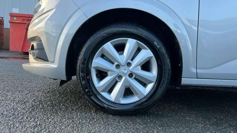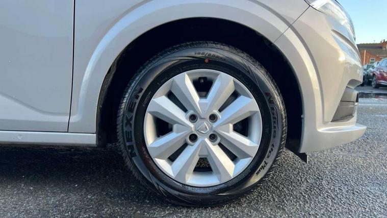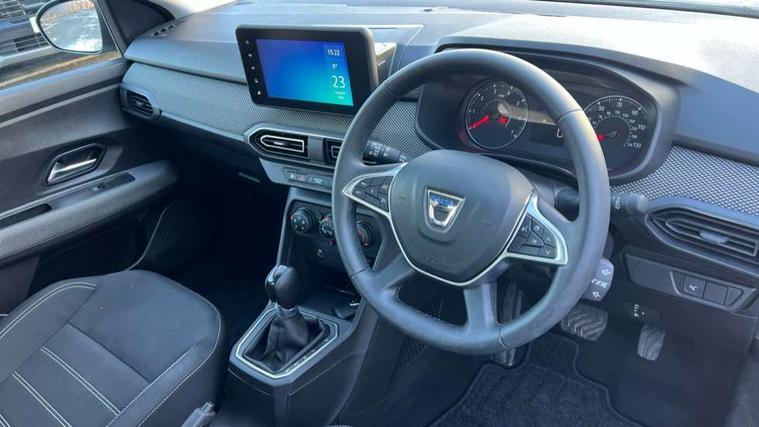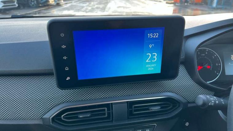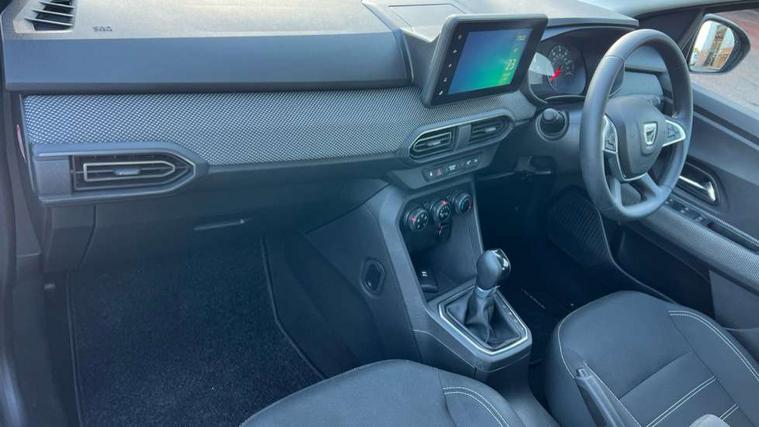 3.5" TFT instrument panel with on-board computer, Cruise control with speed limiter, eCall emergency call system, Eco mode, Electric power assisted steering, Rear parking sensors, Rev counter, Reversing camera, Stop/start system, 8" Media display - DAB radio, smartphone replication, bluetooth, 4 speakers, Apple CarPlay and Android Auto, Pre-wiring for radio and speakers, USB connection for data transfer and charging, USB socket, 3 speed windscreen wipers, Auto lighting, Automatic wipers, Black radiator grille, Body colour door handles, Body colour door mirrors, Body coloured bumpers, Electrically adjustable and heated door mirrors, Front fog lights, Heated rear window, High level third brake light, LED automatic daytime running lights, LED Y shape Dacia signature lighting, One touch electric front windows, Rain sensor, Rear electric windows, Rear side wing doors, Rear wash/wipe, Tinted windows, 1/3 to 2/3 split folding rear seats, 12 volt front socket, 12 volt rear socket, 3 height adjustable rear headrests, 3 seat rear bench, Double satin chrome air vents, Driver + passenger vanity mirrors, Fabric upholstery, Fixed smartphone holder on dashboard, Front armrest, Height adjustable driver seat, Height adjustable front headrests, Height/depth adjustable steering wheel, Isofix points for child seats in both outer rear seats, Manual air conditioning, Satin chrome interior door handles, Single front passenger seat, Soft feel steering wheel, Steering wheel controls, 3x3 point rear seatbelts, ABS and Emergency brake assist, Automatic emergency braking system, Child locks on rear doors, Door open warning, Driver airbag, ESC (Electronic Stability Control), ESP (Electronic Stability Program) + Hill Start Assist, Front curtain airbags, Front seatbelt pretensioners, Front side airbags, Height adjustable front seatbelts, Passenger airbag, Seatbelt reminder for driver and front passenger, Tyre pressure monitor, Automatic central locking, Immobiliser, Keyless entry, Remote central locking, Decopart on instrument panel and door with textile, 15" Flex wheels with full wheel cap,