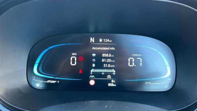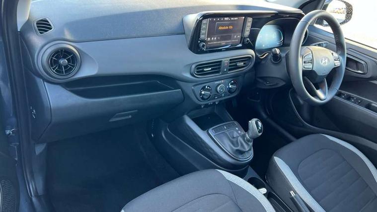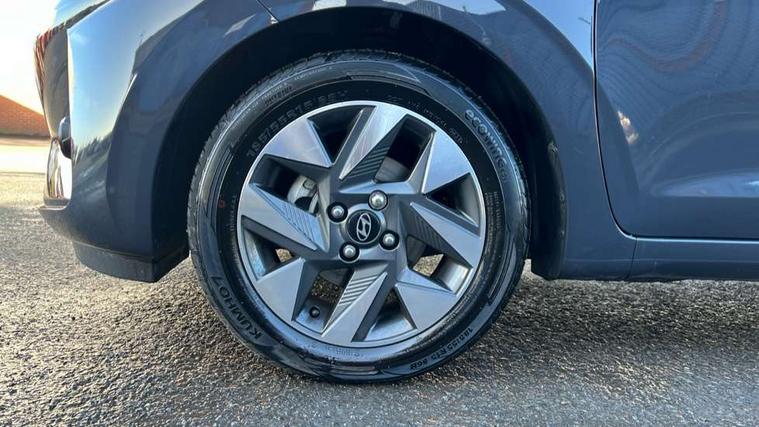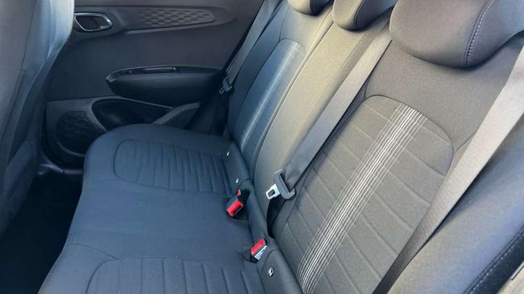 Apple car play/Android Auto, Bluelink mobile remote connectivity, Bluetooth connectivity with voice recognition, Cruise control, Driver attention alert system, eCall emergency call system, Forward Collision-Avoidance Assist (FCA) - Pedestrian/Cyclist, Front USB-C charging and USB-A data, Full-width 4.2" LCD instrument cluster, Intelligent speed limit assist, Lane departure warning system with lane keep assist - LKAS, Lane follow assist, PAS, Rear parking sensors, Rear view camera with guidelines, Roadside assistance, Start/Stop function, Tailgate, Trip computer, 2 front/2 rear speakers, Rear USB-C device charger, Steering wheel audio, phone and cruise controls, 1 speed non intermittent rear windscreen wiper, Black finish on B pillars, Body colour door handles, Body coloured bumpers, Body coloured door mirrors, Electric front windows, Electric rear windows, Electrically adjustable and heated door mirrors, Flat metal emblem, Front grille in matte black, Front intermittent wipers, Halogen daytime running lights, Halogen headlights, Headlights inner with Black Blade design, Heated rear window, High beam assist, Indicator light on door mirrors, Rear roof spoiler with integrated LED brake light, Rear side wing doors, 12v power outlet - front, 3 seat bench in 2nd row, 60/40 split folding flat to floor rear seats, Air conditioning, Auto light control, Bottle holders in front/rear doors + front centre console, Cabin and luggage compartment interior lighting, Cloth upholstery, Driver + passenger vanity mirrors, Driver's seat height adjustment, Driver/passenger sunvisors with ticket holders, Floor mats, Front door pockets, Front Head Restraints - Vertical and Horizontal Adjustment, Glove compartment, Height adjustable steering column, Isofix child seat preparation, Leather multifunction steering wheel, Rear door pockets, Single front passenger seat, Vertical adjustment rear head restraints, 3x3 point rear seatbelts, Airbags - front, front side and curtain airbags, Anti-lock brake system (ABS), Autonomous emergency braking (AEB) with forward collision warning system, Brake assist function, Childproof rear door locks, Electronic stability control, Front and rear seatbelt reminder, Front seatbelt pretensioners, Hill start assist control (HAC), Passenger airbag deactivate switch, Traction control, Tyre pressure monitoring system, Immobiliser, Perimeter alarm, Rear occupant alert, Remote central locking, Second remote key, Speed sensitive auto door locking, 15" Alloy wheels, Tyre repair kit,