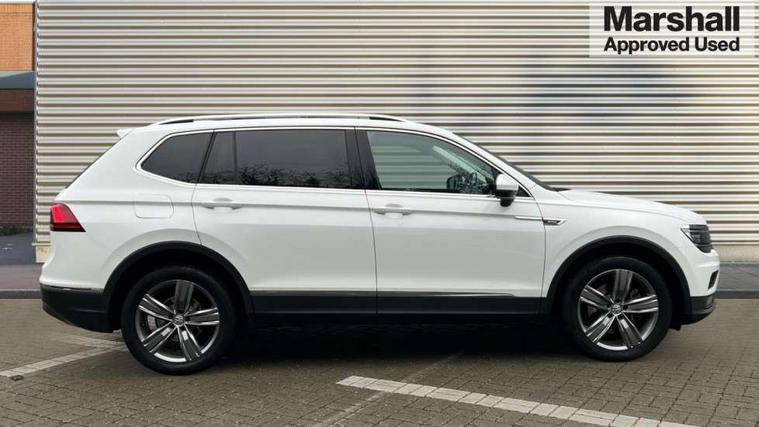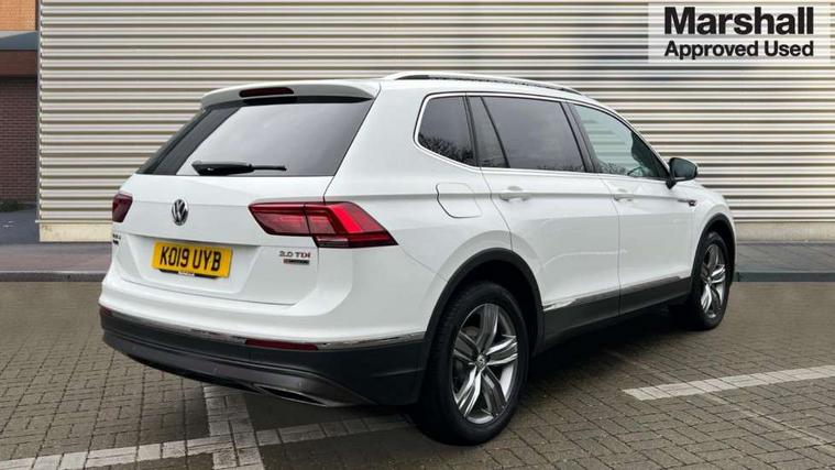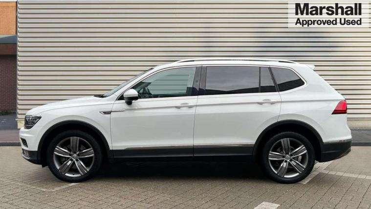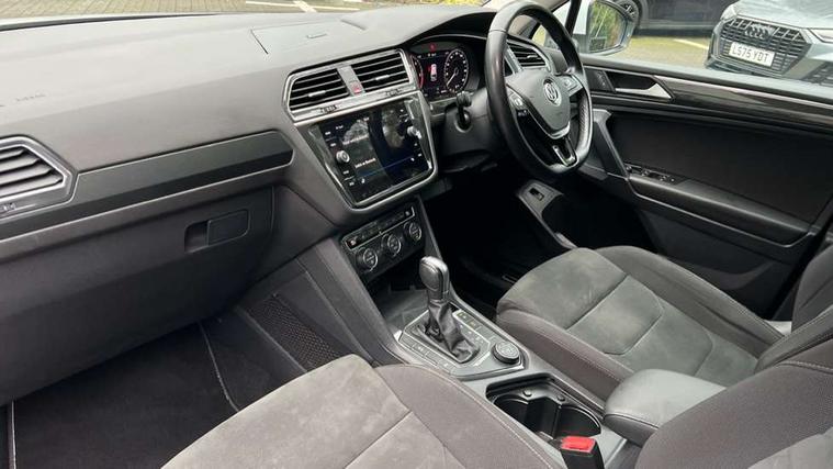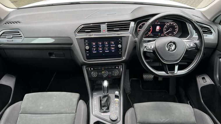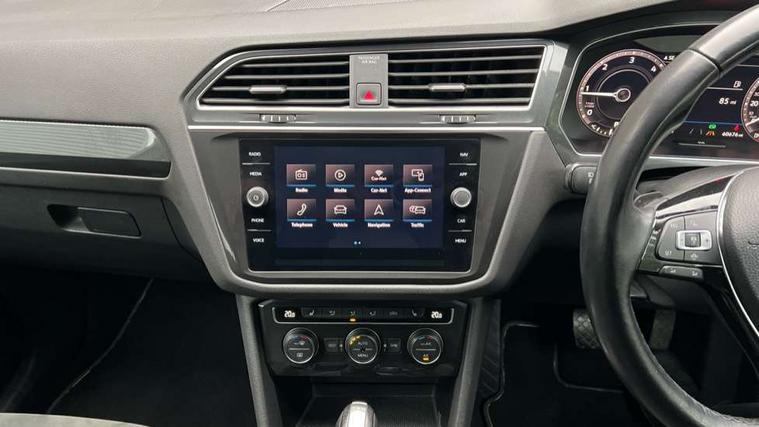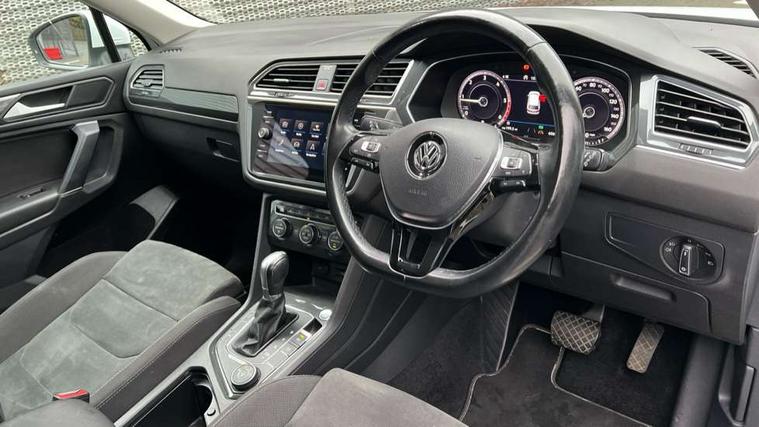 Active information display, Adaptive cruise control, App-Connect, Bluetooth phone integration system, Car-Net Security and Service, Coasting function, Drive mode selector, Driver alert system, Driver profile selection, Fatigue detection system, Front assist, radar sensor controlled distance monitor, city emergency braking + predictive pedestrian protection, Fully electric tailgate + keyless entry and start, Instrument cluster, Lane assist, Low washer fluid warning light, Outside temperature display, Service interval indicator, Speed limiter, Start/Stop function, Warning sound and light for doors and tailgate open, Battery regeneration during braking, Diesel particulate filter, Misfuel prevention device, 2x USB sockets in front, 4 X 20 watt output, Aux-in socket, DAB Digital radio, Dynamic navigation based on TMC+, Music playback - MP3, WMA and AAC files, SD card slot, Simultaneous pairing of 2 compatible mobile devices, SMS Functionality, Three route options - Fast, Short, Eco, Title and cover art display, Volkswagen media control, 3D effect cherry red LED rear tail lights, Auto dimming interior mirror, Automatic activation of hazard warning lights, Black door protector with chrome inserts, Body colour door handles, Body colour door mirrors, Body coloured bumpers, Chrome side body trim, Chrome side window surrounds, Chrome trimmed radiator grille, Coming/leaving home lighting function, Door mirror puddle lights, Door sill protector, Dusk sensor + auto driving lights, Electric panoramic sunroof with sunblind, Electrically heated and foldable door mirrors, door mirror puddle lights and reverse activated kerb view adjustment on passenger's door mirror, Front air intake with chrome strip, Front and rear electric windows, Heated rear window, Heated windscreen washer jets, High level 3rd brake light, LED headlights with dynamic light assist daytime running lights and cornering front fog lights, LED rear number plate lights, Rain sensor windscreen wipers, Rear tinted windows from B pillar back, Rear windscreen washer and wiper with interval delay, Silver anodised roof rails, Silver rear diffuser trim, Twin trapezoid chrome exhaust pipes, Windscreen wipers/ intermittent wipe + 4 position delay, 12V socket in centre console storage area, 12V socket in luggage compartment, 12V socket on rear of front centre armrest, 2 cup holders in front, 2 head restraints in 3rd row, 2 individual 3rd row seats, 3 head restraints in 2nd row, 3 single seats foldable in 2nd row, 3 zone climate control, 4 load lashing points, Assymetric split folding rear bench seat and backrest with centre armrest, Bag hook in luggage compartment, Driver + front passenger lumbar support, Foldable front passenger seat backrest, Front + rear carpet mats, Front centre armrest with storage compartment, longitudinal and height adjustable and two rear air vents, Front seatback folding tables, Height/reach adjust steering wheel, Illuminated driver/passenger vanity mirrors, Illuminated scuff plates, Instrument lighting white adjustable panel illumination, Interior light with delay, Isofix Preparation 2 Rear child seats, Load through provision with 2 cupholders when folded, Lockable cooled glovebox, Luggage compartment lighting, Luggage compartment side storage, Map pockets on front seats, Passenger seat height adjuster, Rear cupholders, Removable luggage cover, Sliding/reclining rear seats, Storage compartment in driver's door, Storage compartment in passenger's door, Storage tray on dashboard, Sunglasses storage, Variable boot floor, Ambient lighting pack - Tiguan, 3 point seatbelts on all seats, ABS+EBD+Brake assist, Active bonnet, Active pedestrian safety system, Curtain airbags, Driver/Front Passenger airbags, Driver/Passenger whiplash optimised head restraints, Drivers knee airbag, Electronic parking brake with auto hold, ESC with EDL, ASR, EDTC and trailer stabilisation function, First aid kit, Front and rear brake disc, Front seat side impact airbags, Front side airbags, Front ventilated brake discs, Head airbag system, Height adjustable front 3 point seatbelts + pretensioners, Hill hold control, Passenger airbag deactivate switch, Passenger knee airbag, Pre crash system, Rear side airbags, Rigid safety cell with front and rear crumple zones, Seatbelt warning lamp and buzzer, Two tone horn, Volkswagen roadside assistance, Warning sound and light for front seat belts if unfastened, Warning triangle, Alarm with interior protection, Electronic engine immobiliser, Remote central locking with 2 remote folding keys, Chrome door trim inserts, Dark grey decorative inserts in dash and door panel, Piano black interior trim, Steel space saver spare wheel,