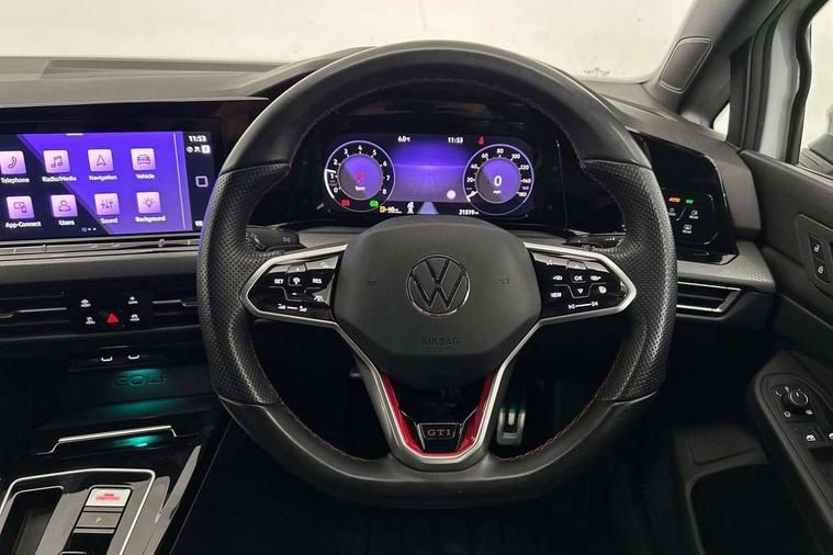 Adaptive cruise control (ACC) with speed limiter and front assist (reacting to vehicles pedestrians and cyclists), Car2X communication, Digital cockpit pro - 10.25" high resolution TFT dash display screen with customizable menus and information, Driver alert system, Dynamic road sign display, eCall - Emergency call service for SOS calls to emergency response, Lane assist, Lane change assistant, Mobile phone interface with wireless inductive charging function, Multifunction camera for distance control, PAS, Speedo, rev counter, electronic odometer, trip, service interval display, exterior temperature and fuel gauge, Start/Stop function, Travel assist with emergency side assist with electrically foldable door mirrors, USB-C ports in the front and rear centre console with increased charging performance, Warning buzzer and light for front seatbelts unfastened, Wireless app connect, Front differential lock, Petrol Particulate Filter, XDS electronic differential lock for improved traction and handling, Premium USB cable in choice of either Apple or Android smartphone compatibility, Ambient lighting, exterior illuminated styling elements at the sides, Auto dimming rear view mirror, Automatic headlamp activation with Coming home and Leaving home feature, Automatic headlights, Body colour bumpers, Body colour door handles, Body colour door mirrors with integrated indicators, Body colour rear roof spoiler, Chrome plated tailpipes (1 either side), Front and rear electric windows, GTI style bumpers, Heat insulating glass windscreen, Heated rear windscreen, High level 3rd brake light, Highway light, Illuminated front grille, IQ.Light - LED Matrix headlights, dynamic headlight control with advanced high beam control matrix dipped main beam + LED DRL + 22 LED lights, LED front fog lights with 5 honeycomb design, LED License plate illumination, LED rear combination lamp inlcuding dynamic turn signal, Rain sensor, Rear fog light on one side and reversing lights on both sides, Rear side wing doors, Rear tinted glass 65% light absorbing from B pillar backwards, Rear windscreen washer and wiper with interval delay, Remote electrically heated, adjustable and foldable door mirrors, including door mirror puddle lights and reverse activated kerb-view adjustment on pa, Welcome light, 12V socket in front centre console, 12V socket in luggage compartment, 3 rear head restraints, 3 seat bench in 2nd row, 3 zone climate with controls in the rear, Aluminium gear knob, Ambient lighting - Customisable 30 colour ambient lighting, Black roof lining, Brushed stainless steel pedals, Chrome plated surround to electric mirror button, window switch and air vent surrounds, Drivers and front passengers sun visors with vanity mirrors, Front + rear carpet mats in recycled material, Front centre armrest with storage compartment, Front cupholders x 2, Front passenger seat, Front reading lights x 2 incorporating LED technology, Front seat lumbar support adjuster, Front sports seats, Glovebox, GTI logo on backrest, Height adjustable front seats, Height and reach adjustable steering wheel, Isofix child seat preparation for 2 rear child seats and front passenger seat, Leather wrapped multifunction sports heated steering wheel with red stitiching + paddle shift, Leatherette door armrests and centre armrest, Luggage compartment lighting, Removable luggage compartment cover, Split folding backrest with centre armrest and unsplit rear seat bench, Woven fabric storage compartments in front and rear doors, 3 point height adj front seatbelts + pretensioners, 3 rear three point seatbelts, ABS, Child locks on rear doors, Driver and front passenger airbag with front passenger airbag deactivation, Drivers and front passengers safety optimised head restraints, Electronic parking brake with auto hold, ESC (Electronic Stability Control), Extended pedestrian protection measures, Front and rear passengers curtain airbag system including front side airbags, Front centre airbag, Front disc brakes, Front side airbags with curtain airbags, Rear disc brakes, Two tone horn, Tyre pressure monitoring system, Alarm with interior protection and deactivation via infotainment system, Electronic engine immobiliser, Keyless entry with start/stop button on centre console, Black metal chrome decorative inserts in dash and front door trim panels, High gloss black centre console, Soul dashboard,