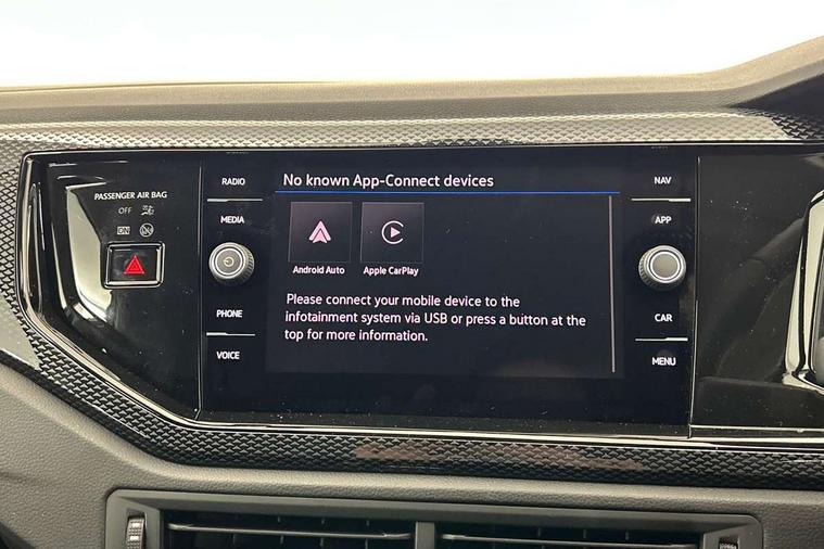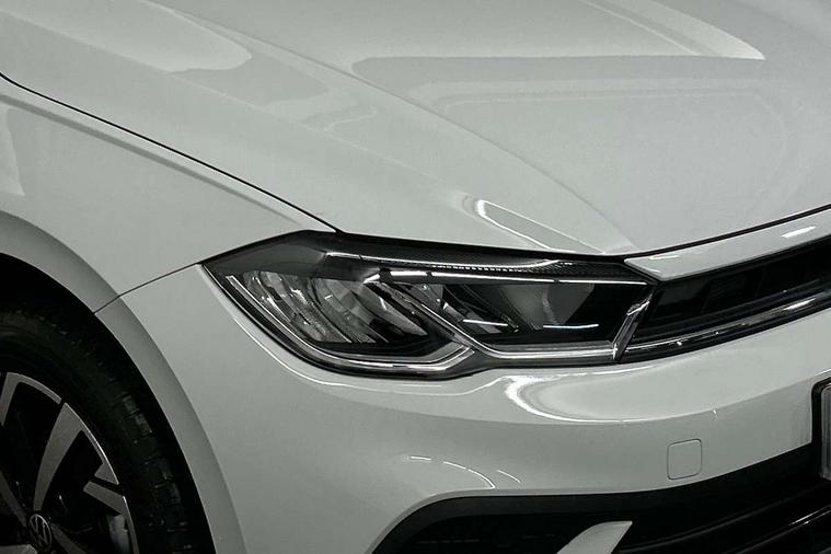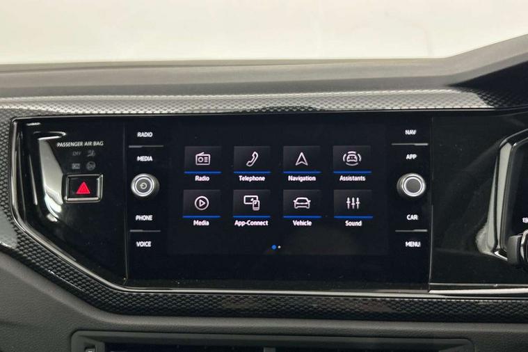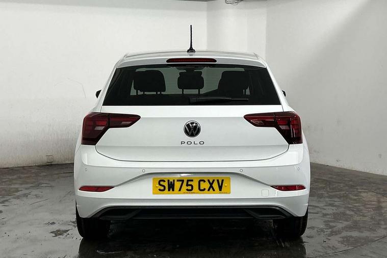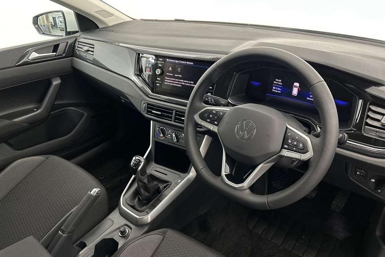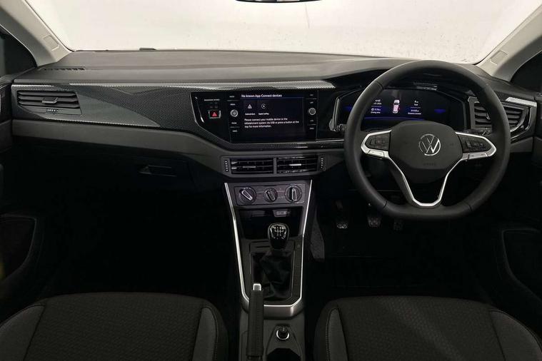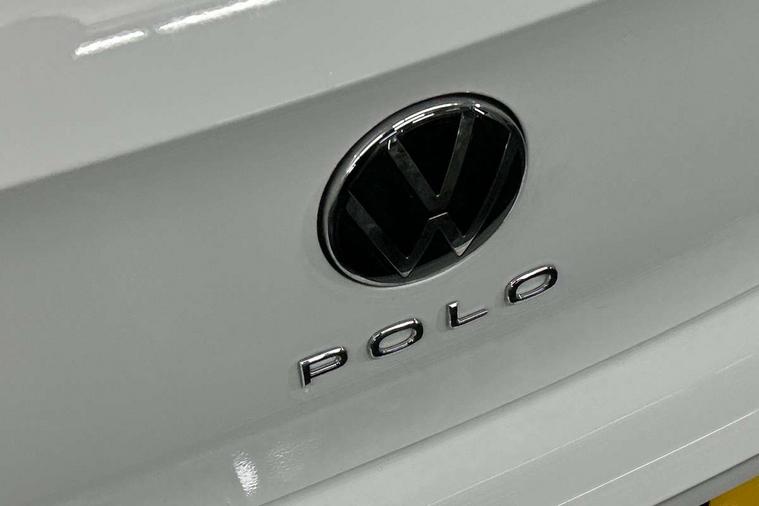 Adaptive cruise control without follow-to-stop and speed limiter, Advanced driver attention and drowsiness monitor, Bluetooth mobile phone interface, Dynamic road sign display, Emergency call service, Mobile phone preparation with inductive charging function, Multifunction front facing camera for distance control, Power assisted speed sensitive steering, Preparation for navigation system with media and internet package, Preparation for We connect and We connect plus, Rear view camera, Speedo and rev counter, electronic odometer, trip, service interval display and exterior temperature gauge, Standard rear axle, Travel Assist - Lane keeping system and traffic jam assist, Travel assist including emergency assist, Trip computer, Warning signal and warning light for front and rear seatbelts not fastened, Washer fluid level indicator, Wireless app connect, Front wheel drive, Rear shock absorpion, Start-stop system with battery regeneration (recuperation - energy recovery during braking), DAB Digital radio, Diversity antenna for FM reception, Automatic dimming interior rear view mirror, Automatic headlight control with LED separate daytime running lights with coming/leaving home function, Body colour bumpers with chrome inserts, Body colour door handles, Body colour door mirrors, Electric front windows, Engine badge deletion, Headlight range adjustment, Heat insulating and laminated safety glass windshield, LED Headlights, LED rear combination lamps, Power folding adjustable/heated exterior mirrors and front passenger exterior mirror lowering function, Rain sensor, Rear electric windows, Rear fog light, Rear side wing doors, Rear tinted glass from B-pillar backwards approx 65% tinted, Rear windscreen washer and wiper with interval delay, Third brake light, 12V power socket in centre console, 2 front and 2 rear reading lights with switch off delay and dimmer, 2 USB-C ports in the front, 2 USB-C charging sockets on the center console in the rear, 3 rear head restraints, 60/40 split folding rear seat and rear seat bench not split, Carpet mats, front and rear, Ceramique roof lining, Chrome plated radiator grille inserts, air vent surrounds and light switch surrounds, Door and side trim panel, Driver and front passenger seat height adjustment, Driver/passenger sunvisors with illuminated vanity mirrors, Front centre armrest, Front seat backrest storage pockets, Front standard seats, Handbrake lever handle in leather, Hartley/Thomas cloth upholstery, Headliner in recycled material, Isofix child seat preparation easy-fit (for two outer rear seats, and front passenger seat) compatible with I-size, Leather trimmed gear knob, Luggage compartment cover, Luggage compartment lighting, Removable luggage compartment floor, Single front passenger seat, Standard climatic zones, Standard pedal cluster, Three spoke leather wrapped multifunction steering wheel, Light and vision pack - Polo, 3 point height adj front seatbelts + pretensioners, 3 point seat belt for centre rear seat, 3 point seatbelts, outer rear with ECE lable, ABS, Driver and front passenger airbag with front passenger airbag deactivation, Drivers and front passengers safety optimised head restraints, ESC (Electronic stability control) + EDL (Electronic Differntial lock) and ASR (Traction control), Extended and predictive pedestrian/ cyclist protection, Front assist with autonomous emergency braking (for Adaptive Cruise Control ACC up to 130 mph), Front curtain and side airbags with center airbag, Front disc brakes, Hill hold control, Manual child lock in rear doors, Rear drum brakes, Single tone horn, Tyre pressure loss indicator, Alarm with interior protection, Anti-theft alarm system with interior monitoring, backup horn, and towing protection, Anti-theft wheel bolts, Electronic engine immobiliser, Lava stone black gloss/matt decorative inserts in dash and front door panels, 16" Torsby alloy wheels, Low rolling resistance tyres,