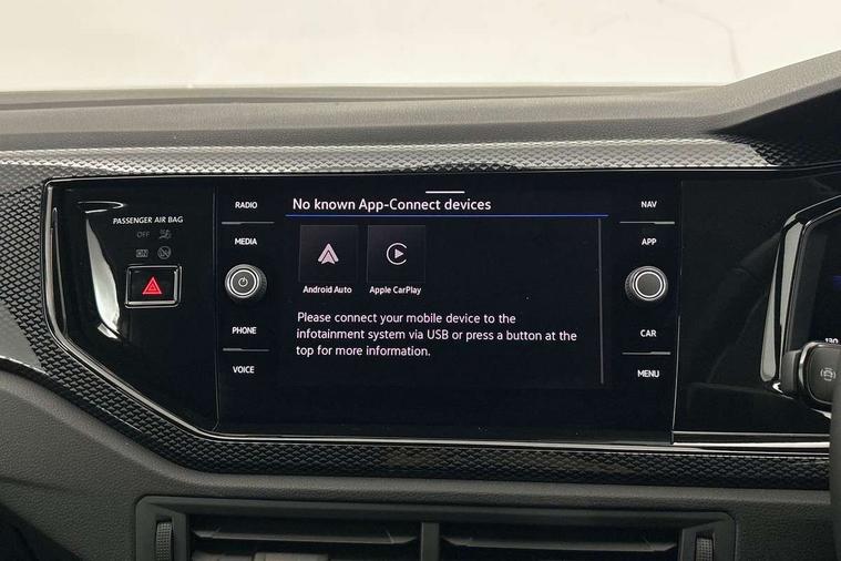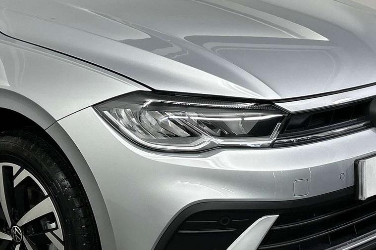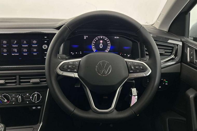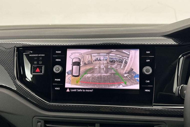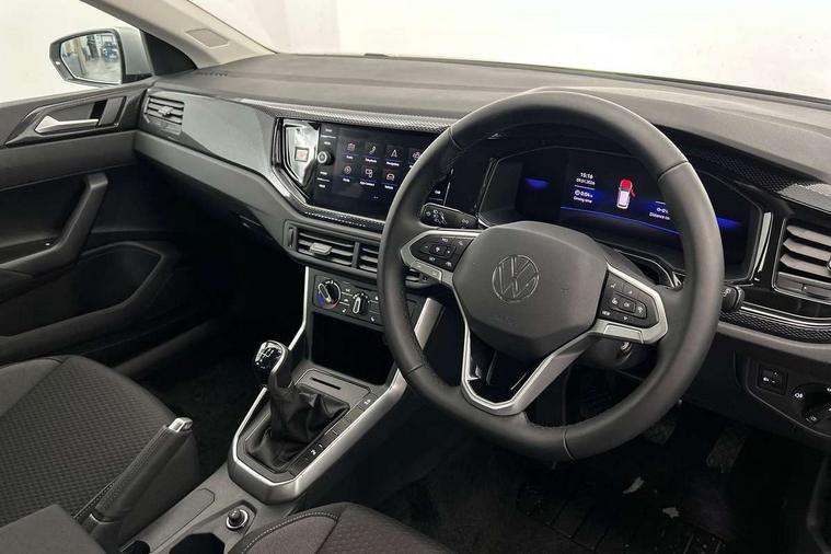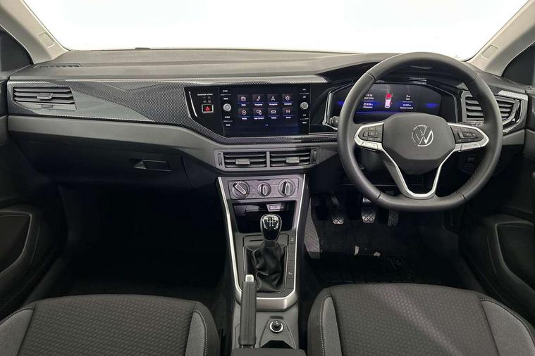Adaptive cruise control without follow-to-stop and speed limiter, Advanced driver attention and drowsiness monitor, Bluetooth mobile phone interface, Dynamic road sign display, Emergency call service, Mobile phone preparation with inductive charging function, Multifunction front facing camera for distance control, Power assisted speed sensitive steering, Preparation for navigation system with media and internet package, Preparation for We connect and We connect plus, Rear view camera, Speedo and rev counter, electronic odometer, trip, service interval display and exterior temperature gauge, Standard rear axle, Travel Assist - Lane keeping system and traffic jam assist, Travel assist including emergency assist, Trip computer, Warning signal and warning light for front and rear seatbelts not fastened, Washer fluid level indicator, Wireless app connect, Front wheel drive, Rear shock absorpion, Start-stop system with battery regeneration (recuperation - energy recovery during braking), DAB Digital radio, Diversity antenna for FM reception, Automatic dimming interior rear view mirror, Automatic headlight control with LED separate daytime running lights with coming/leaving home function, Body colour bumpers with chrome inserts, Body colour door handles, Body colour door mirrors, Electric front windows, Engine badge deletion, Headlight range adjustment, Heat insulating and laminated safety glass windshield, LED Headlights, LED rear combination lamps, Power folding adjustable/heated exterior mirrors and front passenger exterior mirror lowering function, Rain sensor, Rear electric windows, Rear fog light, Rear side wing doors, Rear tinted glass from B-pillar backwards approx 65% tinted, Rear windscreen washer and wiper with interval delay, Third brake light, 12V power socket in centre console, 2 front and 2 rear reading lights with switch off delay and dimmer, 2 USB-C ports in the front, 2 USB-C charging sockets on the center console in the rear, 3 rear head restraints, 60/40 split folding rear seat and rear seat bench not split, Carpet mats, front and rear, Ceramique roof lining, Chrome plated radiator grille inserts, air vent surrounds and light switch surrounds, Door and side trim panel, Driver and front passenger seat height adjustment, Driver/passenger sunvisors with illuminated vanity mirrors, Front centre armrest, Front seat backrest storage pockets, Front standard seats, Handbrake lever handle in leather, Hartley/Thomas cloth upholstery, Headliner in recycled material, Isofix child seat preparation easy-fit (for two outer rear seats, and front passenger seat) compatible with I-size, Leather trimmed gear knob, Luggage compartment cover, Luggage compartment lighting, Removable luggage compartment floor, Single front passenger seat, Standard climatic zones, Standard pedal cluster, Three spoke leather wrapped multifunction steering wheel, Light and vision pack - Polo, 3 point height adj front seatbelts + pretensioners, 3 point seat belt for centre rear seat, 3 point seatbelts, outer rear with ECE lable, ABS, Driver and front passenger airbag with front passenger airbag deactivation, Drivers and front passengers safety optimised head restraints, ESC (Electronic stability control) + EDL (Electronic Differntial lock) and ASR (Traction control), Extended and predictive pedestrian/ cyclist protection, Front assist with autonomous emergency braking (for Adaptive Cruise Control ACC up to 130 mph), Front curtain and side airbags with center airbag, Front disc brakes, Hill hold control, Manual child lock in rear doors, Rear drum brakes, Single tone horn, Tyre pressure loss indicator, Alarm with interior protection, Anti-theft alarm system with interior monitoring, backup horn, and towing protection, Anti-theft wheel bolts, Electronic engine immobiliser, Lava stone black gloss/matt decorative inserts in dash and front door panels, 16" Torsby alloy wheels, Low rolling resistance tyres,
