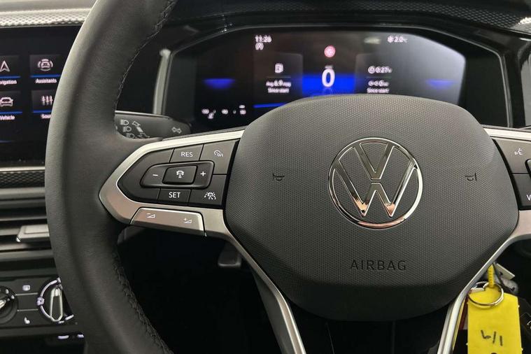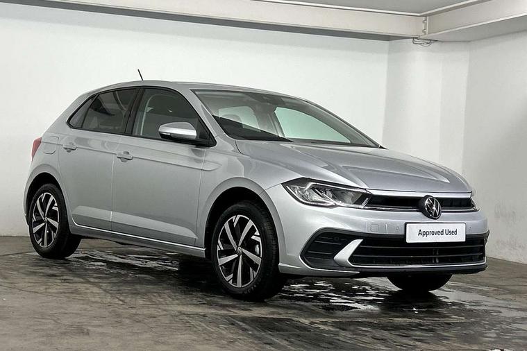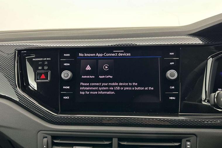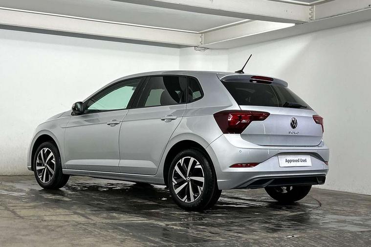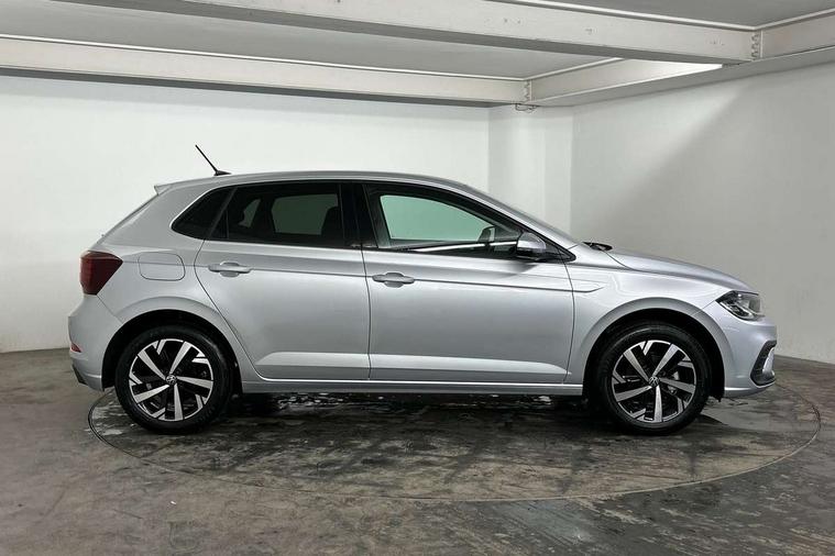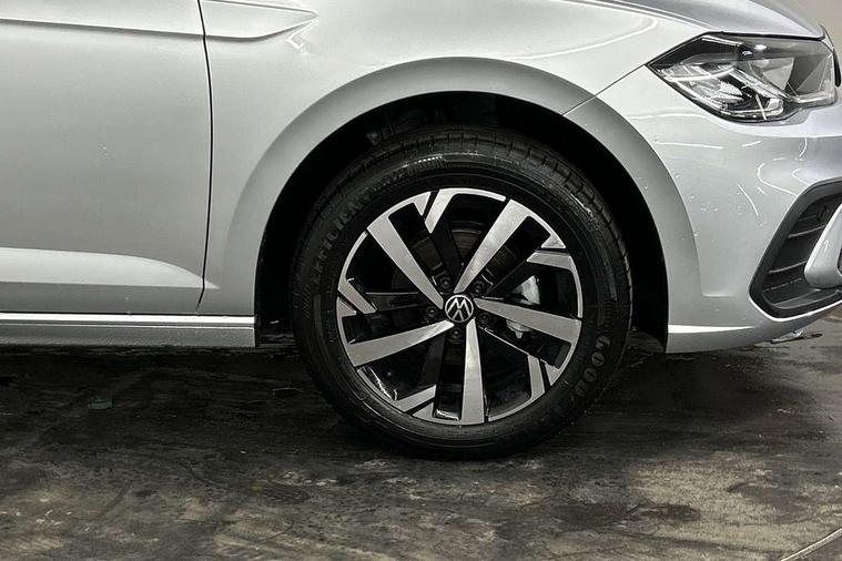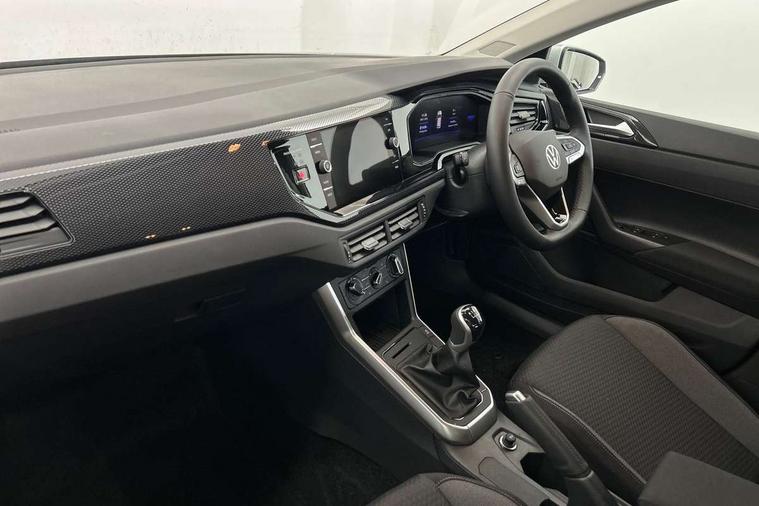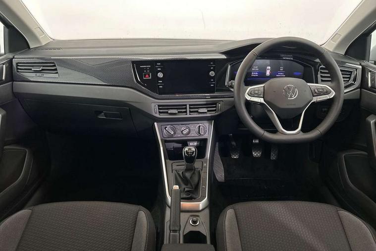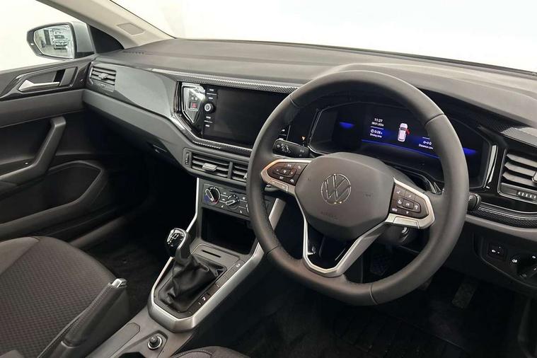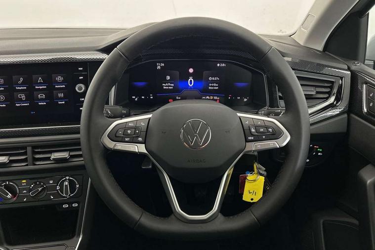 Adaptive cruise control without follow-to-stop and speed limiter, Advanced driver attention and drowsiness monitor, Bluetooth mobile phone interface, Dynamic road sign display, Emergency call service, Mobile phone preparation with inductive charging function, Multifunction front facing camera for distance control, Power assisted speed sensitive steering, Preparation for navigation system with media and internet package, Preparation for We connect and We connect plus, Rear view camera, Speedo and rev counter, electronic odometer, trip, service interval display and exterior temperature gauge, Standard rear axle, Travel Assist - Lane keeping system and traffic jam assist, Travel assist including emergency assist, Trip computer, Warning signal and warning light for front and rear seatbelts not fastened, Washer fluid level indicator, Wireless app connect, Front wheel drive, Rear shock absorpion, Start-stop system with battery regeneration (recuperation - energy recovery during braking), DAB Digital radio, Diversity antenna for FM reception, Automatic dimming interior rear view mirror, Automatic headlight control with LED separate daytime running lights with coming/leaving home function, Body colour bumpers with chrome inserts, Body colour door handles, Body colour door mirrors, Electric front windows, Engine badge deletion, Headlight range adjustment, Heat insulating and laminated safety glass windshield, LED Headlights, LED rear combination lamps, Power folding adjustable/heated exterior mirrors and front passenger exterior mirror lowering function, Rain sensor, Rear electric windows, Rear fog light, Rear side wing doors, Rear tinted glass from B-pillar backwards approx 65% tinted, Rear windscreen washer and wiper with interval delay, Third brake light, 12V power socket in centre console, 2 front and 2 rear reading lights with switch off delay and dimmer, 2 USB-C ports in the front, 2 USB-C charging sockets on the center console in the rear, 3 rear head restraints, 60/40 split folding rear seat and rear seat bench not split, Carpet mats, front and rear, Ceramique roof lining, Chrome plated radiator grille inserts, air vent surrounds and light switch surrounds, Door and side trim panel, Driver and front passenger seat height adjustment, Driver/passenger sunvisors with illuminated vanity mirrors, Front centre armrest, Front seat backrest storage pockets, Front standard seats, Handbrake lever handle in leather, Hartley/Thomas cloth upholstery, Headliner in recycled material, Isofix child seat preparation easy-fit (for two outer rear seats, and front passenger seat) compatible with I-size, Leather trimmed gear knob, Luggage compartment cover, Luggage compartment lighting, Removable luggage compartment floor, Single front passenger seat, Standard climatic zones, Standard pedal cluster, Three spoke leather wrapped multifunction steering wheel, Light and vision pack - Polo, 3 point height adj front seatbelts + pretensioners, 3 point seat belt for centre rear seat, 3 point seatbelts, outer rear with ECE lable, ABS, Driver and front passenger airbag with front passenger airbag deactivation, Drivers and front passengers safety optimised head restraints, ESC (Electronic stability control) + EDL (Electronic Differntial lock) and ASR (Traction control), Extended and predictive pedestrian/ cyclist protection, Front assist with autonomous emergency braking (for Adaptive Cruise Control ACC up to 130 mph), Front curtain and side airbags with center airbag, Front disc brakes, Hill hold control, Manual child lock in rear doors, Rear drum brakes, Single tone horn, Tyre pressure loss indicator, Alarm with interior protection, Anti-theft alarm system with interior monitoring, backup horn, and towing protection, Anti-theft wheel bolts, Electronic engine immobiliser, Lava stone black gloss/matt decorative inserts in dash and front door panels, 16" Torsby alloy wheels, Low rolling resistance tyres,