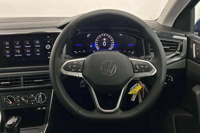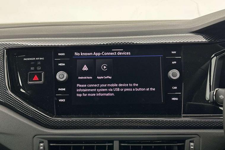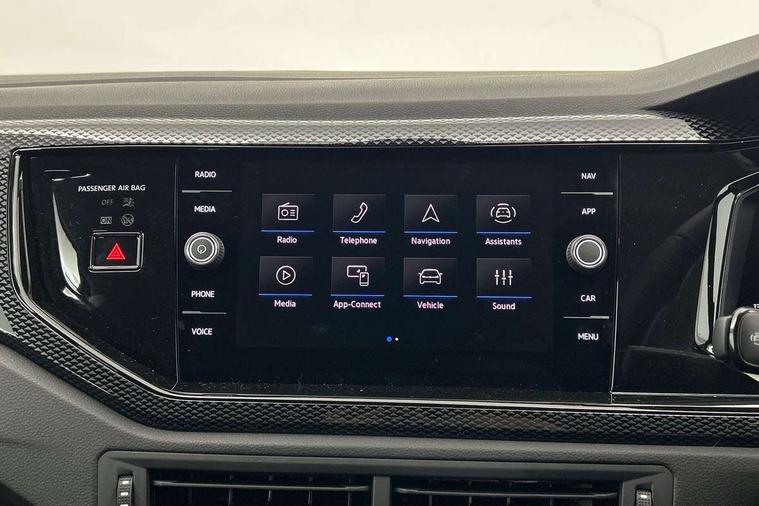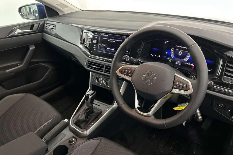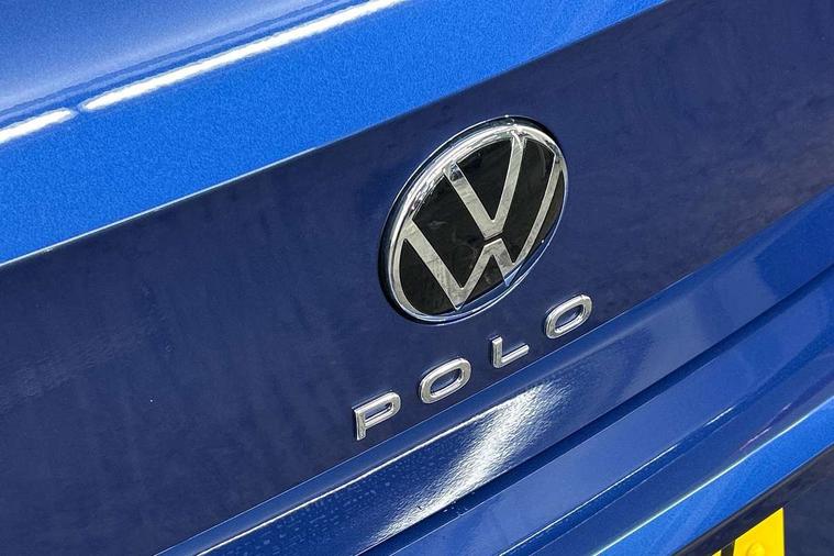 Advanced driver attention and drowsiness monitor, Bluetooth mobile phone interface, Dynamic road sign display, Emergency call service, Mobile phone preparation with inductive charging function, Multifunction front facing camera for distance control, Power assisted speed sensitive steering, Predictive adaptive cruise control without follow-to-stop and speed limiter, Preparation for navigation system with media and internet package, Preparation for We connect and We connect plus, Rear view camera, Speedo and rev counter, electronic odometer, trip, service interval display and exterior temperature gauge, Standard rear axle, Travel Assist - Lane keeping system and traffic jam assist, Travel assist including emergency assist, Trip computer, Warning signal and warning light for front and rear seatbelts not fastened, Washer fluid level indicator, Wireless app connect, Front wheel drive, Rear shock absorpion, Start-stop system with battery regeneration (recuperation - energy recovery during braking), DAB Digital radio, Diversity antenna for FM reception, Automatic dimming interior rear view mirror, Automatic headlight control with LED separate daytime running lights with coming/leaving home function, Body colour bumpers with chrome inserts, Body colour door handles, Body colour door mirrors, Electric front windows, Engine badge deletion, Headlight range adjustment, Heat insulating and laminated safety glass windshield, LED Headlights, LED rear combination lamps, Power folding adjustable/heated exterior mirrors and front passenger exterior mirror lowering function, Rain sensor, Rear electric windows, Rear fog light, Rear side wing doors, Rear tinted glass from B-pillar backwards approx 65% tinted, Rear windscreen washer and wiper with interval delay, Third brake light, 12V power socket in centre console, 2 front and 2 rear reading lights with switch off delay and dimmer, 2 USB-C ports in the front, 2 USB-C charging sockets on the center console in the rear, 3 rear head restraints, 60/40 split folding rear seat and rear seat bench not split, Carpet mats, front and rear, Ceramique roof lining, Chrome plated radiator grille inserts, air vent surrounds and light switch surrounds, Door and side trim panel, Driver and front passenger seat height adjustment, Driver/passenger sunvisors with illuminated vanity mirrors, Front centre armrest, Front seat backrest storage pockets, Front standard seats, Handbrake lever handle in leather, Hartley/Thomas cloth upholstery, Headliner in recycled material, Isofix child seat preparation easy-fit (for two outer rear seats, and front passenger seat) compatible with I-size, Leather trimmed gear knob, Luggage compartment cover, Luggage compartment lighting, Removable luggage compartment floor, Single front passenger seat, Standard climatic zones, Standard pedal cluster, Three spoke leather wrapped multifunction steering wheel with shifting paddles, Light and vision pack - Polo, 3 point height adj front seatbelts + pretensioners, 3 point seat belt for centre rear seat, 3 point seatbelts, outer rear with ECE lable, ABS, Driver and front passenger airbag with front passenger airbag deactivation, Drivers and front passengers safety optimised head restraints, ESC (Electronic stability control) + EDL (Electronic Differntial lock) and ASR (Traction control), Extended and predictive pedestrian/ cyclist protection, Front assist with autonomous emergency braking (for Adaptive Cruise Control ACC up to 130 mph), Front curtain and side airbags with center airbag, Front disc brakes, Hill hold control, Manual child lock in rear doors, Rear drum brakes, Single tone horn, Tyre pressure loss indicator, Alarm with interior protection, Anti-theft alarm system with interior monitoring, backup horn, and towing protection, Anti-theft wheel bolts, Electronic engine immobiliser, Lava stone black gloss/matt decorative inserts in dash and front door panels, 16" Torsby alloy wheels, Low rolling resistance tyres,