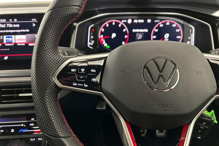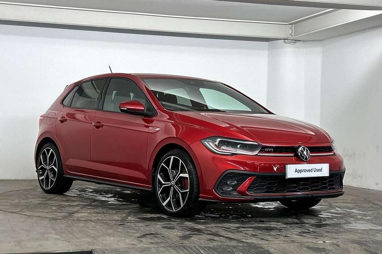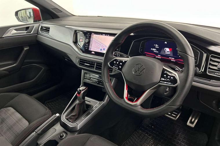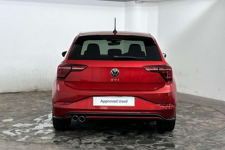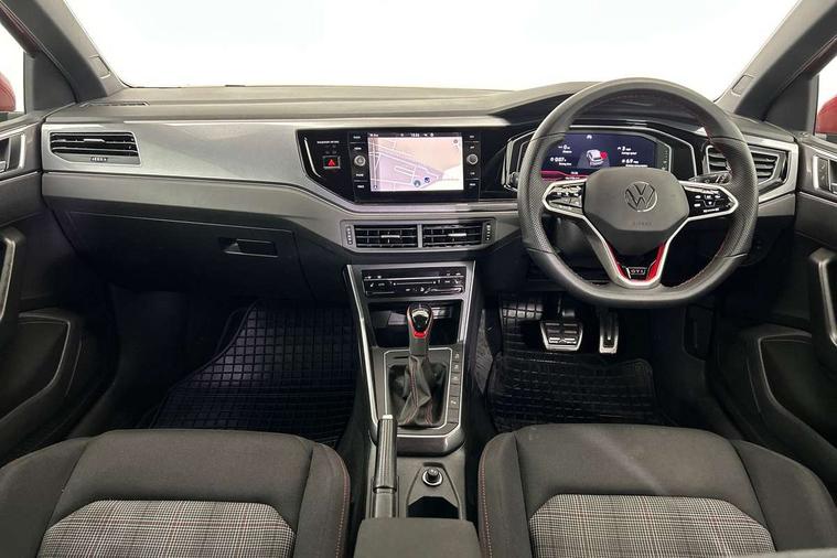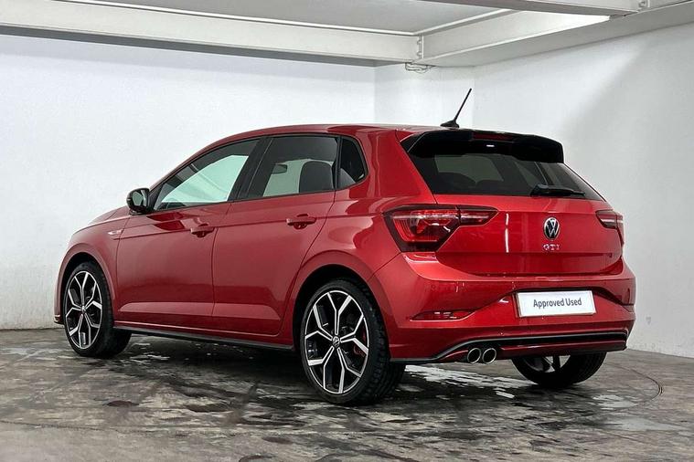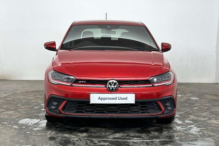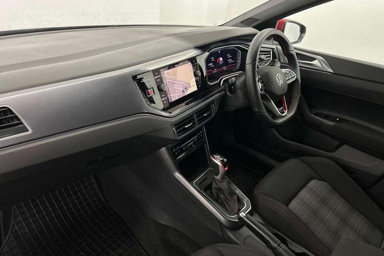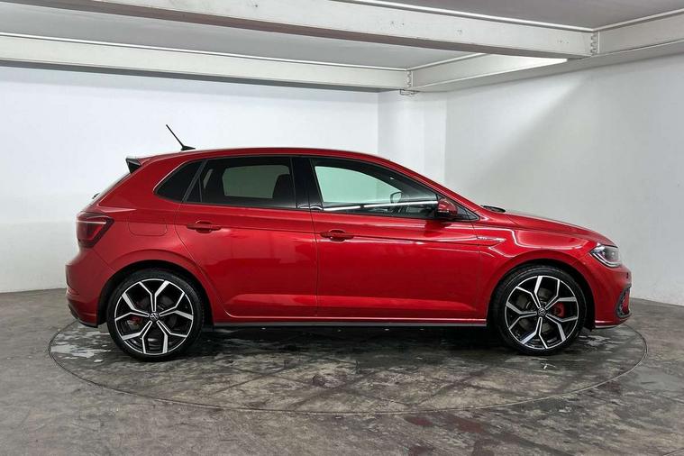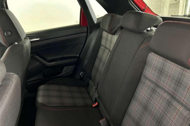 Adaptive cruise control with follow-to-stop and speed limiter, Bluetooth mobile phone interface, Digital Cockpit Pro with 10.25" Display, Driver alert system, Dynamic road sign display, Eco mode, Emergency call service, Power assisted speed sensitive steering, Preparation for We connect and We connect plus, Speedo and rev counter, electronic odometer, trip, service interval display and fuel gauge, Travel Assist - Lane keeping system and traffic jam assist, Travel assist including emergency assist, Trip computer, Warning signal and warning light for front and rear seatbelts not fastened, Washer fluid level indicator, Wireless app connect, Adaptive chassis control including driving profile selection, Front wheel drive, Heavy duty rear axle, Rear shock absorpion sports version, Sports select suspension lowered by 15mm, Start-stop system with battery regeneration (recuperation - energy recovery during braking), XDS electronic differential lock for improved traction and handling, DAB Digital radio, Diversity antenna for FM reception, Front and rear 6 speakers, Body colour bumpers, Body colour door handles, Electric front windows, Front fog lights with static cornering function, Front scuff plates in aluminium with GTI logo, Heat insulating darkened glass in side and rear windows, Heat insulating glass windscreen, Power folding adjustable/heated exterior mirrors and front passenger exterior mirror lowering function, Rear electric windows, Rear fog light, Rear side wing doors, Rear windscreen washer and wiper with interval delay, Sport bumpers with air intakes with honeycomb structure, Third brake light, Twin chrome exhaust tailpipes, 12V power socket in centre console, 2 USB-C ports in the front, 2 USB-C charging sockets on the center console in the rear, 3 rear head restraints, 60/40 split folding rear seat and rear seat bench not split, Air care climatronic air conditoning system with active combination filter and 2-zone temperature control, Black roof lining, Ceramique headliner, Chrome plated radiator grille inserts, air vent surrounds and light switch surrounds, Door and side trim panel, Driver and front passenger seat height adjustment, Driver/passenger sunvisors with illuminated vanity mirrors, Front + rear carpet mats, Front centre armrest, Front footwell illumination, Front seat backrest storage pockets, GTI sports gearshift knob in aluminium leather, Handbrake lever handle in leather, Isofix child seat preparation easy-fit (for two outer rear seats, and front passenger seat) compatible with I-size, LED interior light with switch off delay and dimmer, 2 reading lights front and rear, Luggage compartment cover, Luggage compartment floor, Luggage compartment lighting, Single front passenger seat, Stainless steel pedals, Standard pedal cluster, Three spoke leather wrapped multifunction sports steering wheel with shifting paddles, IQ LED matrix headlights pack - Polo, Light and sight pack - Polo GTI, Sports suspension pack - Polo, 3 point height adj front seatbelts + pretensioners, 3x3 point rear seatbelts, ABS, Driver and front passenger airbag with front passenger airbag deactivation, Drivers and front passengers safety optimised head restraints, ESC (Electronic stability control) + EDL (Electronic Differntial lock) and ASR (Traction control), Extended and predictive pedestrian/ cyclist protection, Front and rear disc brakes with red brake calipers, Front curtain and side airbags with center airbag, Hill hold control, Manual child lock in rear doors, Two tone horn, Tyre pressure loss indicator, Alarm with interior protection, Anti-theft alarm system with interior monitoring, backup horn, and towing protection, Anti-theft wheel bolts, Electronic engine immobiliser, Chrome applications on rotary light, mirror adjustment, window regulator switches, outlet with frame in black, Low rolling resistance tyres,