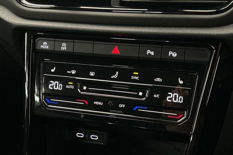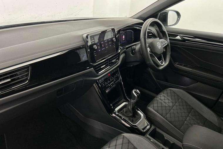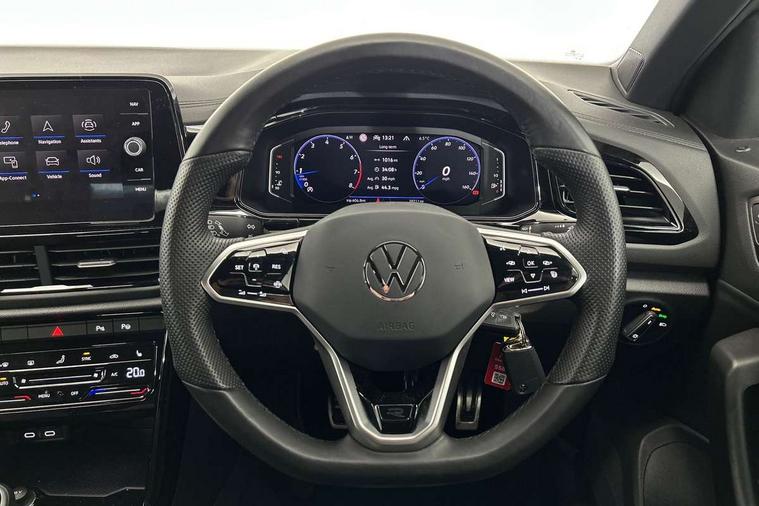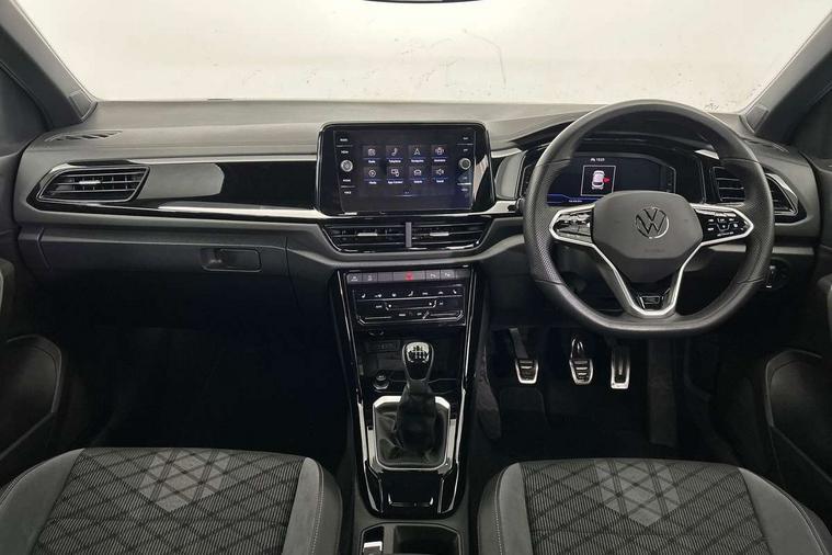 10.25" Digital cockpit pro, Bluetooth mobile phone interface, Driver alert system with fatigue detection, Driver tips and journey analysis, Emergency call service, Lane keeping system Lane Assist, Modified key software - reduce switch off time for key status change to Long no motion, Online services, Park assist including front and rear parking sensors, Service interval indicator, Tailgate/trunk lid release from outside, Think blue trainer driver tips and journey analysis, Warning sound and light for front seatbelts unfastened, Wireless app connect, Battery regeneration during braking, Start/stop function with battery regeneration, Diversity antenna for FM reception, Front and rear 6 speakers, Music playback - MP3, WMA and AAC files, Premium USB cable in choice of either Apple or Android smartphone compatibility, SD card slot, Simultaneous pairing of 2 compatible mobile devices, Title and cover art display, We Connect and We Connect Plus functionality, 3rd brake light, Auto dimming interior rear view mirror, Automatic hazard lights activation under emergency braking, Automatic headlight control with LED separate daytime running lights with coming/leaving home function, Extended roof spoiler, Exterior mirrors aspherical on driver side, convex on front passenger side, External USB type C socket and charging sockets, Front windscreen wiper with intermittent wipe and 4 position delay, Heated rear window, LED Plus headlamps, LED rear combination lamps, LED rear number plate lights, LED tail lamp rear comination lamps, Power windows with comfort operation and circuit breaker, R-Line design body coloured bumpers, Rain sensor, Rear exhaust tailpipe, Rear fog light on one side and reversing lights on both sides, Rear side wing doors, Rear wash/wipe with intermittent wipe setting, Remote electrically foldable door mirrors, puddle lights and reverse activated passenger's door mirror, 12V power socket in centre console, 3 rear head restraints, 3 seat bench in 2nd row, 4 load lashing points in luggage compartment, Air care climatronic air conditoning system with active combination filter and 2-zone temperature control, Black roof lining, Chrome plated radiator grille inserts, air vent surrounds and light switch surrounds, Door and side trim panel with leatherette insert, Drawer under drivers seat, Front + rear carpet mats, Front centre armrest, Front cupholders x 2, Front footwell illumination, Front reading light, Front scuff plates with R logo, Instrument lighting, white adjustable panel illumination, Interior ambient lighting and surround lighting, Interior light delay, Isofix child seat preparation, Leather gearshift handle, Load-through provision with cup holder when folded down ('Unsplit rear seat bench, split folding backrest, with centre armrest), Luggage compartment lighting, Single front passenger seat, Stainless steel pedals, Storage compartment in left and right luggage area, Storage compartment in rear doors, Storage compartments in driver and front passenger doors, Sunvisors with illuminated vanity mirrors, Variable boot floor, height adjustable and removable, Driver assistance pack without proactive passenger protection - T-Roc, 3 point height adj front seatbelts + pretensioners, 3 point seatbelts in outer rear with ECE label, ABS, Child locks on rear doors, Driver and front passenger airbag with front passenger airbag deactivation, Driver and front passenger safety-optimised head restraints, Drivers seatbelt reminder, Electronic parking brake, Electronic Stability Control (ESC) inc EDL (Electronic Differential Lock) and ASR (Traction Control), Front and rear passengers curtain airbag system including front side airbags, Front assist with city emergency braking and pedestrian monitoring, Front seat side impact airbags, Hill start assist, Predictive pedestrian protection, Rear disc brakes, Single tone horn, Tyre pressure loss indicator, Volkswagen roadside assistance, Alarm with interior protection, Anti-theft alarm system with interior monitoring, backup horn, and towing protection, Remote central locking with SAFELOCK, radio remote control with 2 remote control folding keys, Trims for alloy wheels,