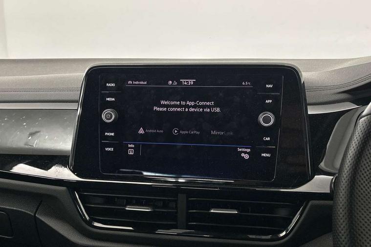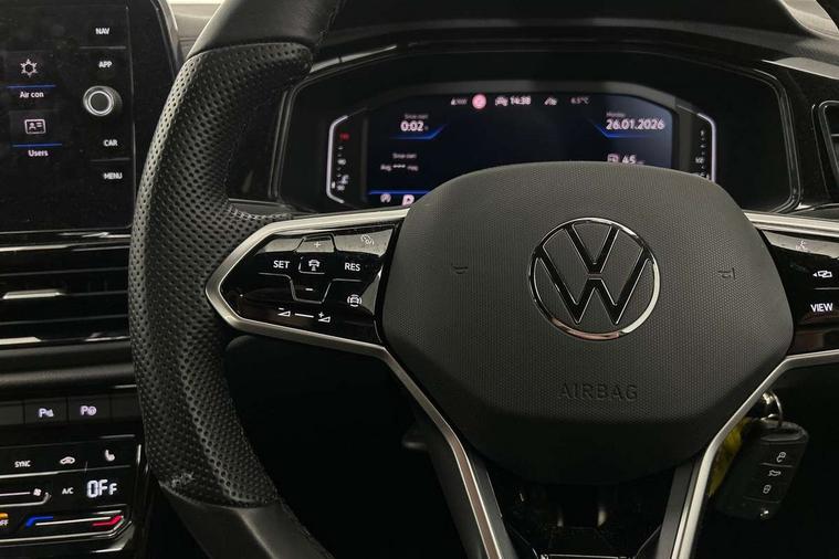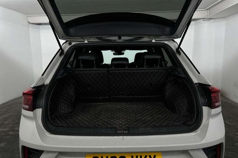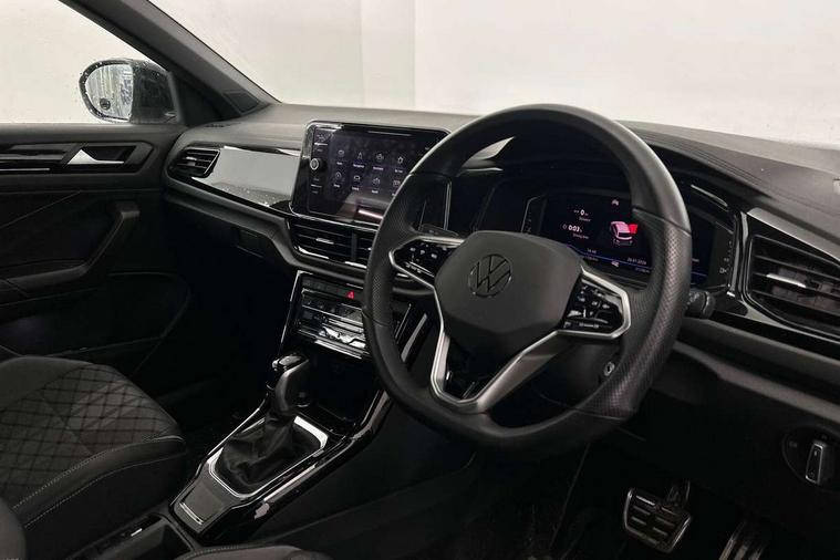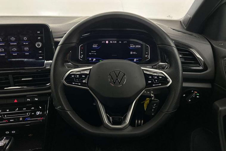 10.25" Digital cockpit pro, Bluetooth mobile phone interface, Driver alert system with fatigue detection, Driver tips and journey analysis, Emergency call service, Lane keeping system Lane Assist, Modified key software - reduce switch off time for key status change to Long no motion, Online services, Park assist including front and rear parking sensors, Service interval indicator, Tailgate/trunk lid release from outside, Think blue trainer driver tips and journey analysis, Warning sound and light for front seatbelts unfastened, Wireless app connect, Battery regeneration during braking, Start/stop function with battery regeneration, Diversity antenna for FM reception, Front and rear 6 speakers, Music playback - MP3, WMA and AAC files, Premium USB cable in choice of either Apple or Android smartphone compatibility, SD card slot, Simultaneous pairing of 2 compatible mobile devices, Title and cover art display, We Connect and We Connect Plus functionality, 3rd brake light, Auto dimming interior rear view mirror, Automatic hazard lights activation under emergency braking, Automatic headlight control with LED separate daytime running lights with coming/leaving home function, Extended roof spoiler, Exterior mirrors aspherical on driver side, convex on front passenger side, External USB type C socket and charging sockets, Front windscreen wiper with intermittent wipe and 4 position delay, Heated rear window, LED Plus headlamps, LED rear combination lamps, LED rear number plate lights, LED tail lamp rear comination lamps, Power windows with comfort operation and circuit breaker, R-Line design body coloured bumpers, Rain sensor, Rear exhaust tailpipe, Rear fog light on one side and reversing lights on both sides, Rear side wing doors, Rear wash/wipe with intermittent wipe setting, Remote electrically foldable door mirrors, puddle lights and reverse activated passenger's door mirror, 12V power socket in centre console, 3 rear head restraints, 3 seat bench in 2nd row, 4 load lashing points in luggage compartment, Air care climatronic air conditoning system with active combination filter and 2-zone temperature control, Black roof lining, Chrome plated radiator grille inserts, air vent surrounds and light switch surrounds, Door and side trim panel with leatherette insert, Drawer under drivers seat, Front + rear carpet mats, Front centre armrest, Front cupholders x 2, Front footwell illumination, Front reading light, Front scuff plates with R logo, Instrument lighting, white adjustable panel illumination, Interior ambient lighting and surround lighting, Interior light delay, Isofix child seat preparation, Leather gearshift handle, Load-through provision with cup holder when folded down ('Unsplit rear seat bench, split folding backrest, with centre armrest), Luggage compartment lighting, Single front passenger seat, Stainless steel pedals, Storage compartment in left and right luggage area, Storage compartment in rear doors, Storage compartments in driver and front passenger doors, Sunvisors with illuminated vanity mirrors, Variable boot floor, height adjustable and removable, Driver assistance pack without proactive passenger protection - T-Roc, 3 point height adj front seatbelts + pretensioners, 3 point seatbelts in outer rear with ECE label, ABS, Child locks on rear doors, Driver and front passenger airbag with front passenger airbag deactivation, Driver and front passenger safety-optimised head restraints, Drivers seatbelt reminder, Electronic parking brake, Electronic Stability Control (ESC) inc EDL (Electronic Differential Lock) and ASR (Traction Control), Front and rear passengers curtain airbag system including front side airbags, Front assist with city emergency braking and pedestrian monitoring, Front seat side impact airbags, Hill start assist, Predictive pedestrian protection, Rear disc brakes, Single tone horn, Tyre pressure loss indicator, Volkswagen roadside assistance, Alarm with interior protection, Anti-theft alarm system with interior monitoring, backup horn, and towing protection, Remote central locking with SAFELOCK, radio remote control with 2 remote control folding keys, Trims for alloy wheels,