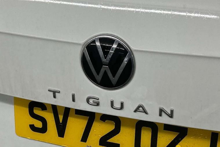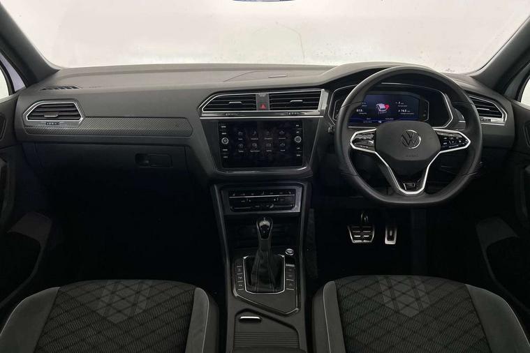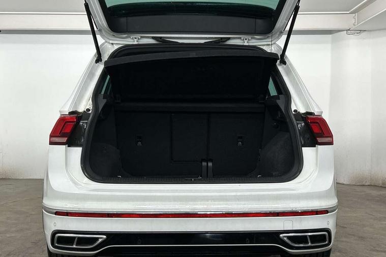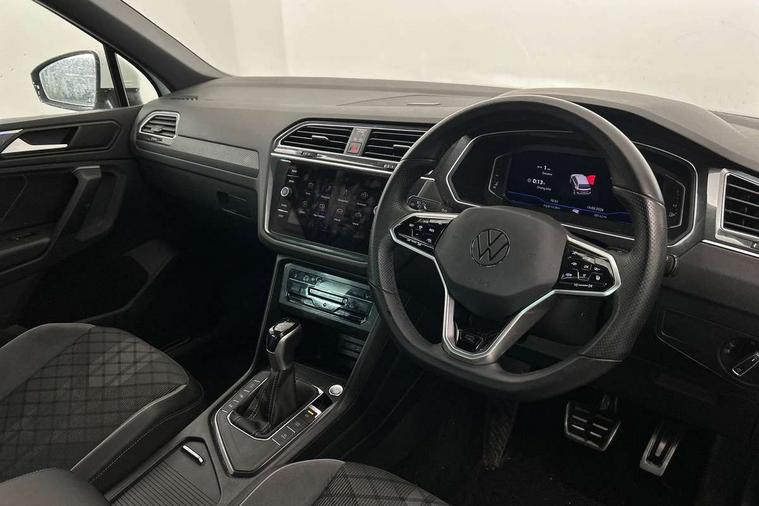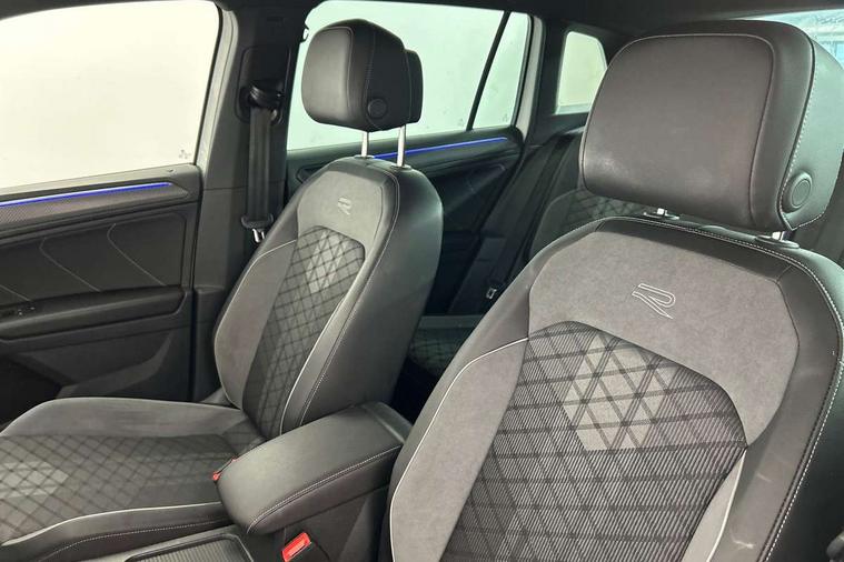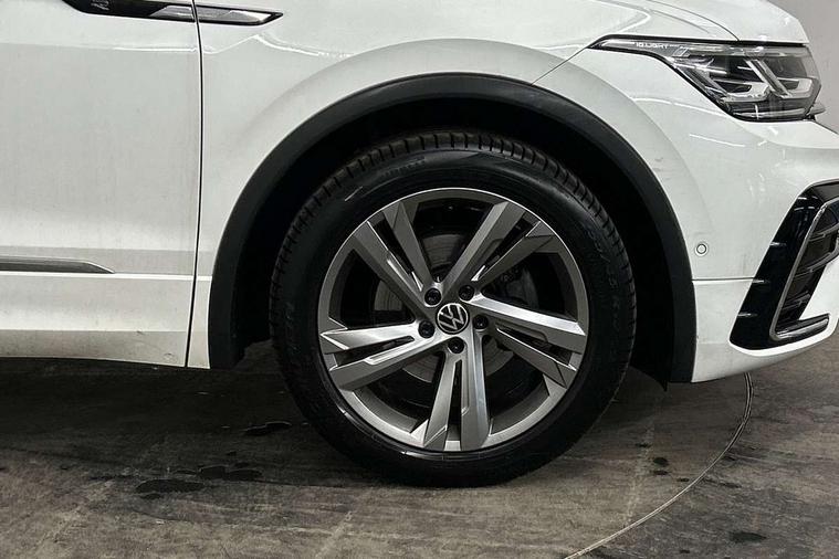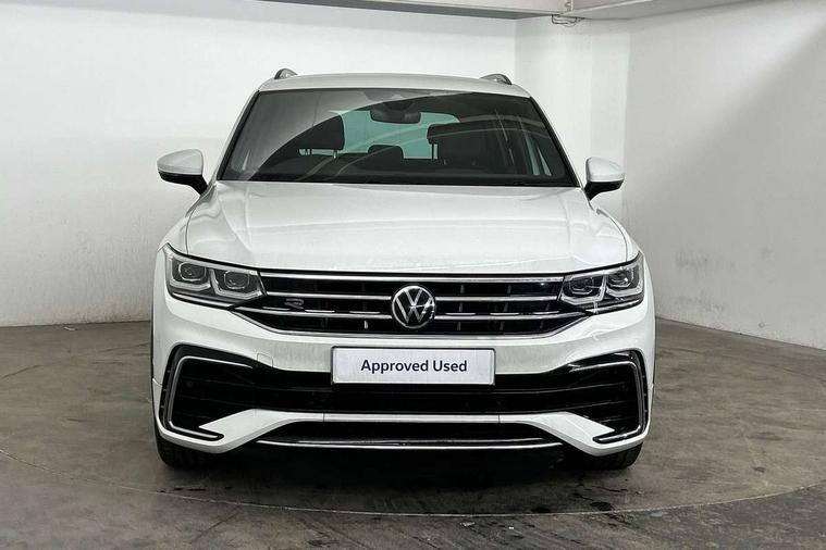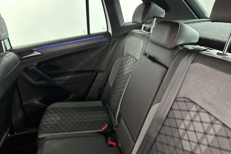 Adaptive cruise control ACC stop and go including speed limiter, App-Connect incl. App-Connect Wireless for Apple CarPlay and Android Auto, Bluetooth phone integration system, Comfort drive travel assist, Digital cockpit pro, Driver alert system, Driver profile selection, Dynamic road sign display, eCall emergency call system, Electromechanical speed sensitive power steering, Emergency assist, Front and rear parking distance sensors, Instrument cluster mph speedometer Great Britain, Lane keeping system Lane Assist, Lights on warning, Multifunction front facing camera, Outside temperature display, Premium multifunction display with multi colour display, Preparation for subsequent activation Navigation feature Discover Media includes Streaming and Internet, Remote control boot opening, Rev counter, Service interval indicator, Speed limit display, Start/stop system with regenerative braking, Tailgate/trunk lid unlocking from outside, Trip computer, Warning sound and light for doors and tailgate open, Battery regeneration during braking, Sports suspension, 8 Speakers, Digital radio reception DAB+, Diversity antenna for FM reception, Radio, Auto dimming interior rear view mirror, Automatic headlight control system, Body colored bumpers in R-Line style, Body colored exterior mirror housings, Body colour door handles, Chrome moldings on the side windows, Coming/leaving home lighting function, Dynamic headlight range control, Front and rear electric windows, Heated rear window, High level 3rd brake light, Laminated safety glass windshield, heat and sound insulating, LED headlamps with LED separate daytime running light and dynamic cornering light, LED rear combination lamps, LED rear number plate lights, License plate carrier in front and rear, Poor weather light and cornering light, Power adjustable, folding and heated door mirrors with surround lighting, front passenger exterior mirror lowering function, Privacy glass for rear side windows and rear window, R Line body kit, R Line side sills, Rain sensor, Rear exhaust tailpipe, Rear fog lamp, Rear side wing doors, Rear spoiler in R style, Rear windscreen washer and wiper with interval delay, Side and rear windows in heat insulating glass, Trailer Stability Programme, Unique R Line badging, Windscreen wipers/ intermittent wipe + 4 position delay, 12V outlet in center console rear and in luggage compartment, 12V outlet in front and tray, 2 LED front reading lights, 2 LED rear reading lights, 3 bench rear seats in 2nd row, 3 rear headrests, Air Care Climatronic 3 zone automatic climate control with enhanced air filter and controls in the rear, Art Velours greyson sports cloth upholstery, Backrest release for left front seat, Black headlining, Brushed stainless steel pedals and footrest, Carpet mats in front and rear with decorative stitching in Gray, Climate control unit rear with touch function, Door and side trim panel in foam film, insert in leatherette, Driver + front passenger lumbar support, Front footwell illumination, Front scuff plates in aluminum with R-Line logo, Front seats head restraints (x-adjustment), Height adjustable front seats, Height/reach adjust steering wheel, Isofix Preparation 2 Rear child seats, Leather gear knob, Rear bench seat asymetrically split folding, longitudinally movable and folding with load-through hatch and center armrest, Remote unlocking for rear seat backrest, Single front passenger seat, Sun visors with illuminated vanity mirrors, Top front comfort seats, Winter pack - Tiguan, 3 point seat belt for centre rear seats, 3 point seat belts with seat belt pretensioners for the outer rear seats, Curtain airbags for front and rear passengers, Driver/Front Passenger airbags, Drivers knee airbag, Electronic parking brake with auto hold, Electronic Stability Control with driver steering recommendation, ABS, ASR, EDL, EDTC and trailer stabilization, Front assist with autonomous emergency braking (for Adaptive Cruise Control ACC up to 130 mph), Front disc brakes, Front passenger airbag deactivation, Front side airbags, Height adjustable front 3 point seatbelts + pretensioners, Manual child proof rear door locks, Pedestrian monitoring system, Proactive passenger protection system in combination with front assist, Rear disc brakes, Two tone horn, Tyre pressure loss indicator, Warning sound and light for front seat belts if unfastened, Warning triangle, Anti theft alarm system with interior monitoring, backup horn and towing protection, Anti theft wheel bolts, Electronic engine immobiliser, Keyless locking and starting system keyless access with safelock, Chrome elements on the mirror switch power window switches and door pulls, Decorative inserts Carbon Gray for dashboard and front door trim panels, Interior door handle in matte chrome, 19" Valencia alloy wheels with AirStop tyres, Tool kit, Tyre mobility kit Includes 12V compressor and tyre sealant,
