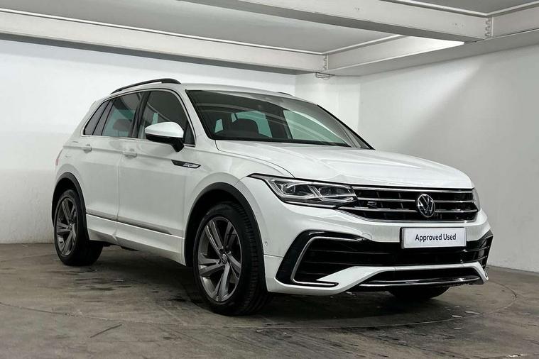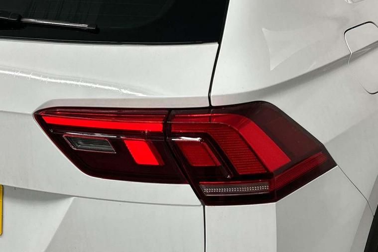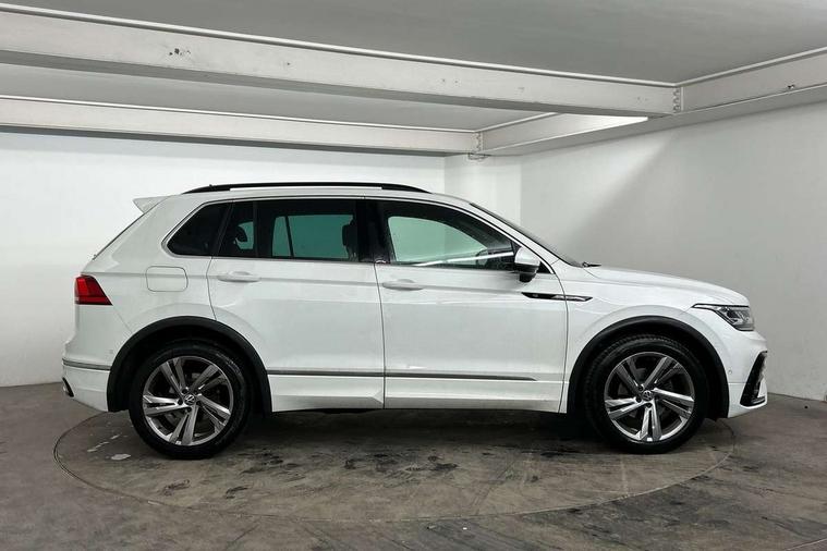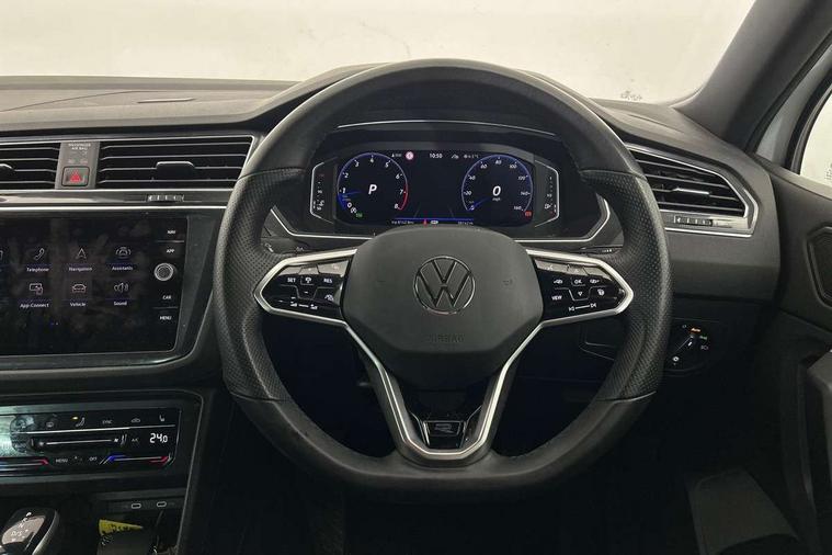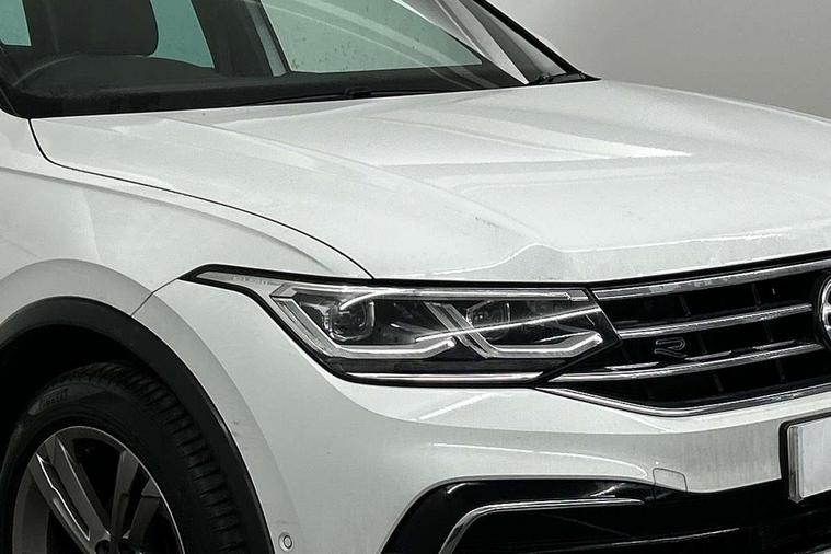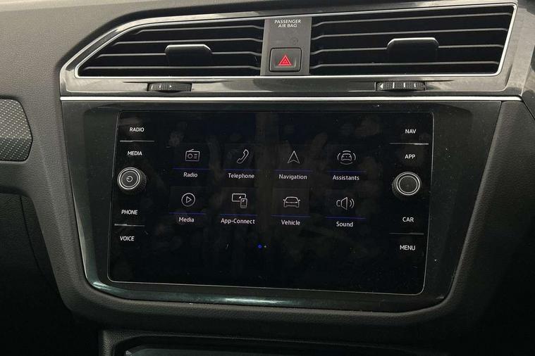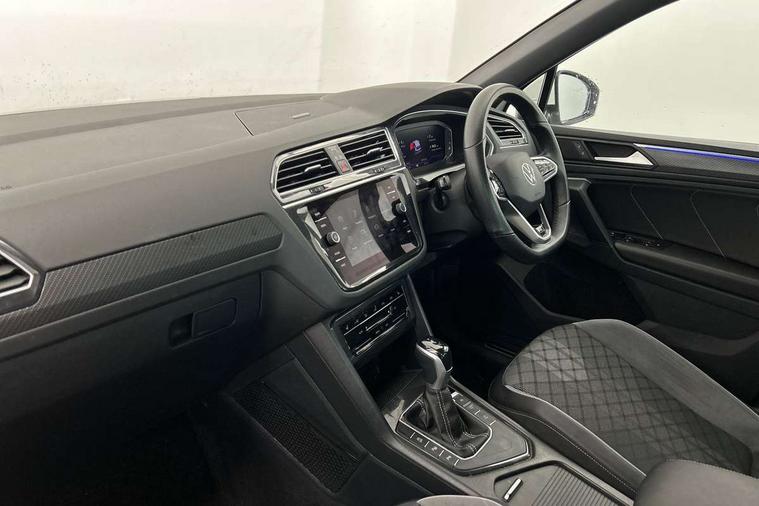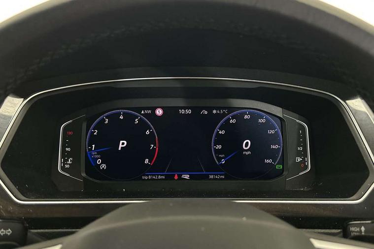 Adaptive cruise control ACC stop and go including speed limiter, App-Connect incl. App-Connect Wireless for Apple CarPlay and Android Auto, Bluetooth phone integration system, Comfort drive travel assist, Digital cockpit pro, Driver alert system, Driver profile selection, Dynamic road sign display, eCall emergency call system, Electromechanical speed sensitive power steering, Emergency assist, Front and rear parking distance sensors, Instrument cluster mph speedometer Great Britain, Lane keeping system Lane Assist, Lights on warning, Multifunction front facing camera, Outside temperature display, Premium multifunction display with multi colour display, Preparation for subsequent activation Navigation feature Discover Media includes Streaming and Internet, Remote control boot opening, Rev counter, Service interval indicator, Speed limit display, Start/stop system with regenerative braking, Tailgate/trunk lid unlocking from outside, Trip computer, Warning sound and light for doors and tailgate open, Battery regeneration during braking, Sports suspension, 8 Speakers, Digital radio reception DAB+, Diversity antenna for FM reception, Radio, Auto dimming interior rear view mirror, Automatic headlight control system, Body colored bumpers in R-Line style, Body colored exterior mirror housings, Body colour door handles, Chrome moldings on the side windows, Coming/leaving home lighting function, Dynamic headlight range control, Front and rear electric windows, Heated rear window, High level 3rd brake light, Laminated safety glass windshield, heat and sound insulating, LED headlamps with LED separate daytime running light and dynamic cornering light, LED rear combination lamps, LED rear number plate lights, License plate carrier in front and rear, Poor weather light and cornering light, Power adjustable, folding and heated door mirrors with surround lighting, front passenger exterior mirror lowering function, Privacy glass for rear side windows and rear window, R Line body kit, R Line side sills, Rain sensor, Rear exhaust tailpipe, Rear fog lamp, Rear side wing doors, Rear spoiler in R style, Rear windscreen washer and wiper with interval delay, Side and rear windows in heat insulating glass, Trailer Stability Programme, Unique R Line badging, Windscreen wipers/ intermittent wipe + 4 position delay, 12V outlet in center console rear and in luggage compartment, 12V outlet in front and tray, 2 LED front reading lights, 2 LED rear reading lights, 3 bench rear seats in 2nd row, 3 rear headrests, Air Care Climatronic 3 zone automatic climate control with enhanced air filter and controls in the rear, Art Velours greyson sports cloth upholstery, Backrest release for left front seat, Black headlining, Brushed stainless steel pedals and footrest, Carpet mats in front and rear with decorative stitching in Gray, Climate control unit rear with touch function, Door and side trim panel in foam film, insert in leatherette, Driver + front passenger lumbar support, Front footwell illumination, Front scuff plates in aluminum with R-Line logo, Front seats head restraints (x-adjustment), Height adjustable front seats, Height/reach adjust steering wheel, Isofix Preparation 2 Rear child seats, Leather gear knob, Rear bench seat asymetrically split folding, longitudinally movable and folding with load-through hatch and center armrest, Remote unlocking for rear seat backrest, Single front passenger seat, Sun visors with illuminated vanity mirrors, Top front comfort seats, Winter pack - Tiguan, 3 point seat belt for centre rear seats, 3 point seat belts with seat belt pretensioners for the outer rear seats, Curtain airbags for front and rear passengers, Driver/Front Passenger airbags, Drivers knee airbag, Electronic parking brake with auto hold, Electronic Stability Control with driver steering recommendation, ABS, ASR, EDL, EDTC and trailer stabilization, Front assist with autonomous emergency braking (for Adaptive Cruise Control ACC up to 130 mph), Front disc brakes, Front passenger airbag deactivation, Front side airbags, Height adjustable front 3 point seatbelts + pretensioners, Manual child proof rear door locks, Pedestrian monitoring system, Proactive passenger protection system in combination with front assist, Rear disc brakes, Two tone horn, Tyre pressure loss indicator, Warning sound and light for front seat belts if unfastened, Warning triangle, Anti theft alarm system with interior monitoring, backup horn and towing protection, Anti theft wheel bolts, Electronic engine immobiliser, Keyless locking and starting system keyless access with safelock, Chrome elements on the mirror switch power window switches and door pulls, Decorative inserts Carbon Gray for dashboard and front door trim panels, Interior door handle in matte chrome, 19" Valencia alloy wheels with AirStop tyres, Tool kit, Tyre mobility kit Includes 12V compressor and tyre sealant,